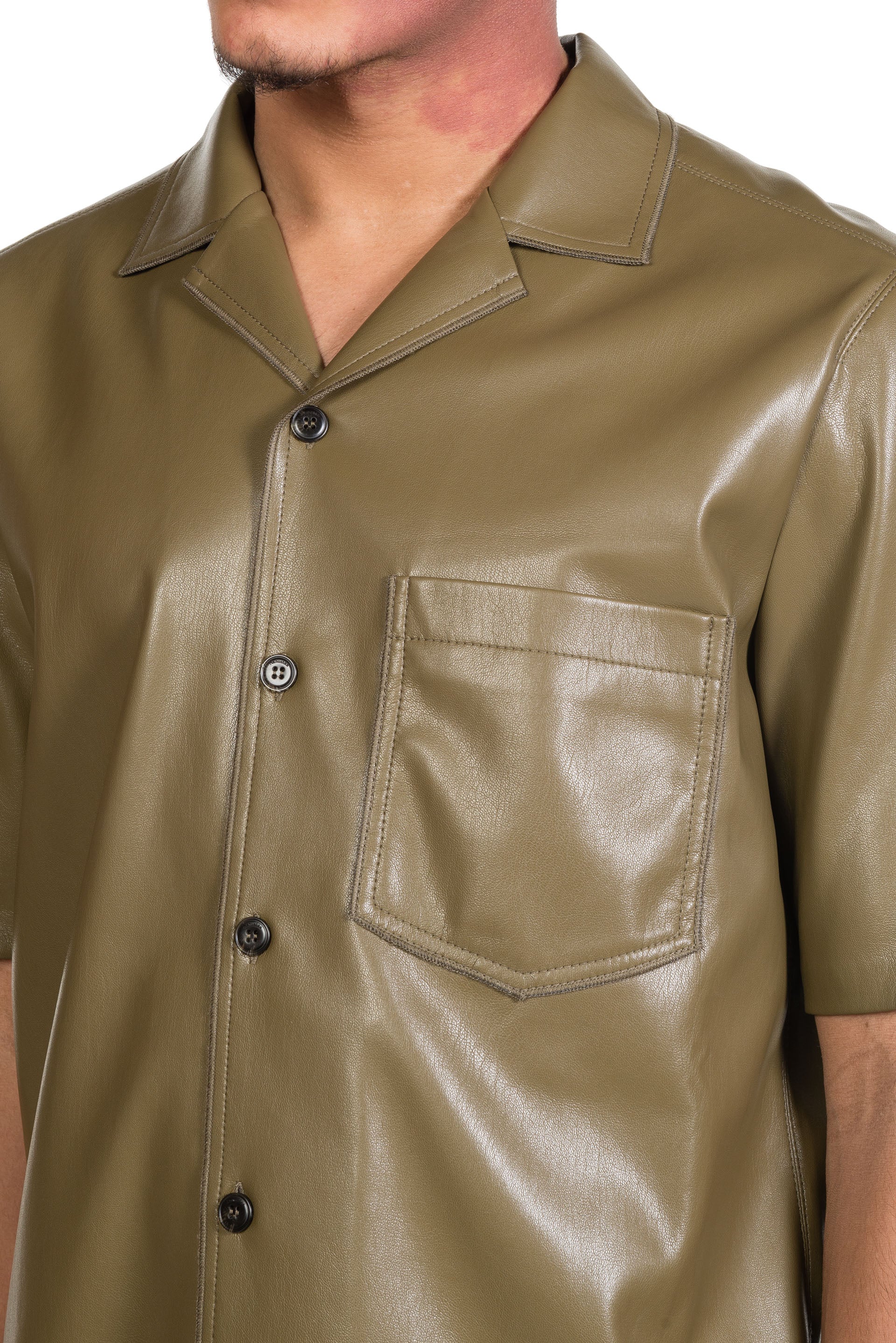 Bodil Vegan Leather Shirt Olive