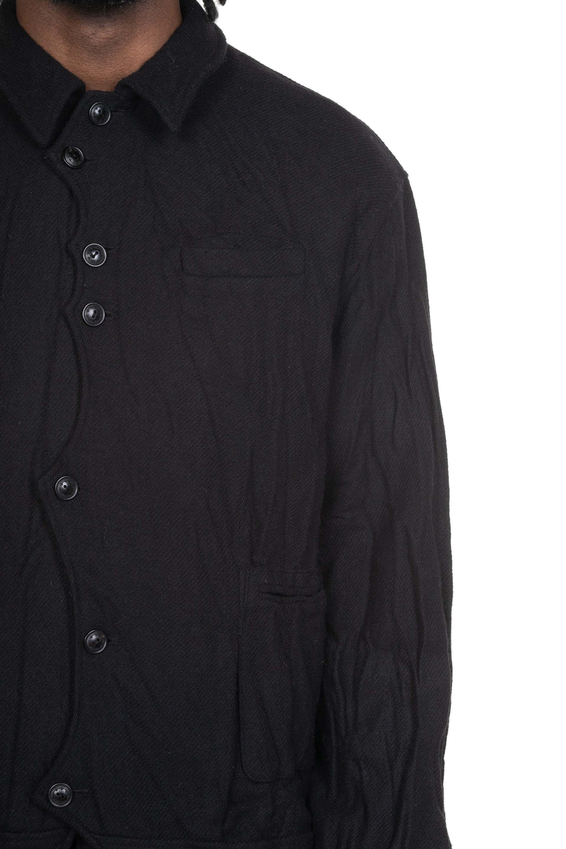 Professor. E understands the time of aesthetics from the use of cotton, hemp and wool. Fabric stitching, patching, designs without edge trimming, deconstruction, and reproduction are all Professor. E's signature elements creating classic immortal designs that can be viewed with the Boiled Wool Jacket Black.