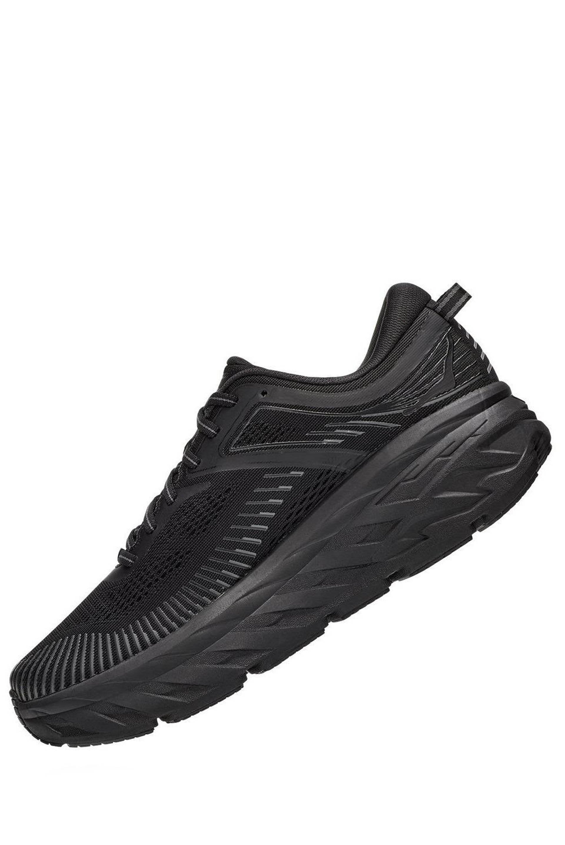 The most cushioned shoe in the HOKA road-shoe lineup, the game-changing Bondi 7 delivers a smooth, balanced ride over any distance. Engineered with the same full EVA midsole, breathable mesh upper and signature Meta-Rocker technology as its predecessor, the Bondi 7 is updated with a supremely plush collar. Made from ultra-soft memory foam designed to accommodate a narrower heel, the collar conforms to a wide variety of ankles, cradling the Achilles in cushy comfort. Unquestionably, the Bondi 7 will take you far and wide.