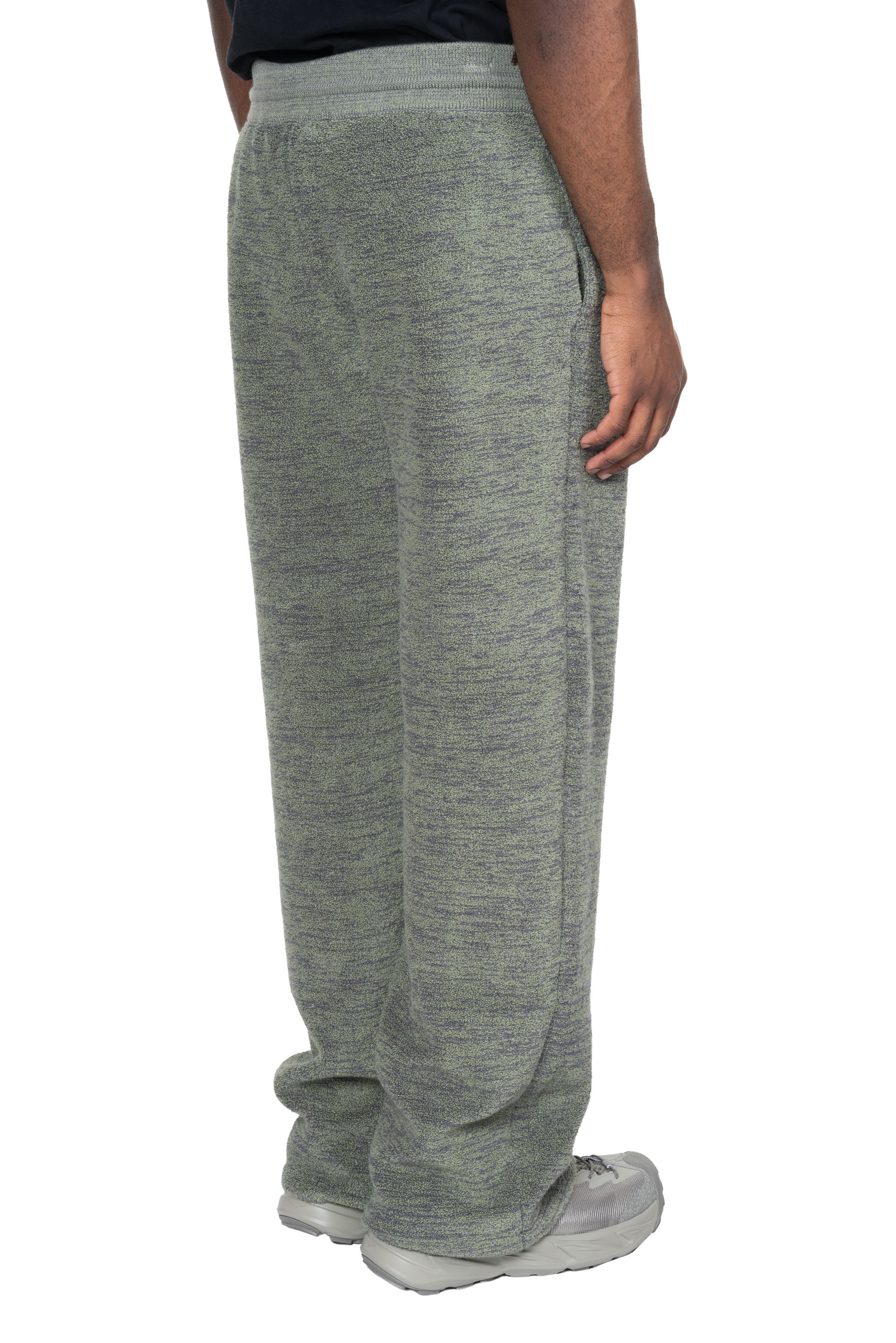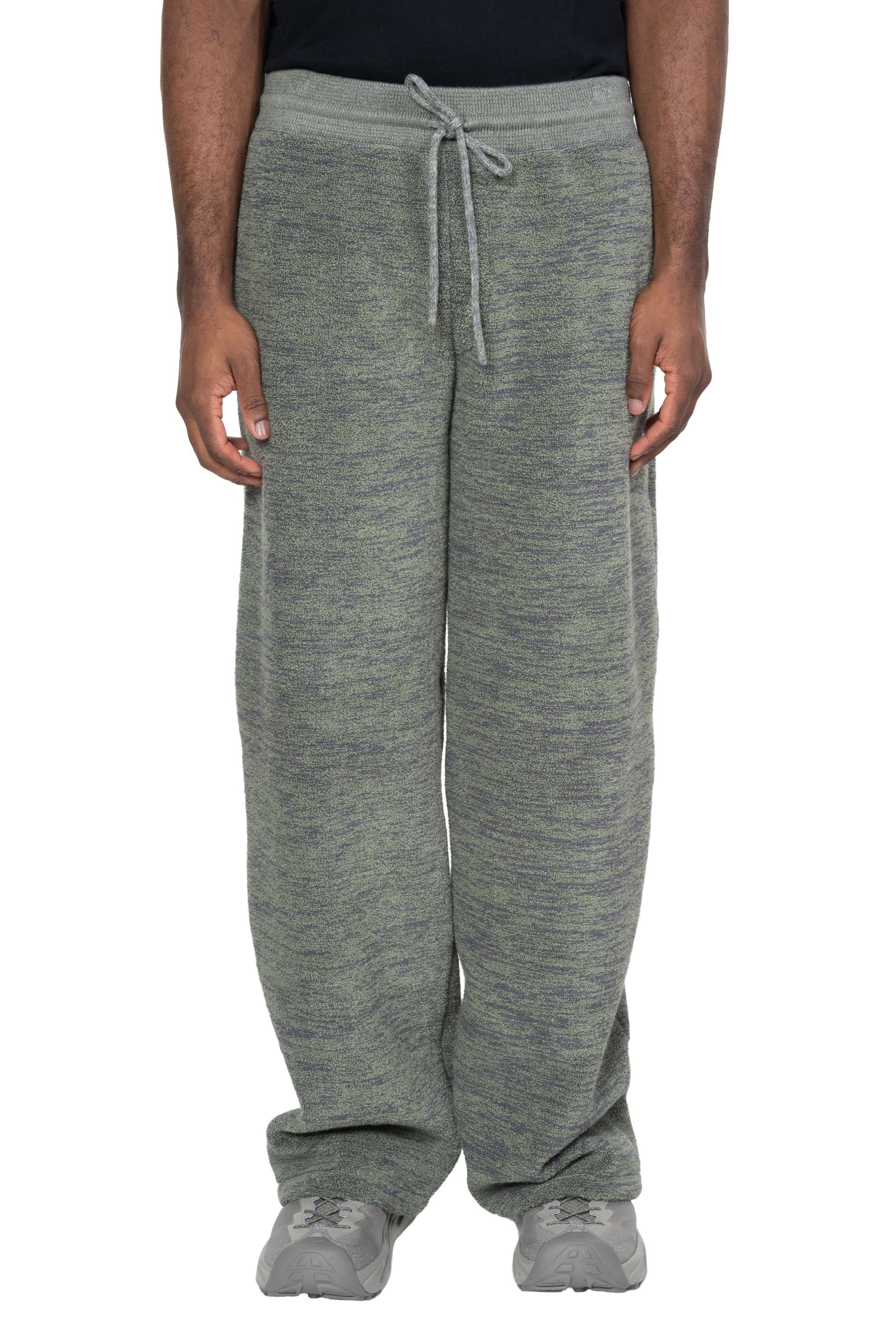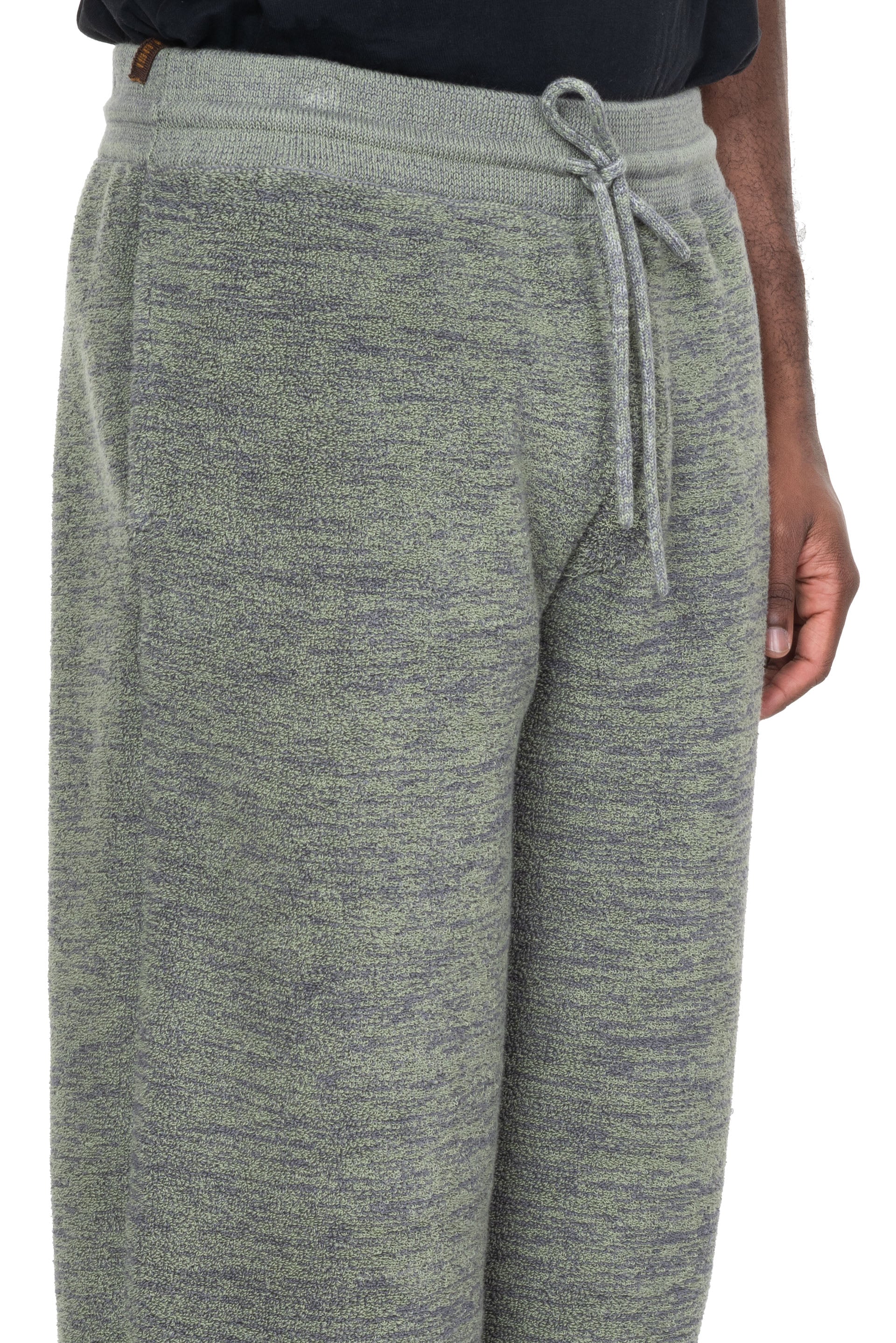 Isa Boulder Boucle Pants in Green. Two side pockets. Elastic waist. Drawstrings closure at waist. Soft textural fabric.