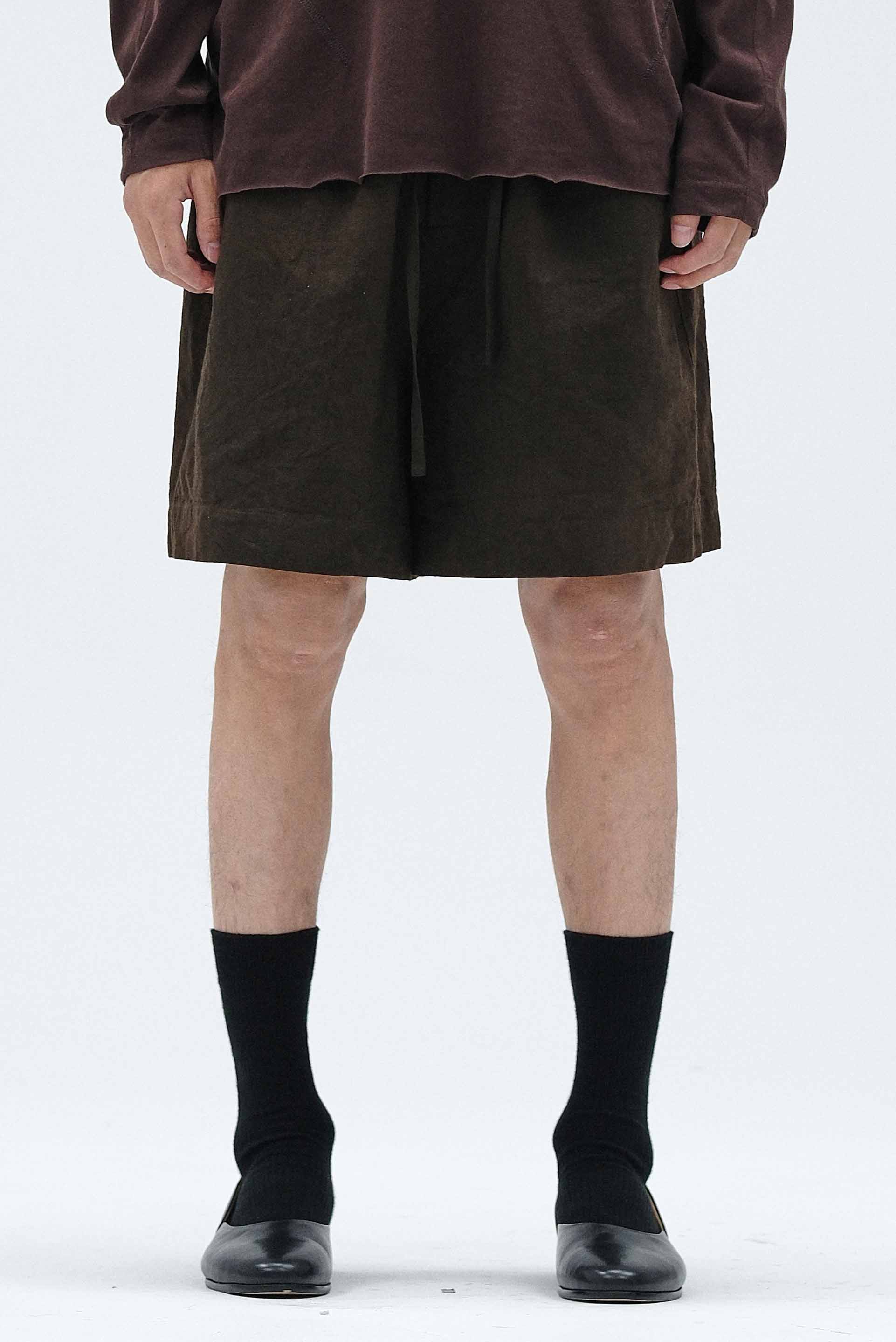 Attempt Boxing Shorts in Black. Elastic waist. Drawstring at waist. Two side pockets. Two back pockets. Boxy cut. Soft textural fabric.