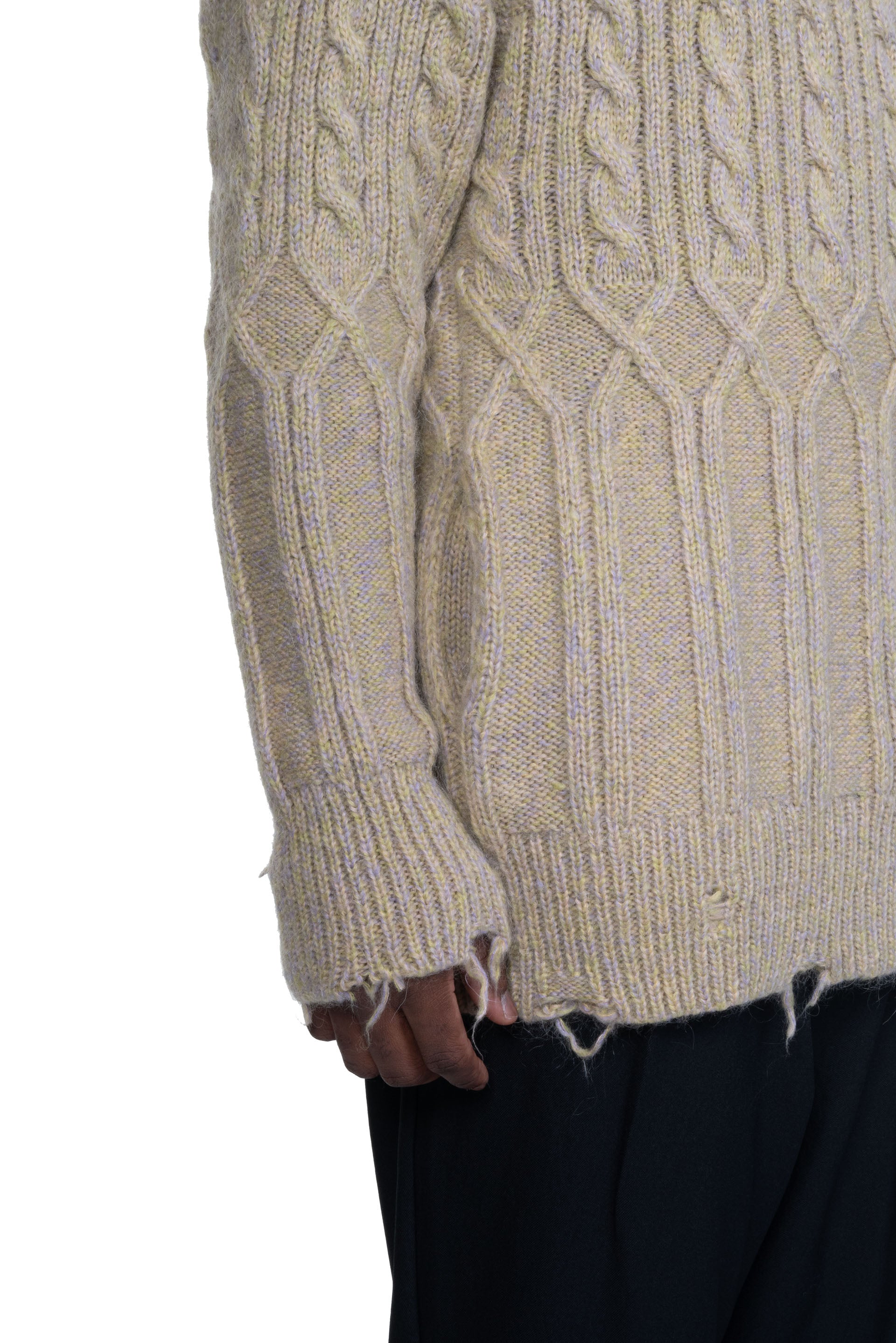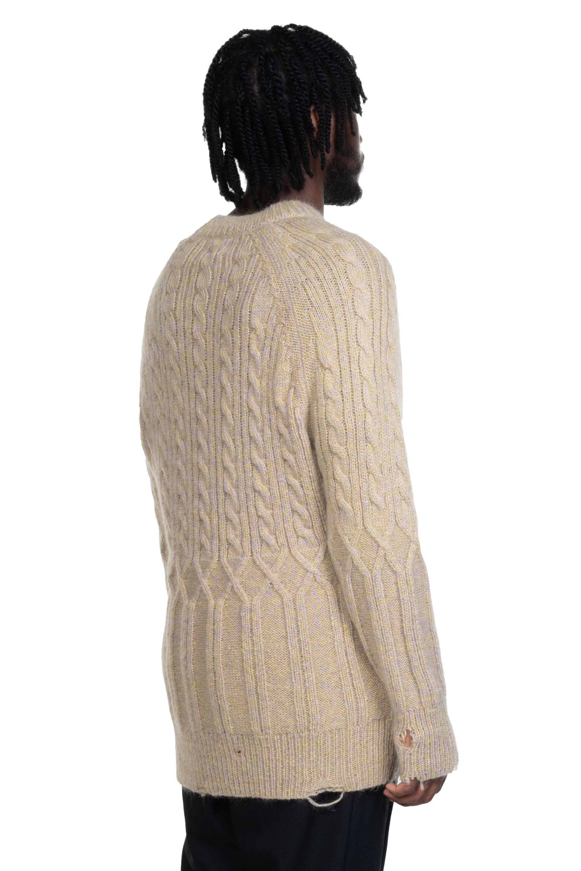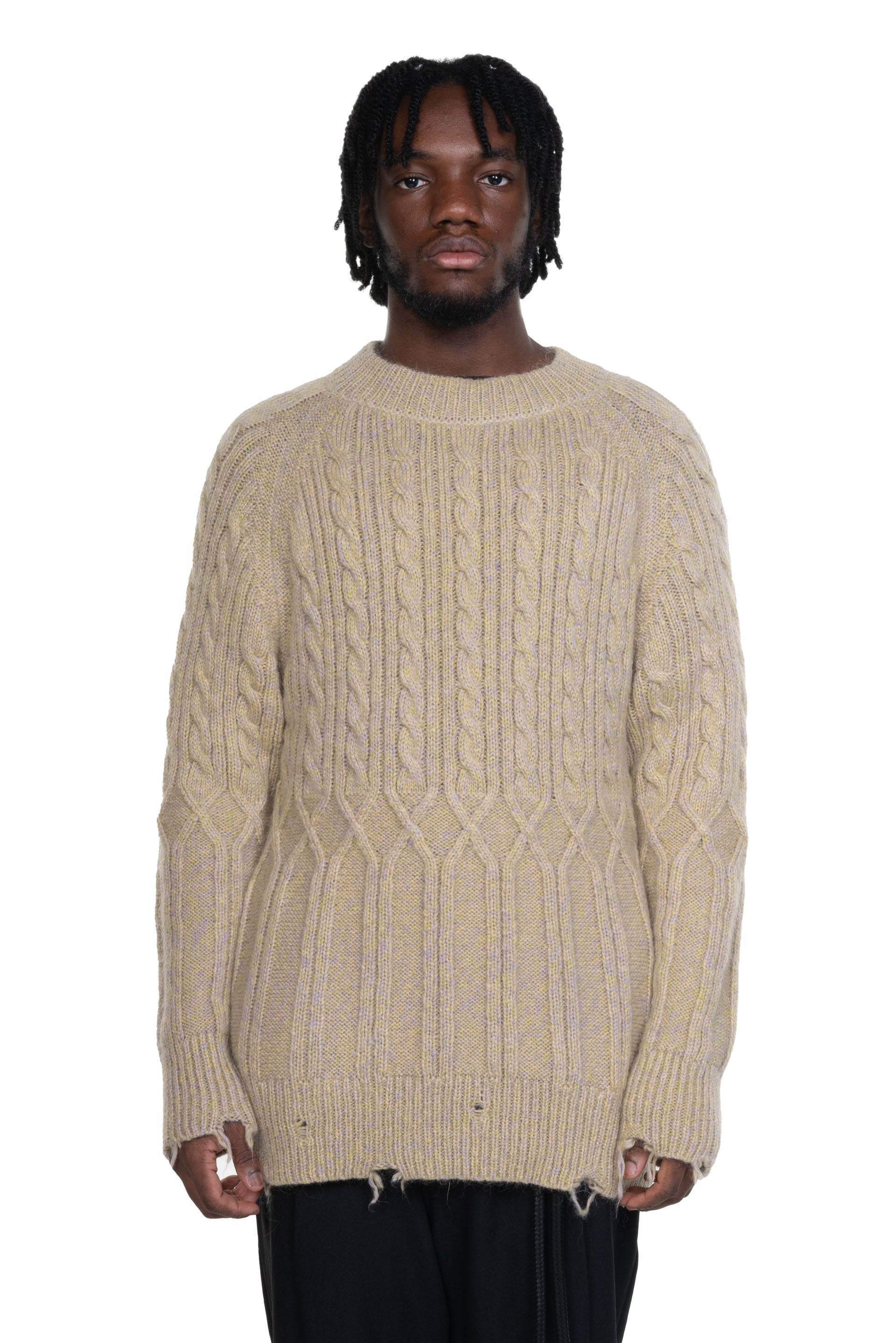 Long sleeves knitwear from Magliano. Round neck. Rib cuffs. Soft wool texture with cable irregular cable knit design.
