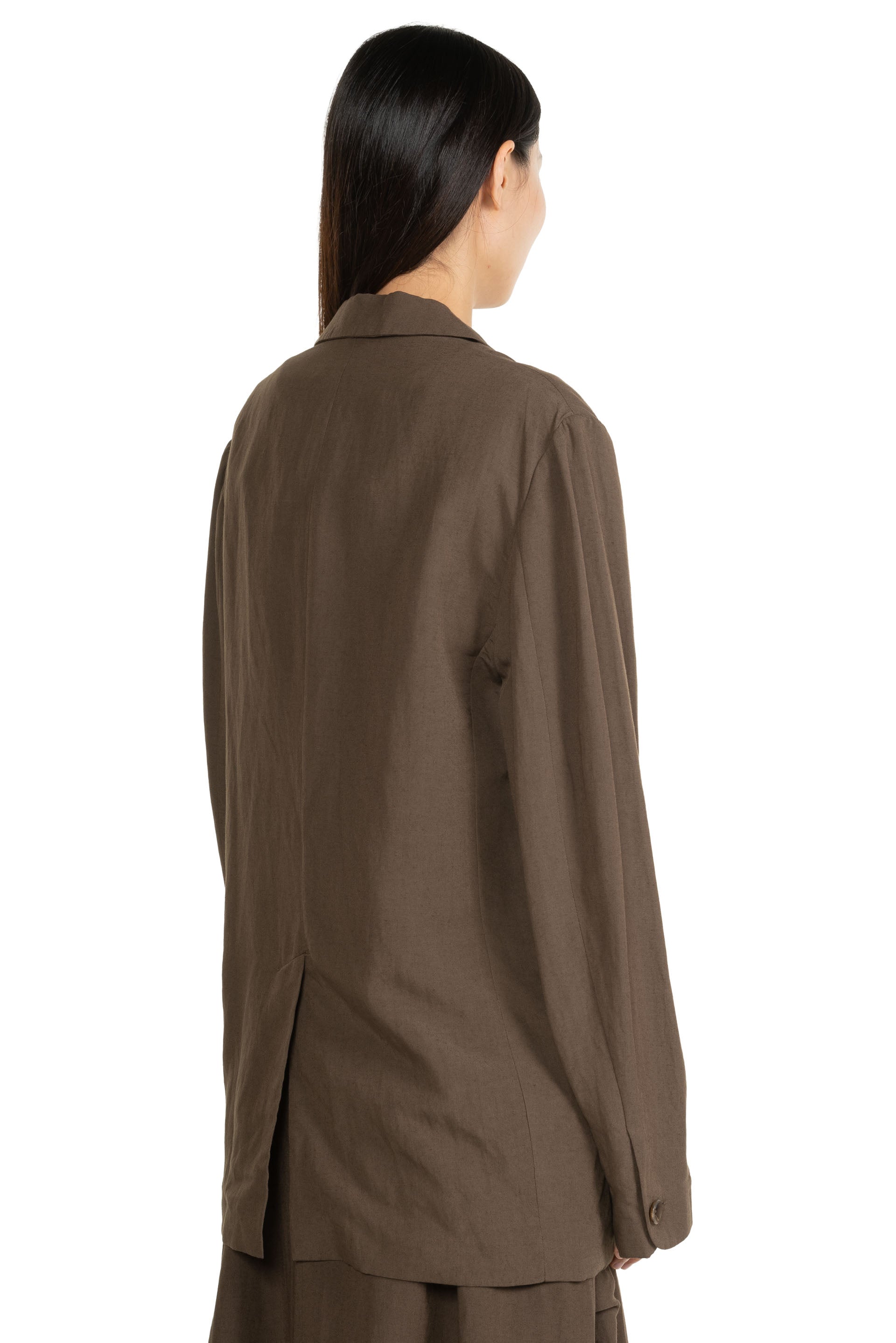 Two buttons blazer. Linen blazer. Two pockets at front. One pocket at chest.