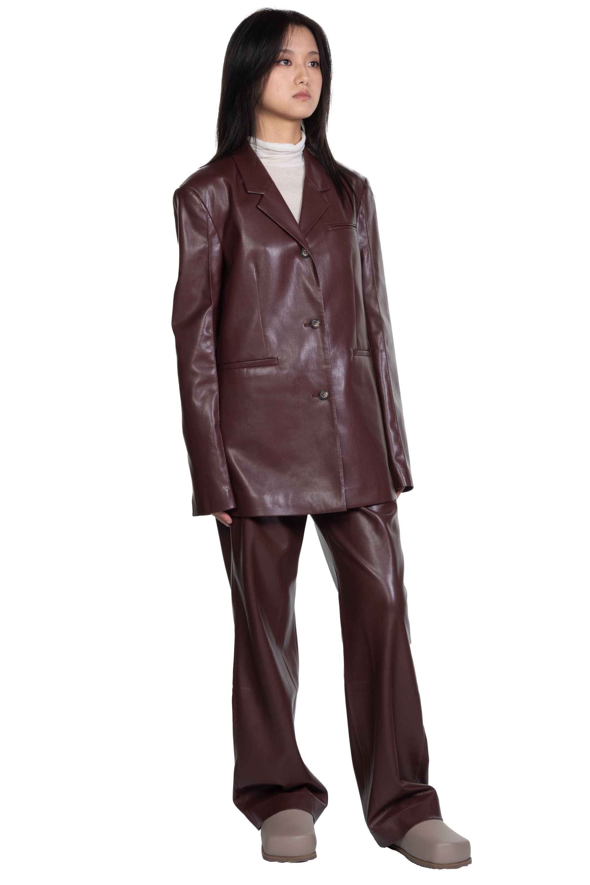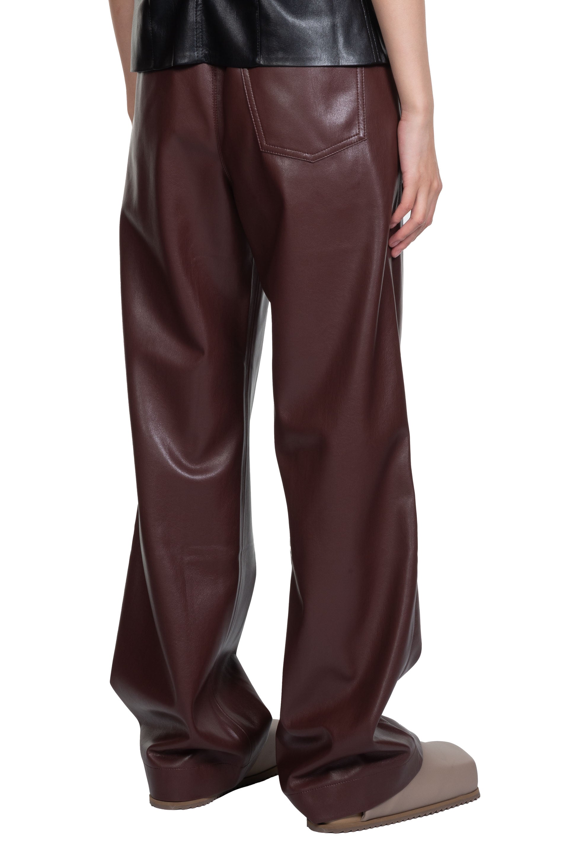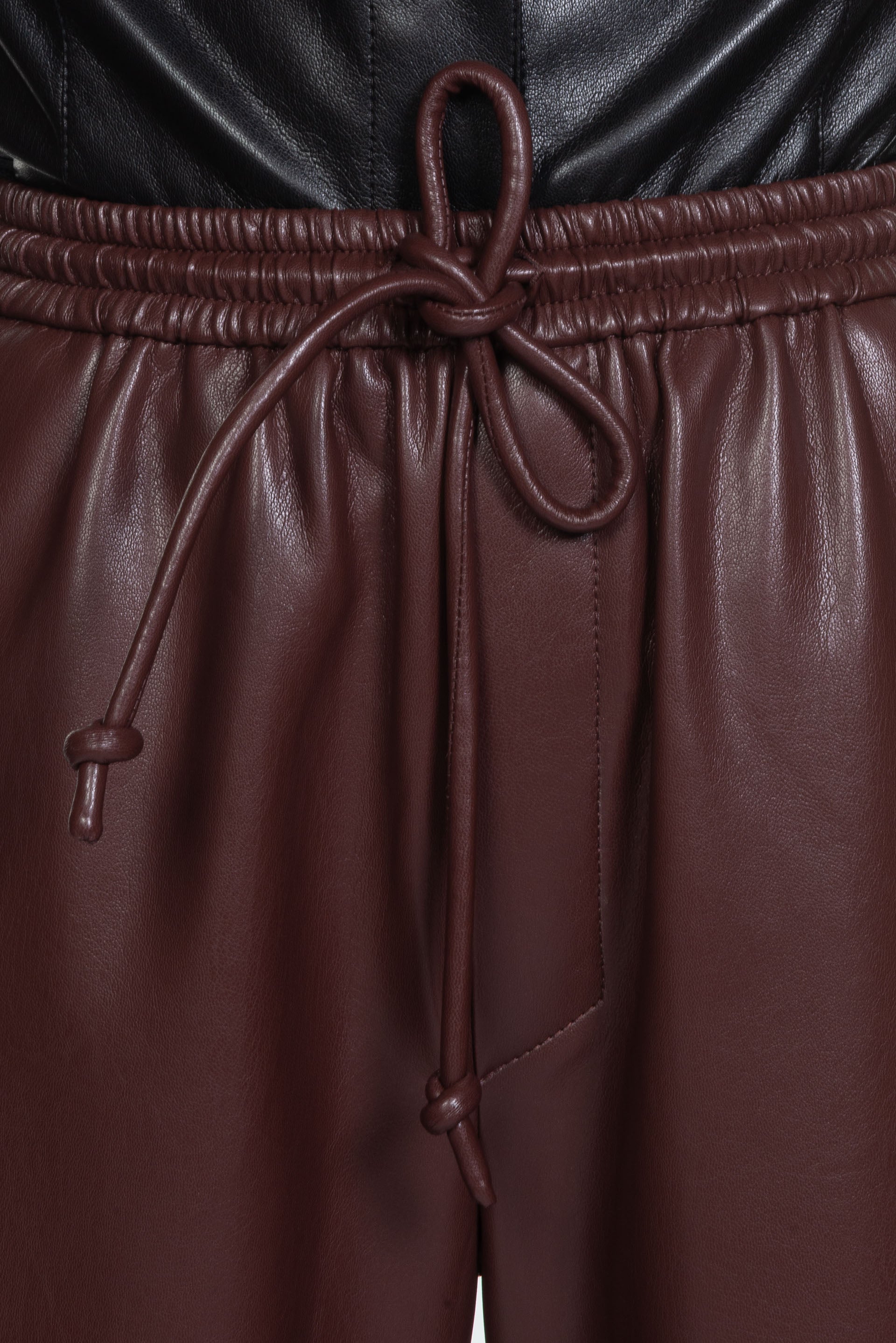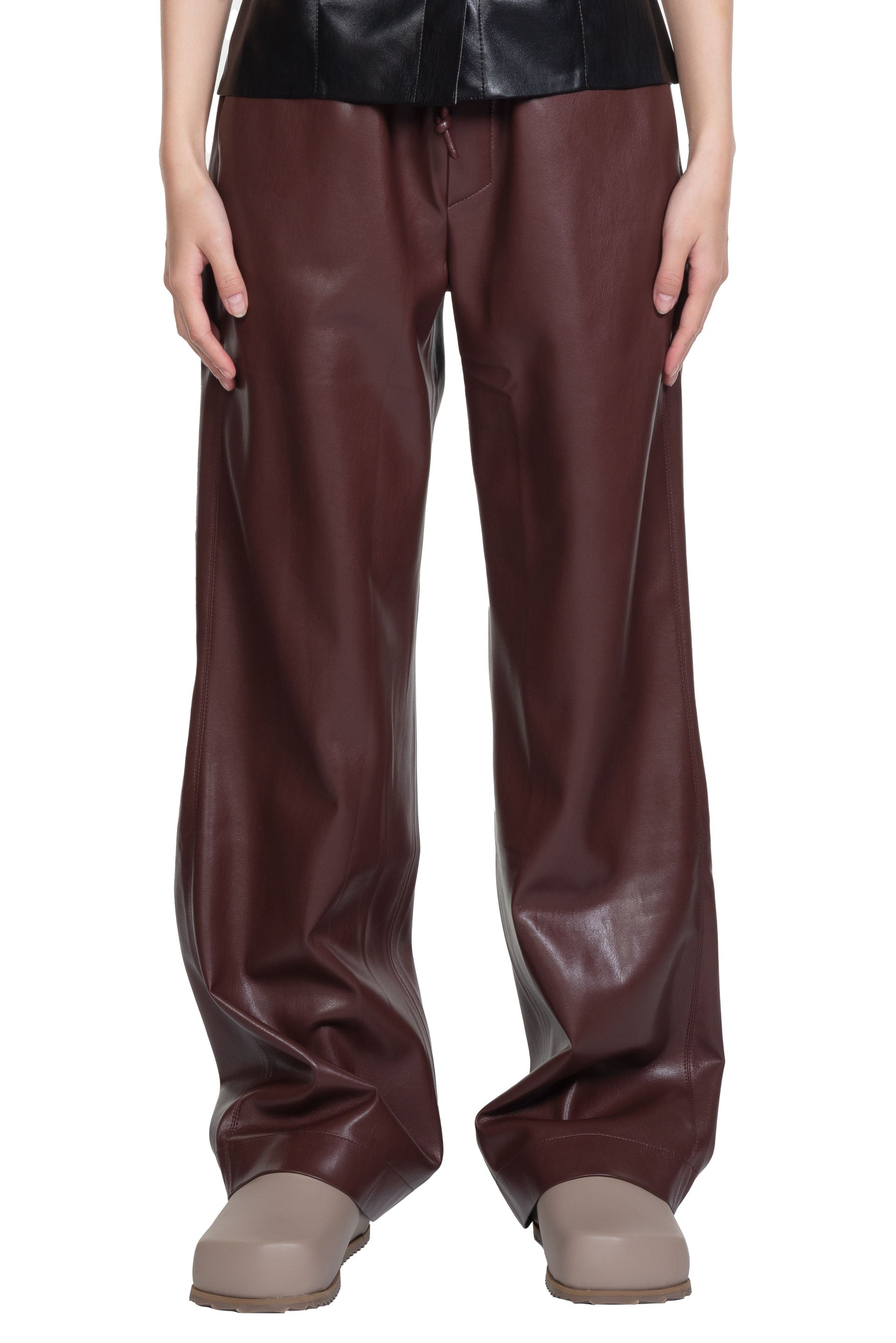 The Calie Alt-Leather Pants Plum Chutney is made from vegan leather. Slender silhouette. Cinched at the waist by a rope-style belt. Front pockets.