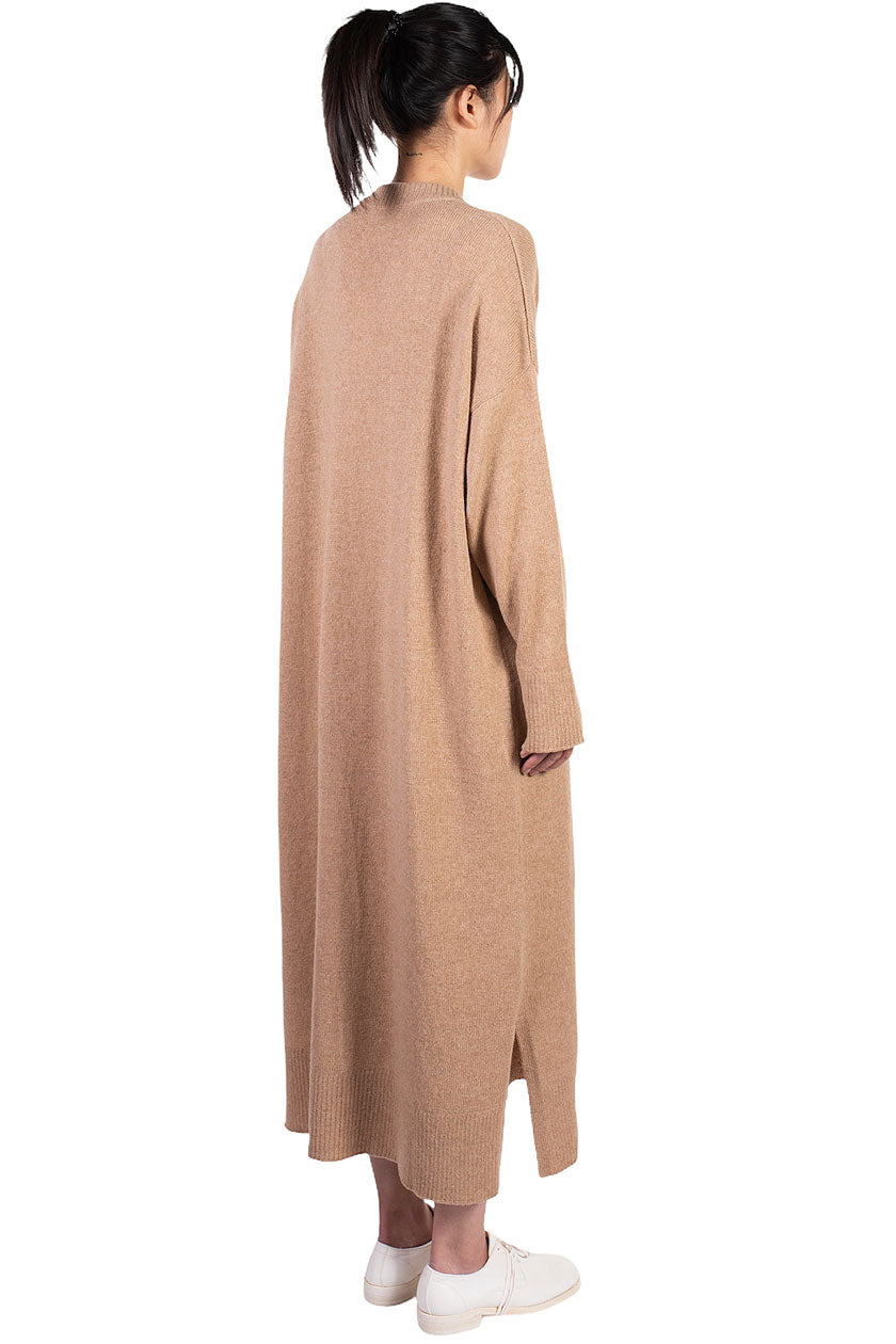 Monica Cordera’s collections are composed of limited edition garments with minimalist designs that seek purity and simplicity, timeless earthy tones in recycled linen and cotton as seen with the Camel Baby Alpaca V Neck Dress.