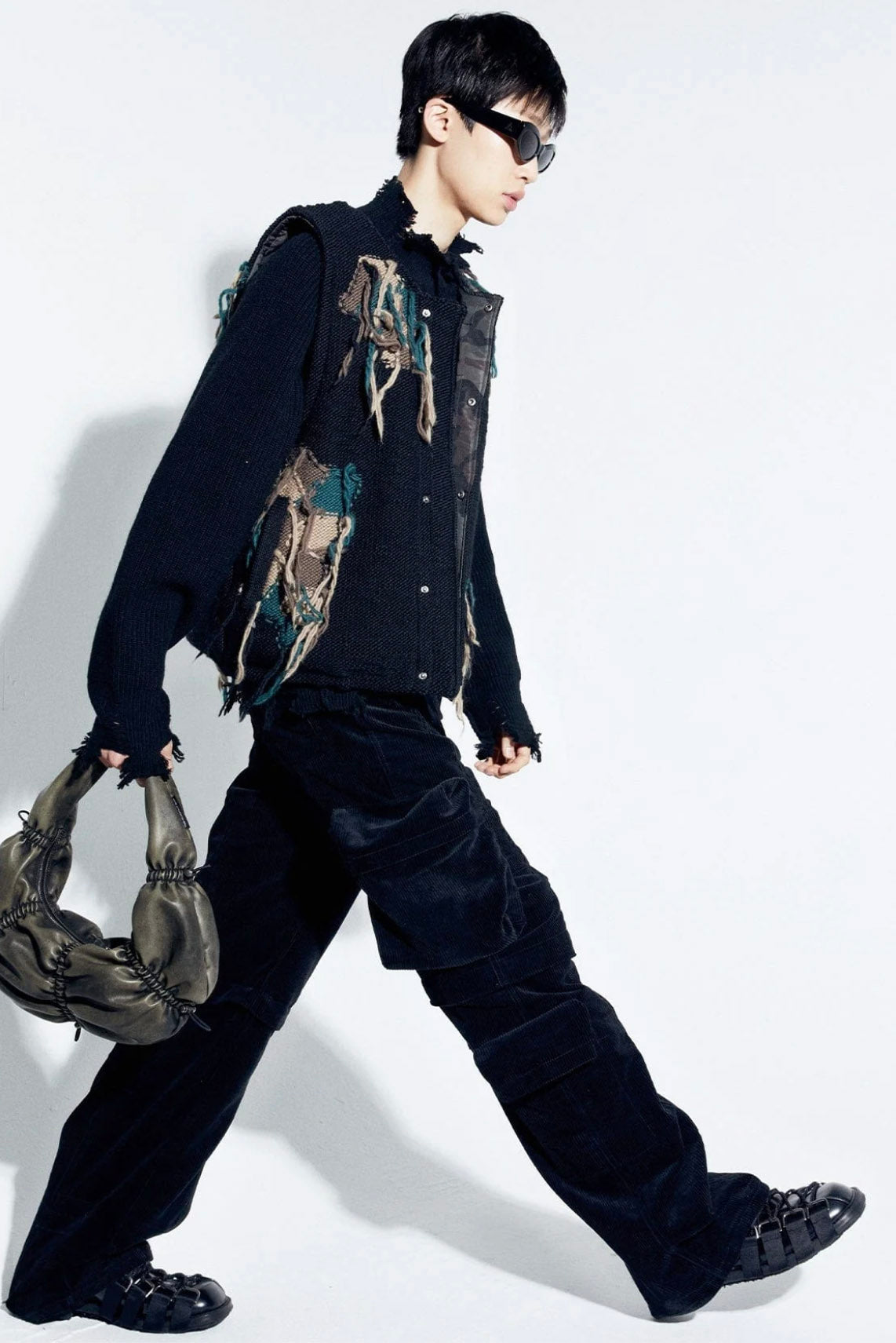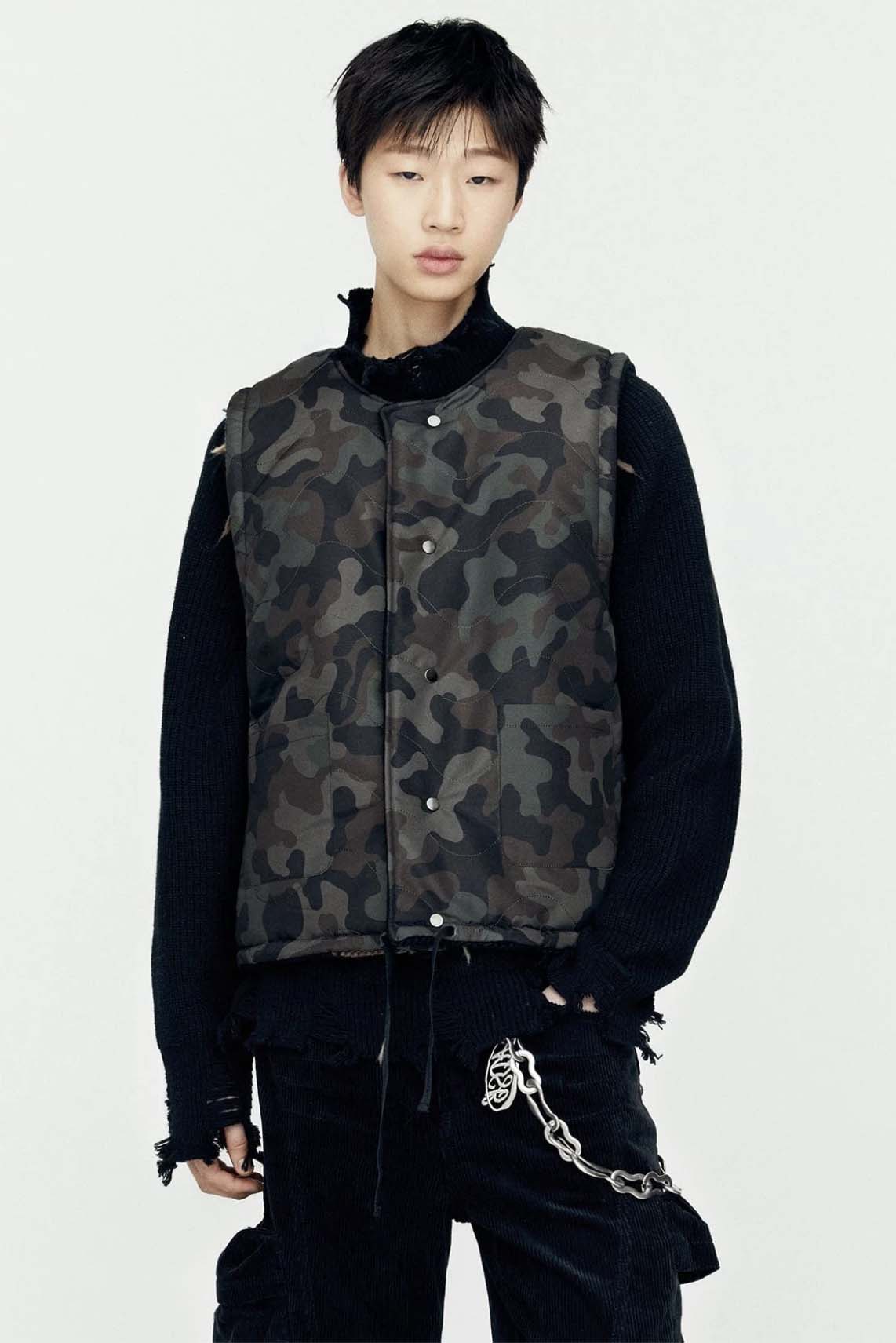 Inspired by Korean and Scandinavian culture, the brand reinterprets and combines two contrasting traits to create an individual and unique aesthetic and perspective. Constructed from top-tier materials sourced from around the globe, Andersson Bell’s designs are ultimately intended to last a lifetime as seen with the Camouflage Reversible Knit Vest.
