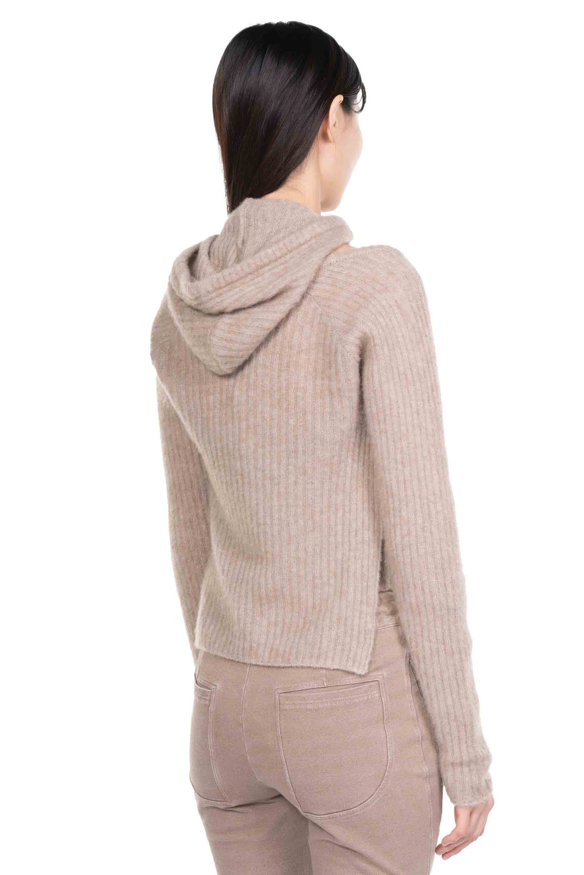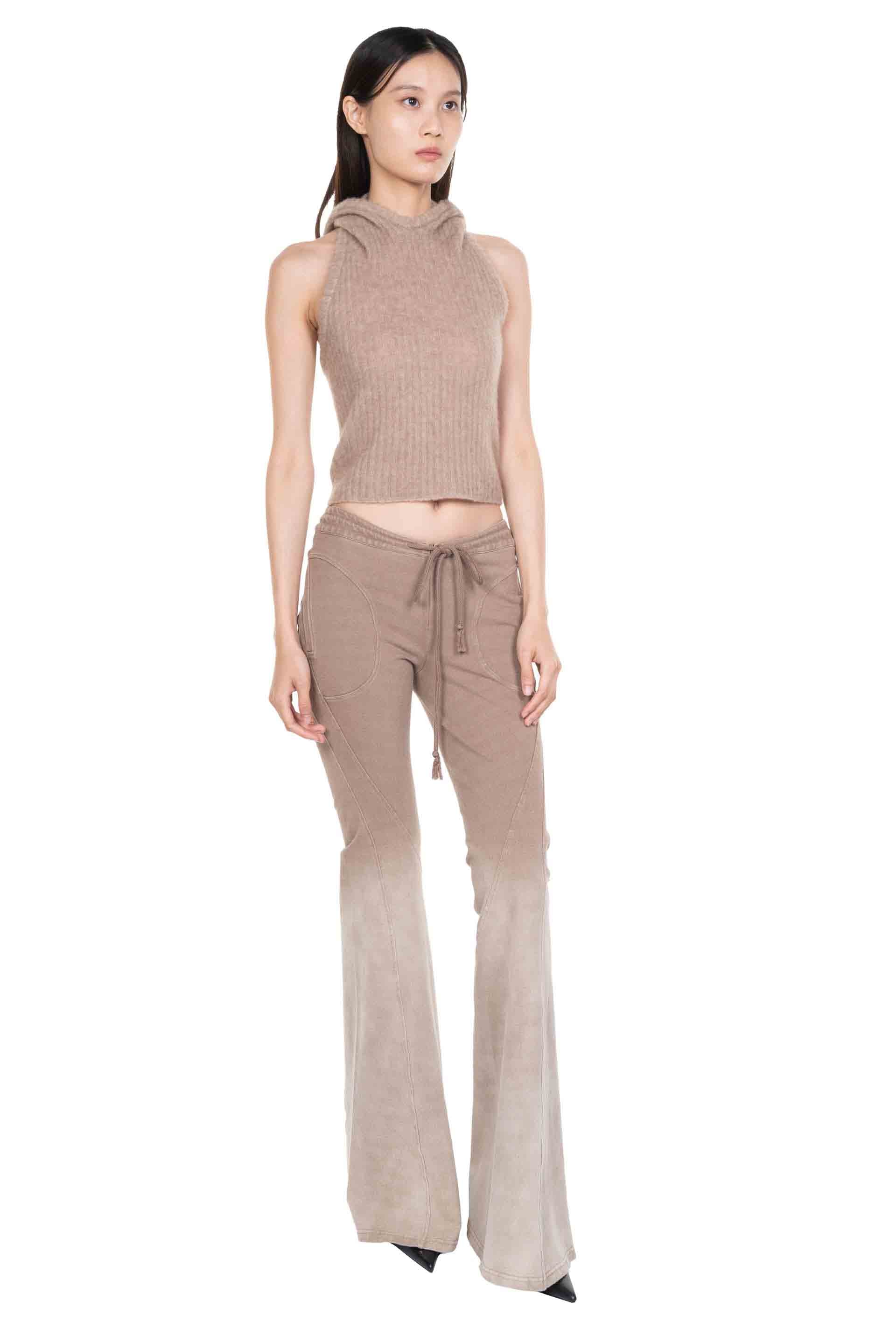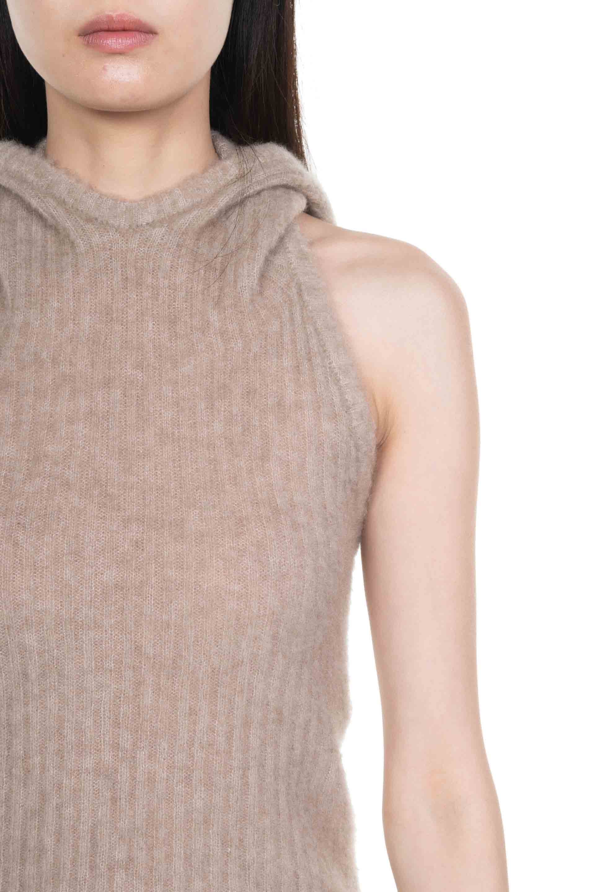 OUDE WAAG strikes a balance between Asian aesthetics and Western cutting. It is at the heart of designer’s philosophy: celebrating the power of women, yet simultaneously critiquing the ongoing objectification and idealisation of the body as you can see in the Oude Waag "Burn" collection with the Cashmere Hooded Knitted Tank.