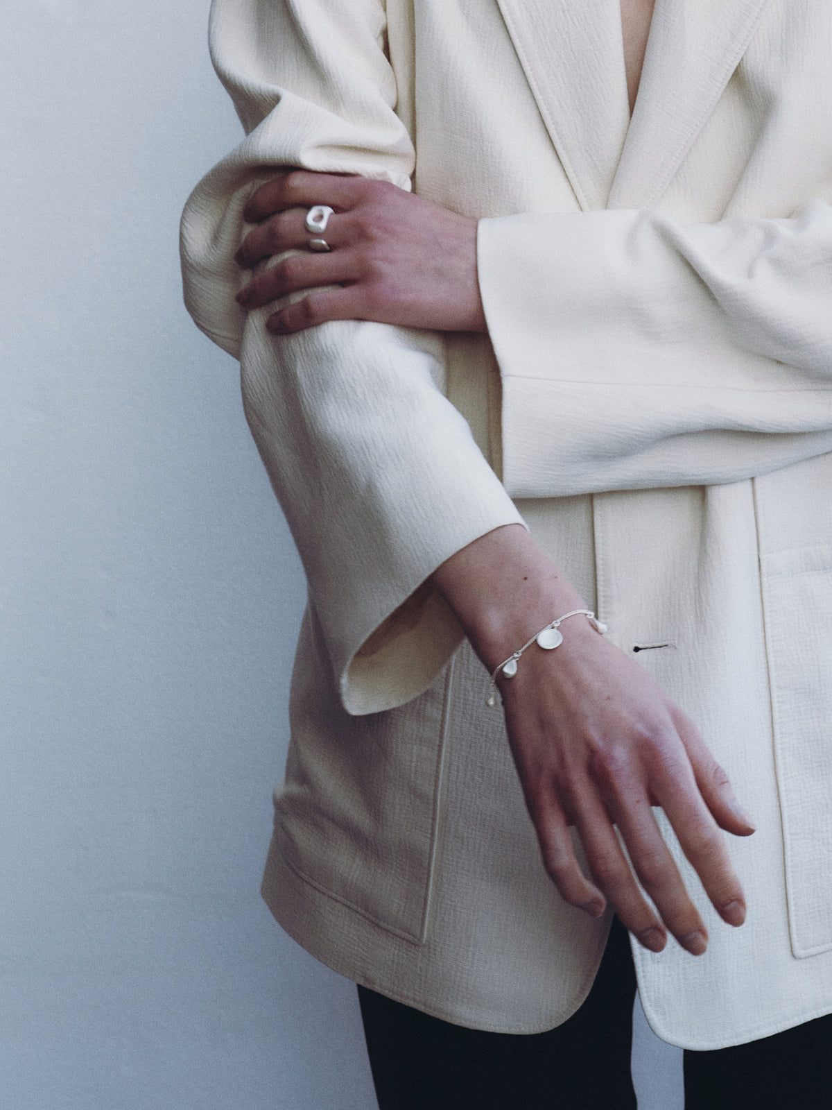 OLIO E ACETO is raw and authentic. It is about the companionship between people, and objects like the matte white surface becoming a blank canvas to be filled by the wearer as seen with the Cave Ring.