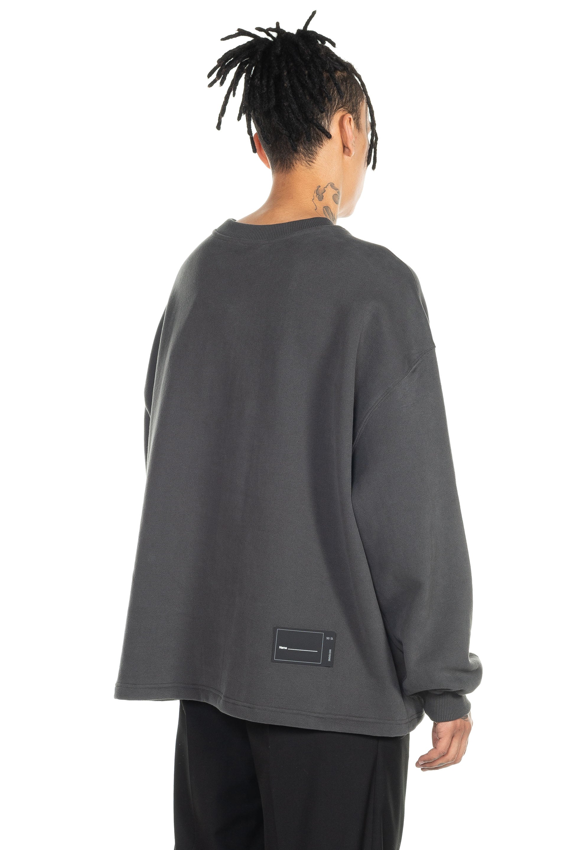 We11done merges late 1990s and early 2000s aesthetics creating a feeling of futurity. Functional, sportive, and sleek, We11done’s versatile designs refine classic elements into contemporary lifestyle pieces as seen with the Charcoal Front Logo Sweatshirt.