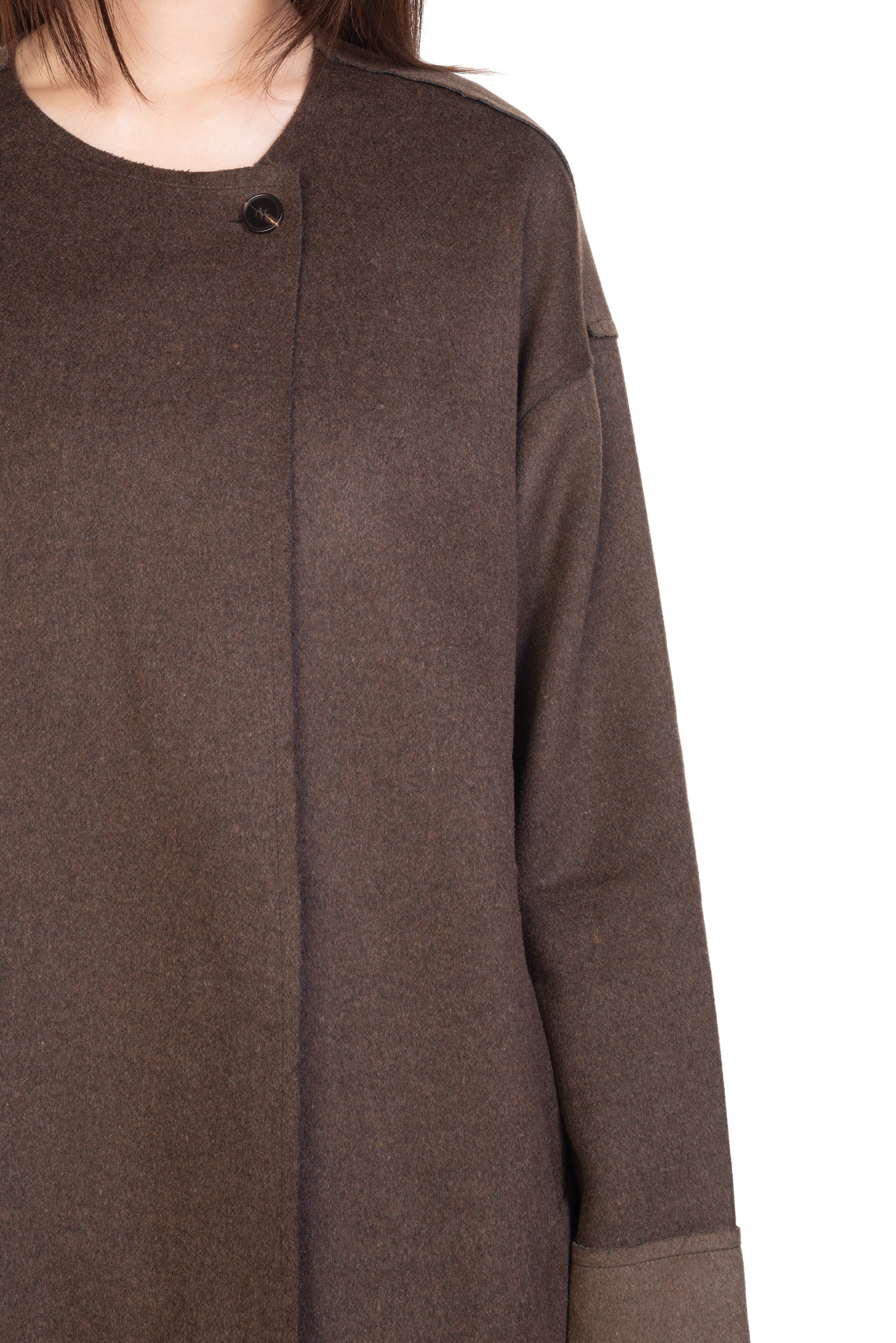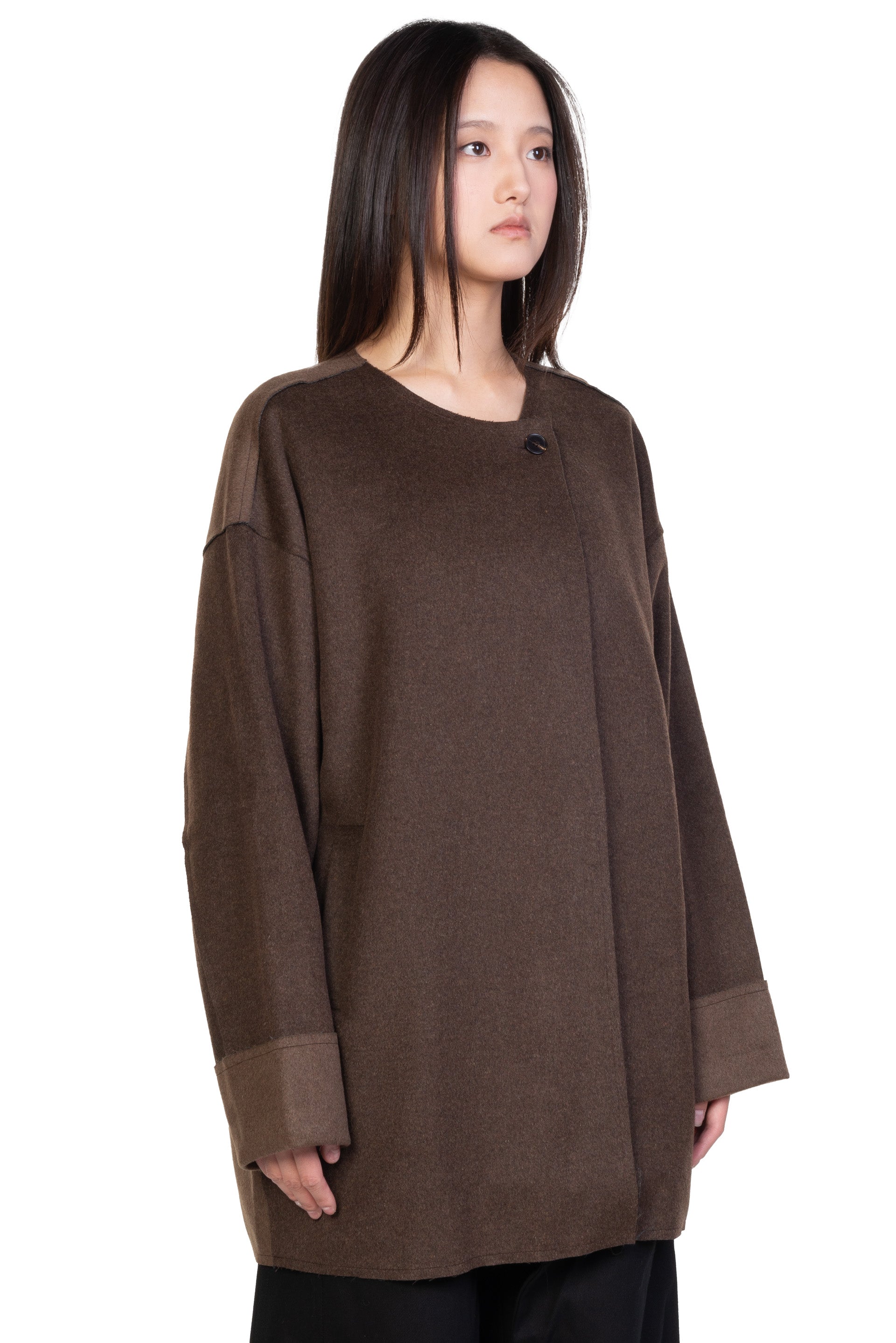 ii delivers a sense of originality, simplicity, spontaneity and a hint of childlike innocence pushing boundaries among ages to present qualitative collections with timeless touches designed for independent individuals as seen with the Chestnut Mid-length Jacket.