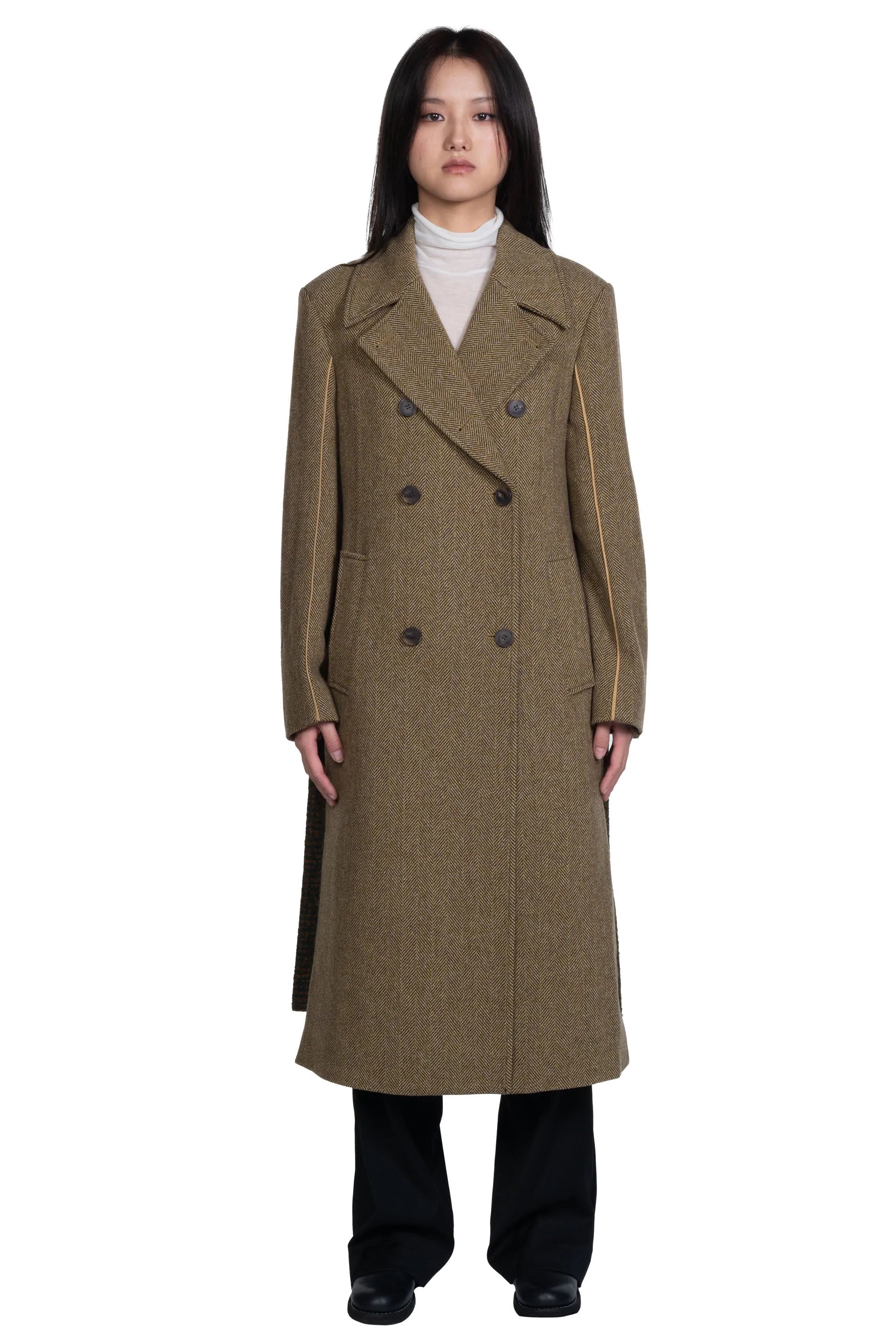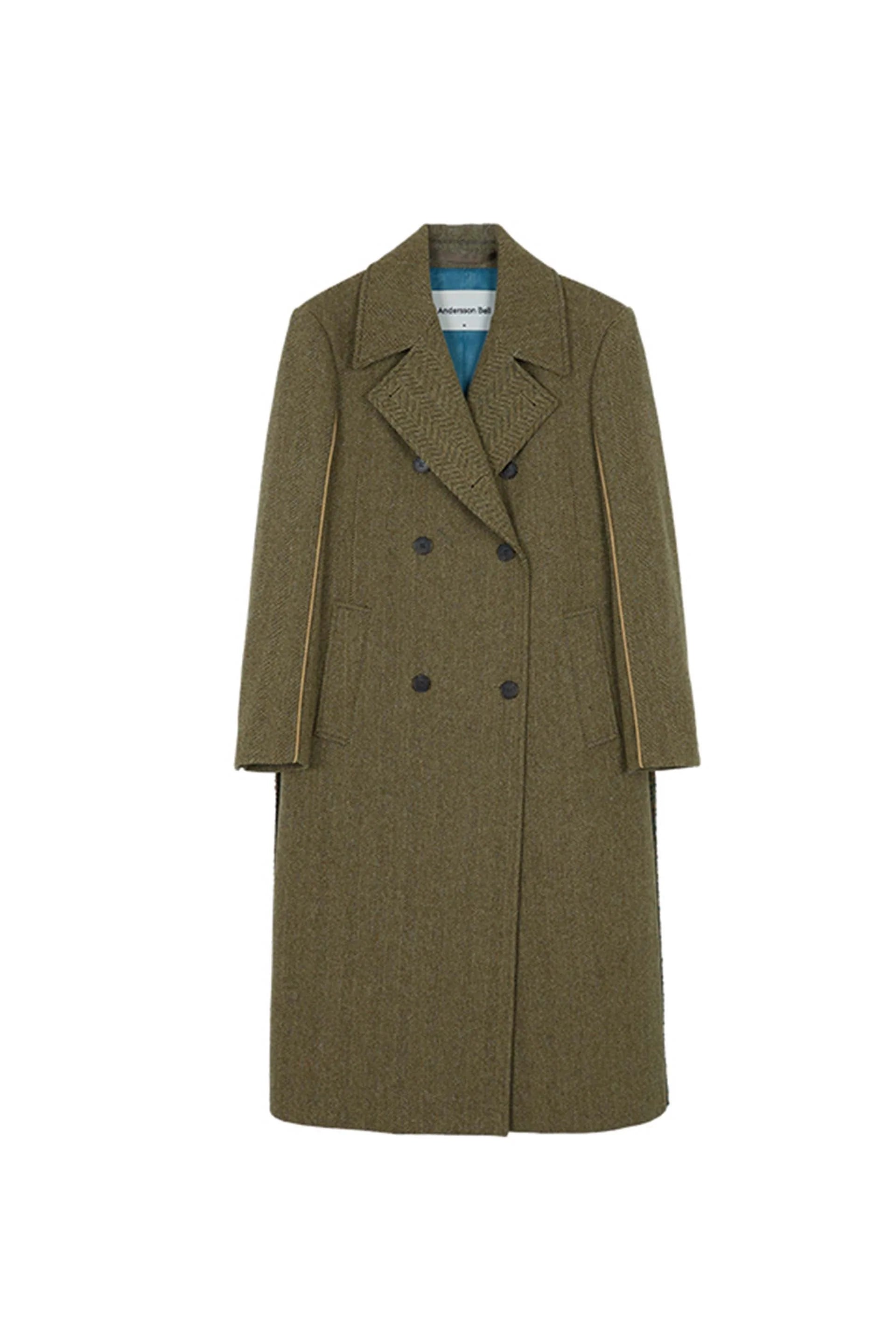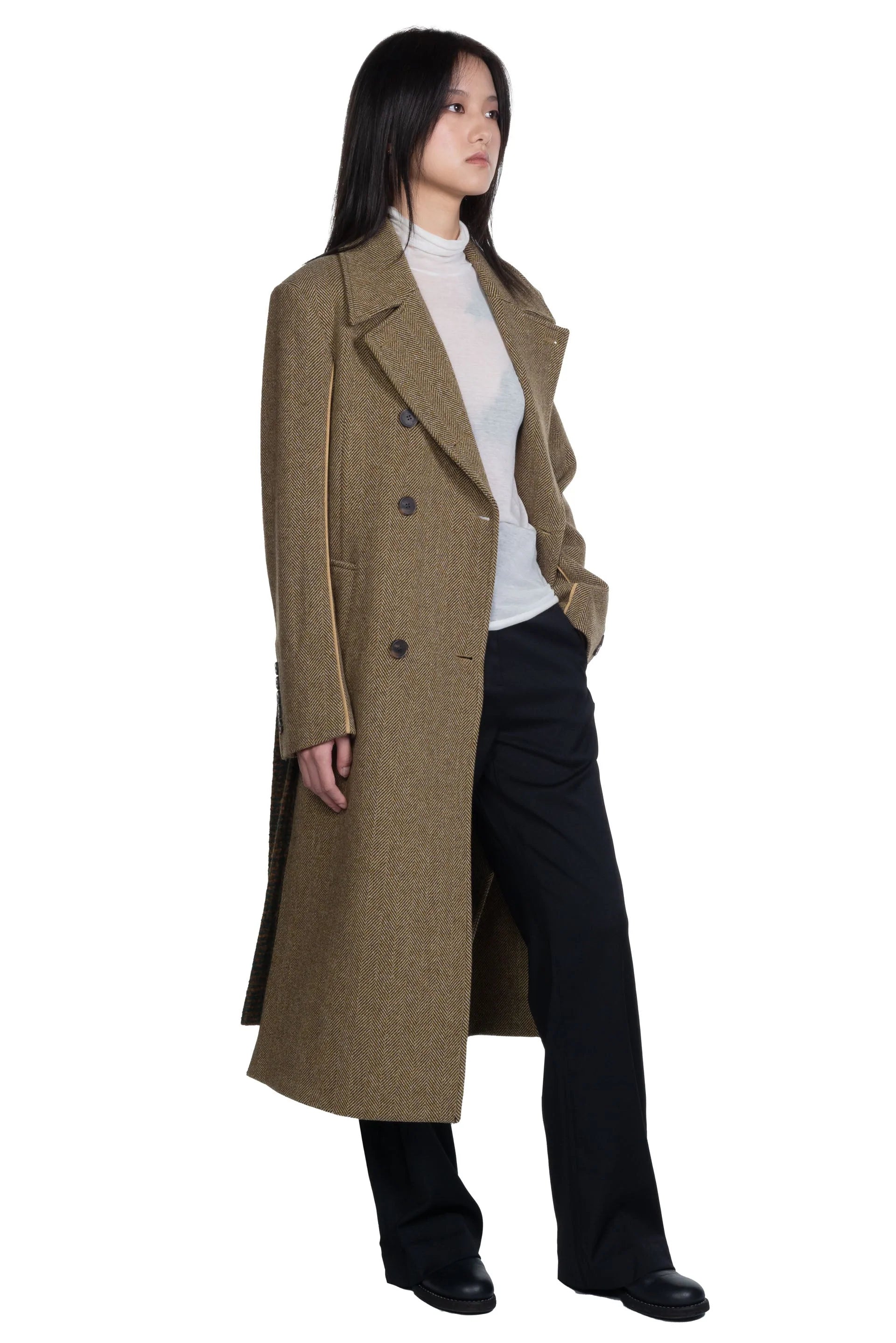 Andersson Bell Chloe Herringbone Back Pleats Coat. Pleated signature coat from Andersson Bell. Long sleeves. Two pockets at side. Button closure at front. Double breasted. Pleat details at back.