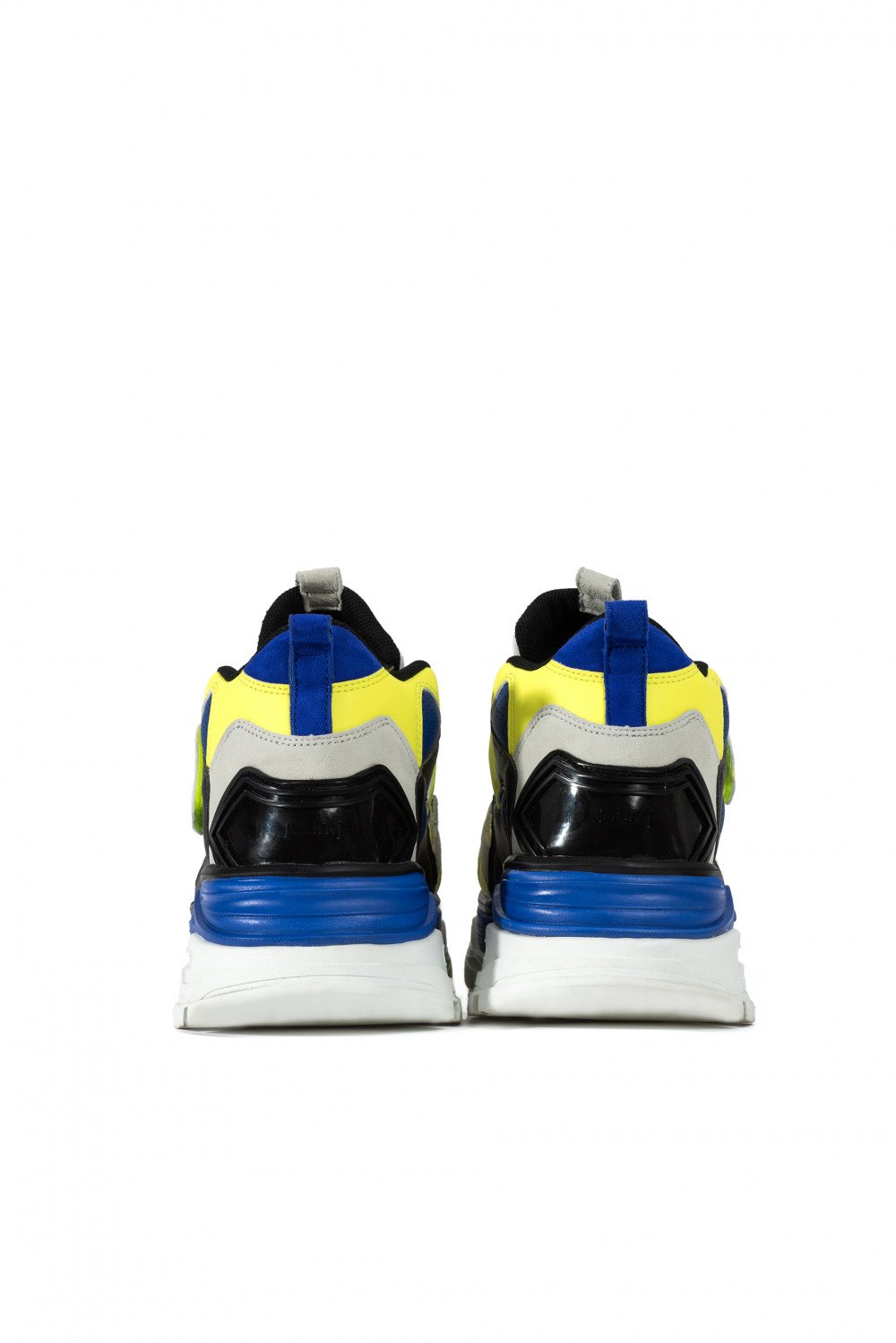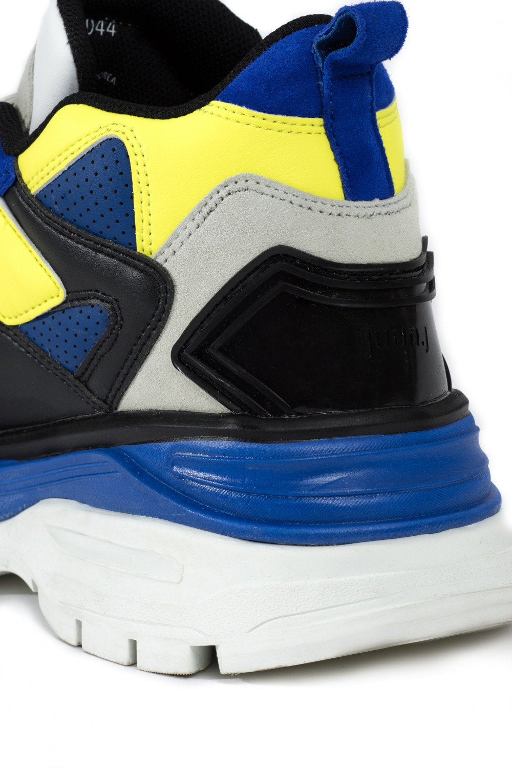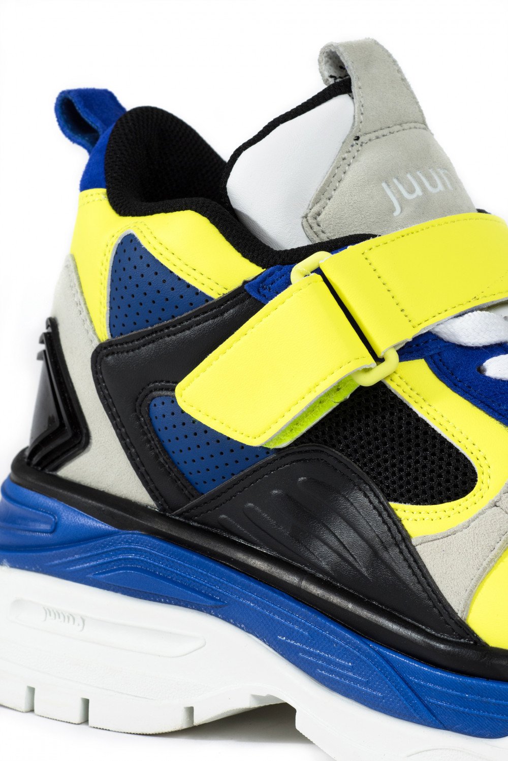 ‘Fantasy and reality are lapped over each other’ are the words behind the AW18 collection from Juun. J. The collection plays with fabric layering, embroidery and printing as seen in the Chunky Leather Strap Sneakers.