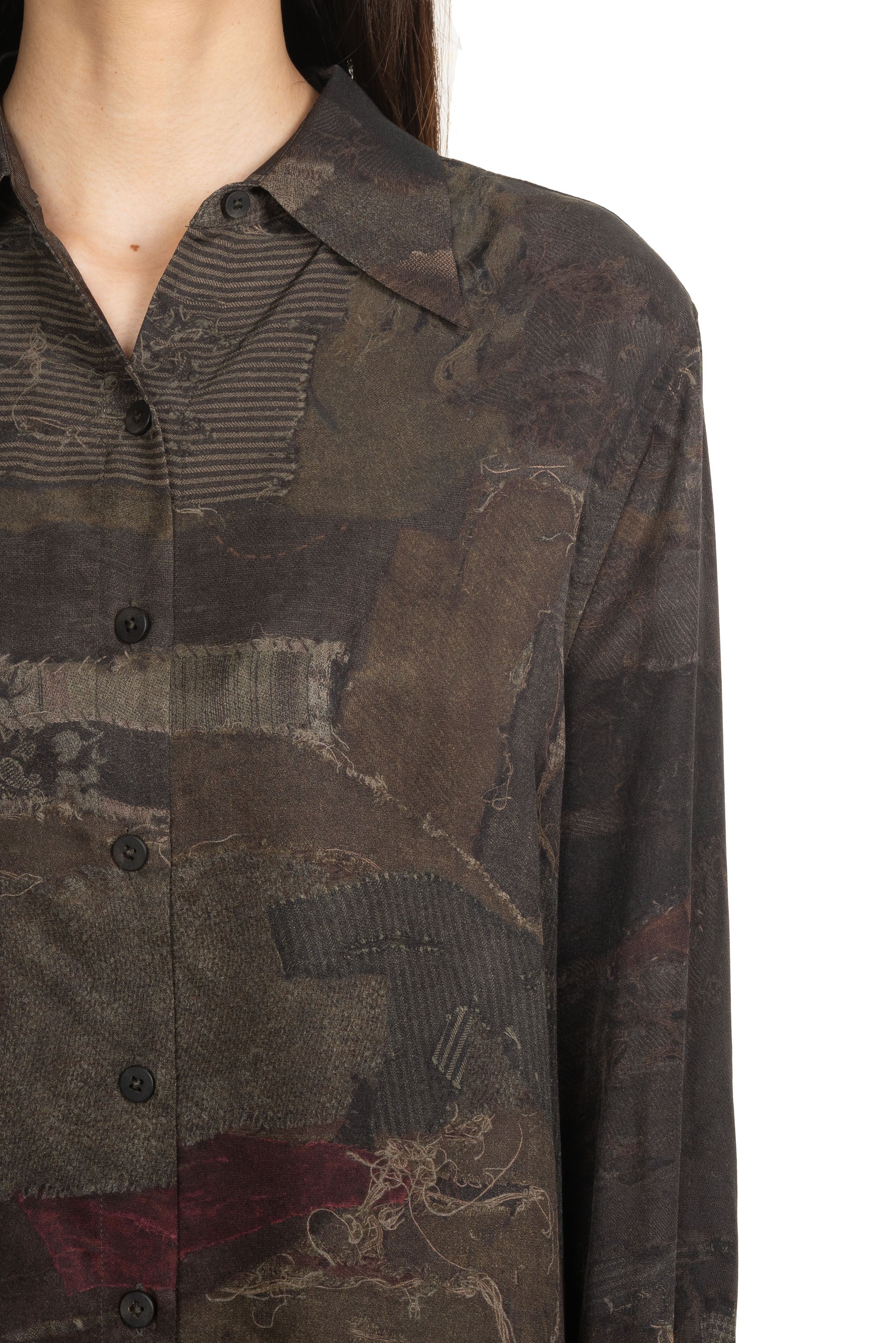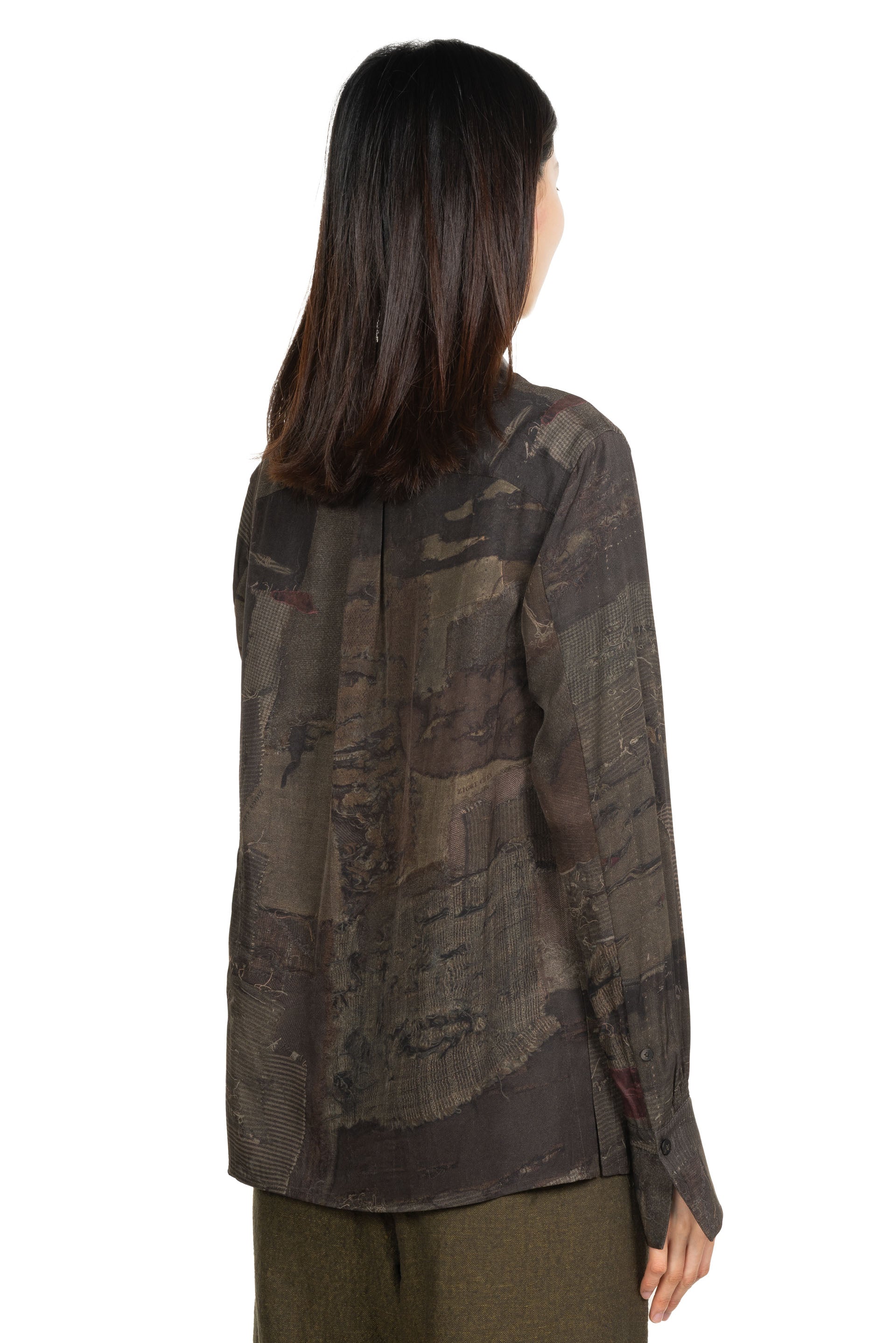 Ziggy Chen Classic digital print shirt. Regular-fit. Below-hip-length. Spread collar. Visible button closure. Back pleats.