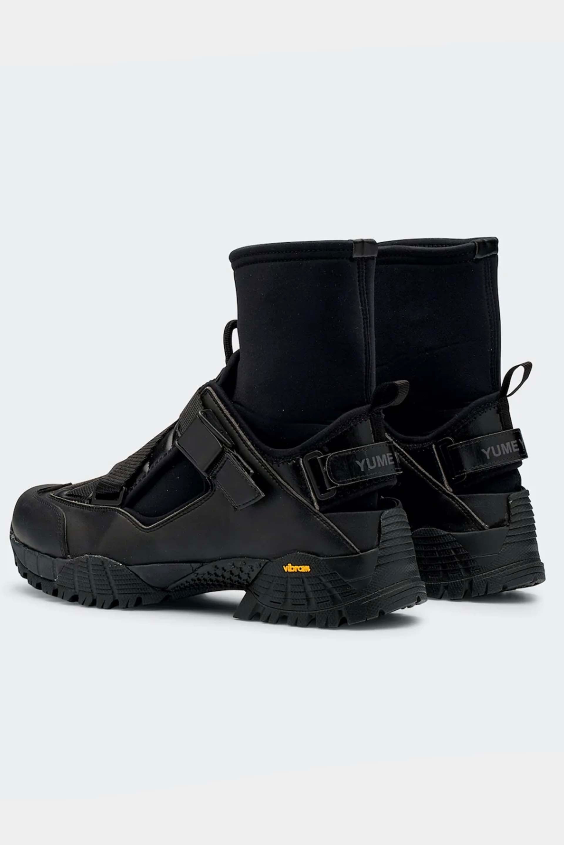 Unique and imaginative collections inspired by contemporary art, technology, and architecture. Named after the Japanese word for dream, YUME YUME makes futuristic footwear influenced by traditional Japanese silhouettes. They combine Japanese-inspired designs with a modern and futuristic approach to everyday footwear. YUME YUME aspires to create unique design pieces for all creative minds as seen with the Cloud Walker Black. Winter and rainproof variation on our classic Hiking Sandal style. Keeping all the technical elements of the shoe and turning them into a boot with a neoprene shaft. The Vibram outsole gives the wearer all technical benefits of a hiking shoe with a special balance line to control the natural movement of the foot.