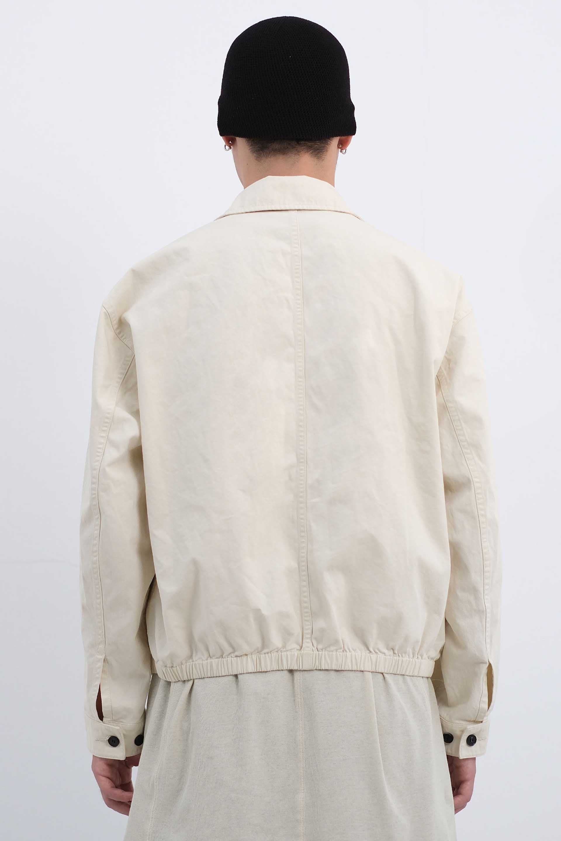 Attempt Coach Jacket Beige. Long sleeves. Regular collar. Two side pocket. Elasticated details at bottom. Double zip closure with long puller detail. Soft textural cotton fabric.