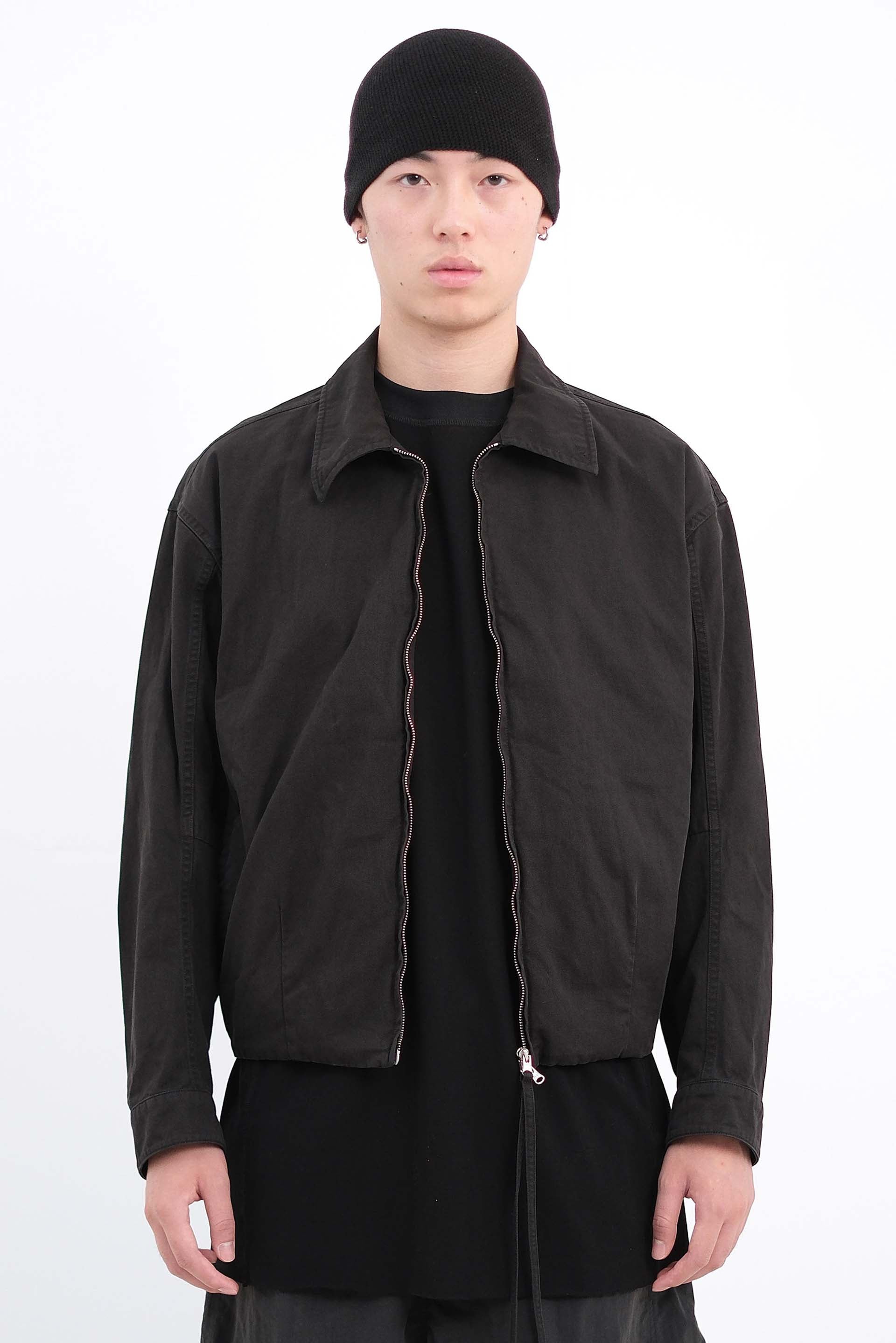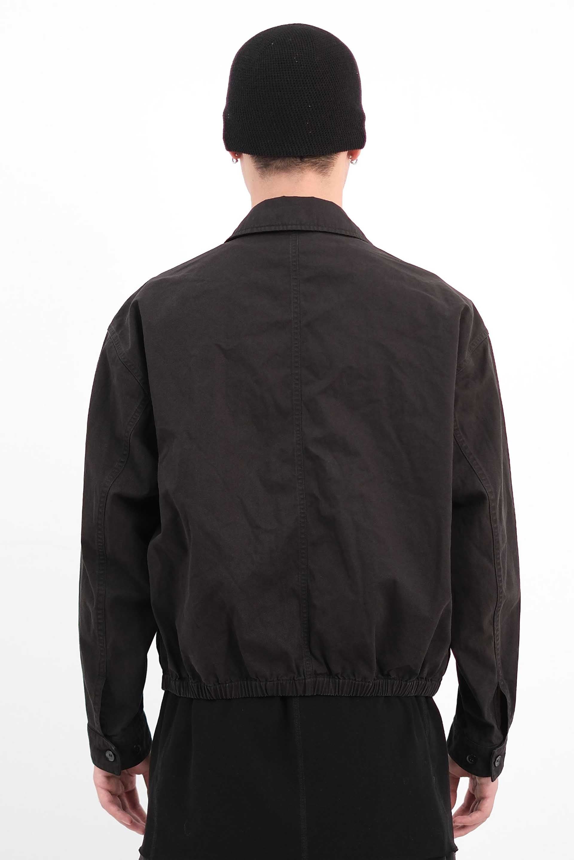 Attempt Coach Jacket Black. Long sleeves. Regular collar. Two side pocket. Elasticated details at bottom. Double zip closure with long puller detail. Soft textural cotton fabric.