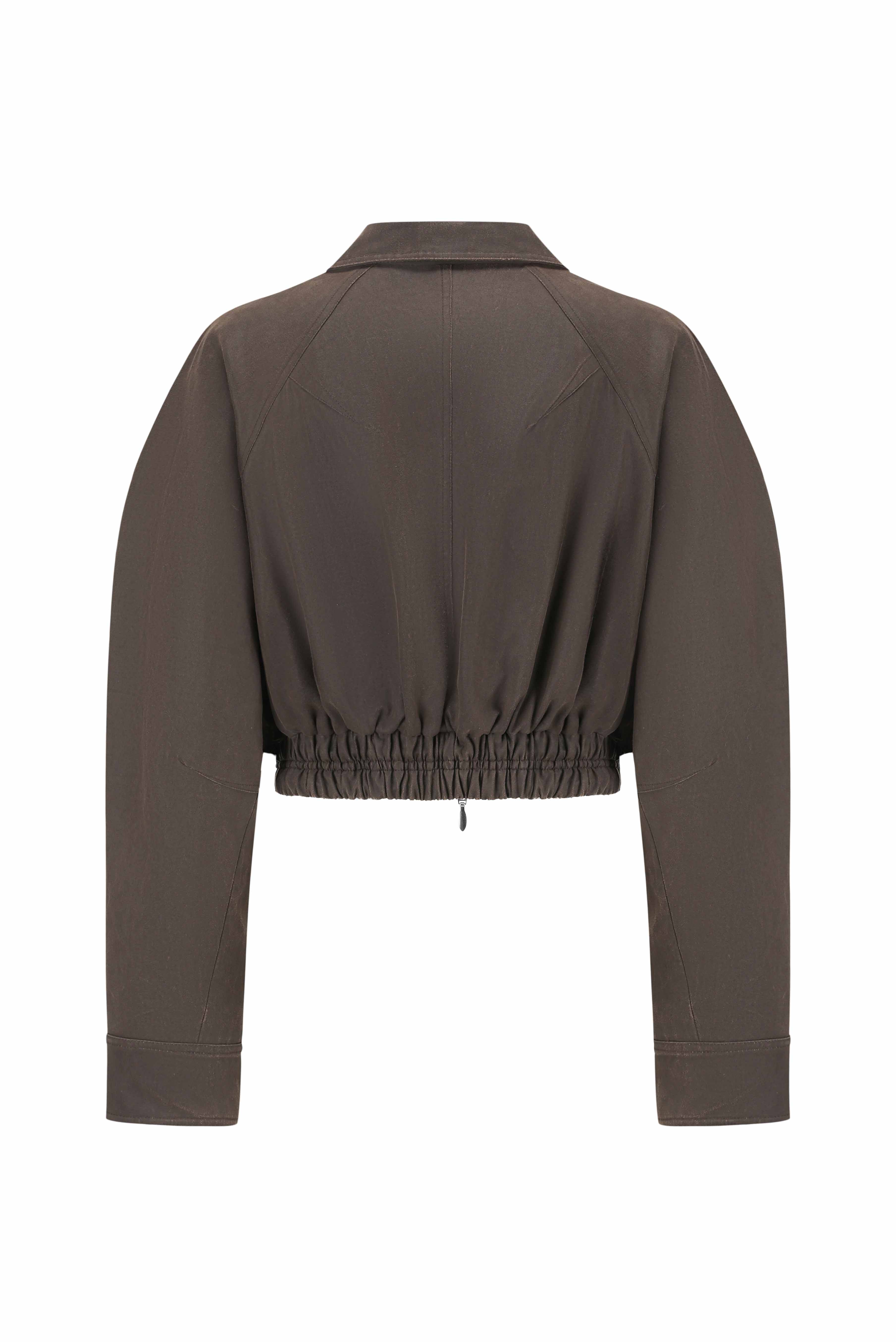 This jacket is crafted from premium Japanese coated fabric and cut in an oversized silhouette. Through a resin coating and specialized dyeing process, the material develops organic textures and a vintage-inspired hue, making each piece subtly distinct. These natural variations lend every jacket its own one-of-a-kind beauty. It’s sleek oversized silhouette conveys effortless ease while maintaining refined sophistication, embellished with the brand's antique copper buttons bring individuality and elegance.