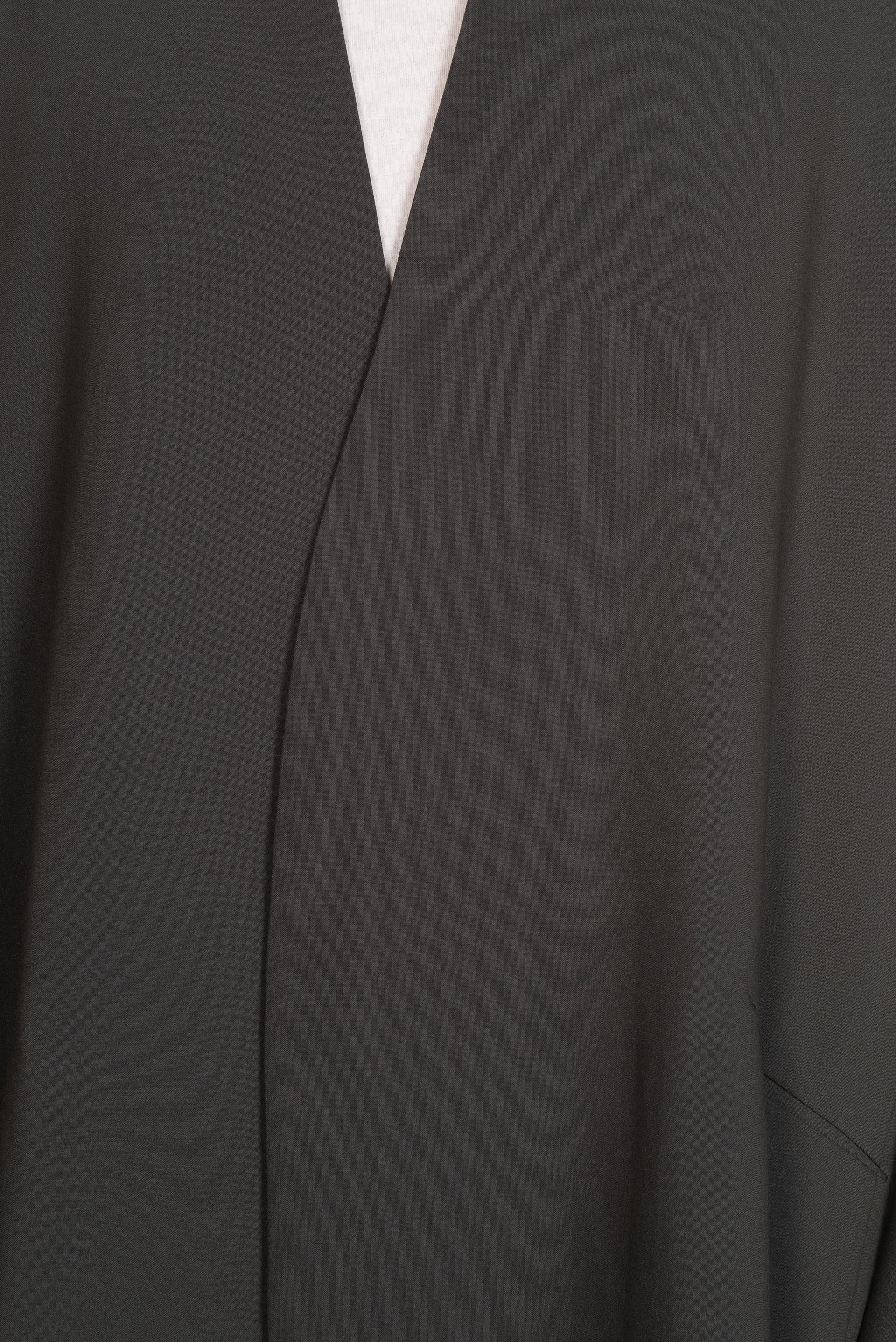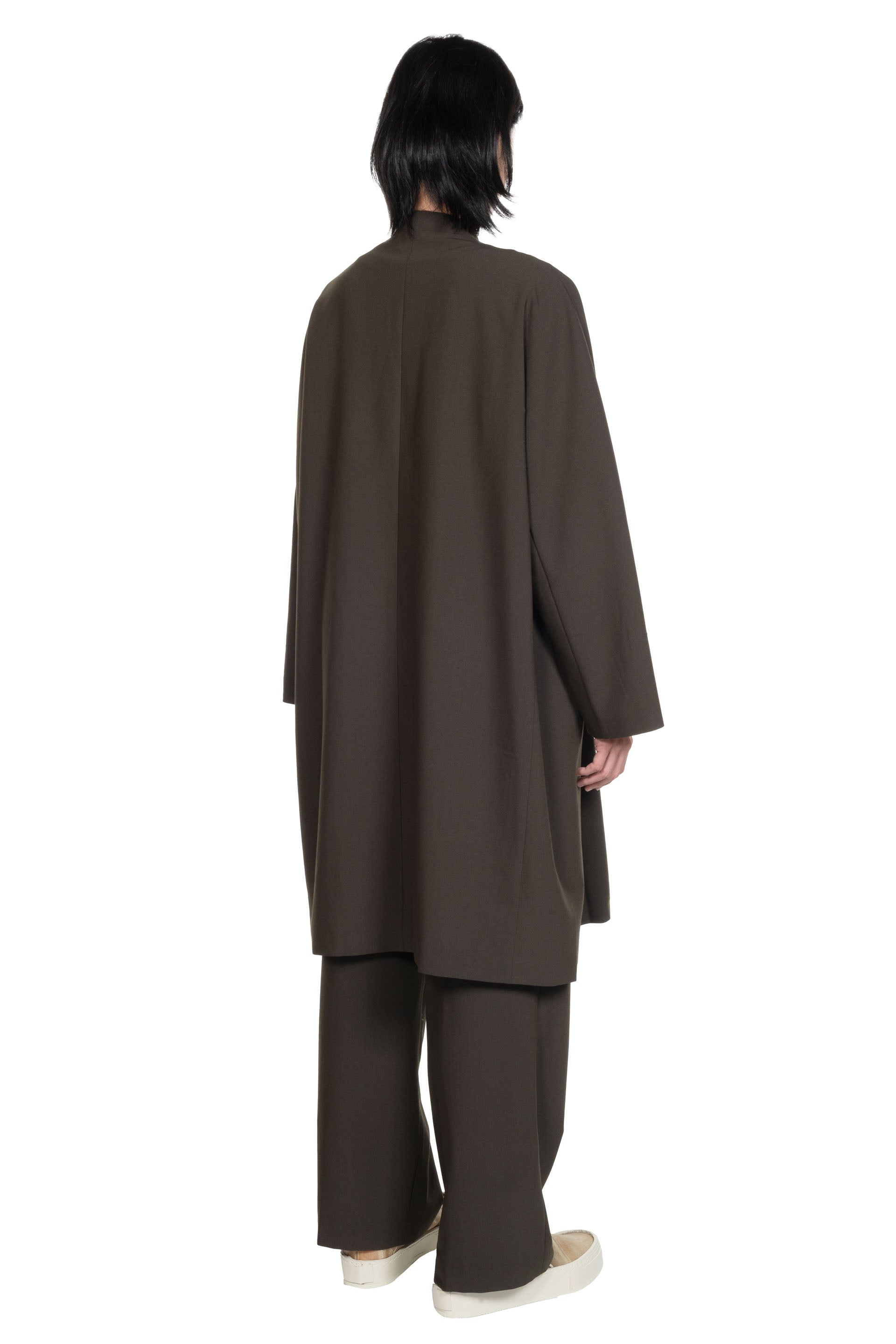 Kar Studio is an independent interior design studio, furniture and clothing brand exploring the cause and effect of aesthetics, integrating tradition and modernity. Kar is presenting modern design with Oriental philosophy. Inspired by art, literature, memories and emotions Kar focuses on design sensibility aiming to convey emotion that will resonate with people as seen with the Collarless Long Coat Black Olive.