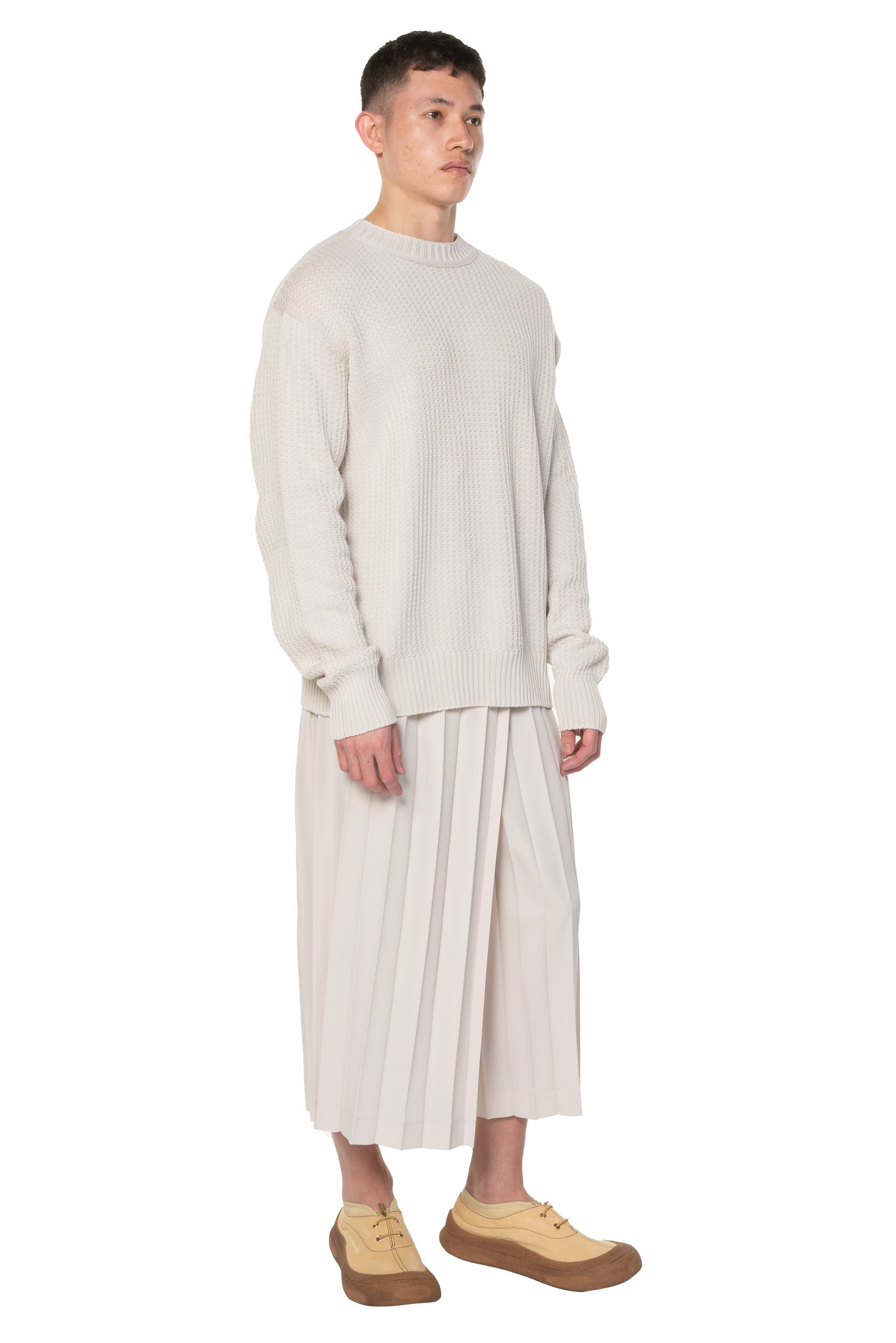 For striking cuts and innovative designs, Homme Plissé plays with dimension and folds to create visually dynamic pieces. With visionary technology and stylistic innovation, Issey Miyake reinterprets conventional staples for today as seen with the Common Knit Grey.
