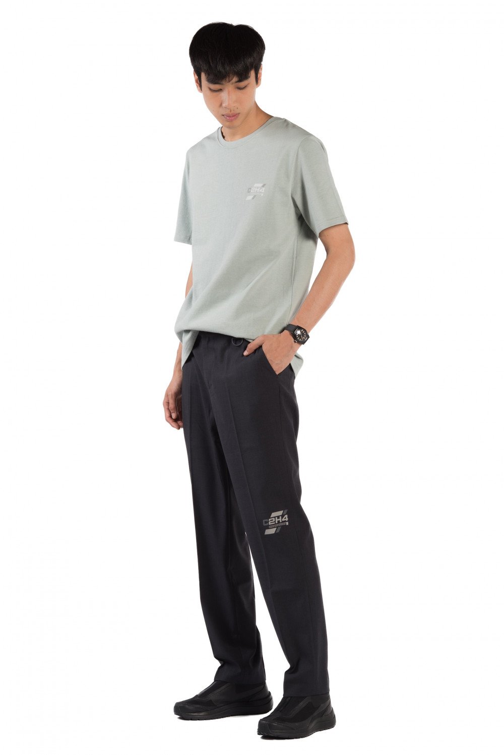 C2H4 concept ranges from hypothetical space scientists producing sport and streetwear-inspired designs creating an intergalactic underground culture. Using her studio as a laboratory, Chen’s meticulously elevates wardrobe cornerstones as seen with the Company Logo T-shirt Misty Green.