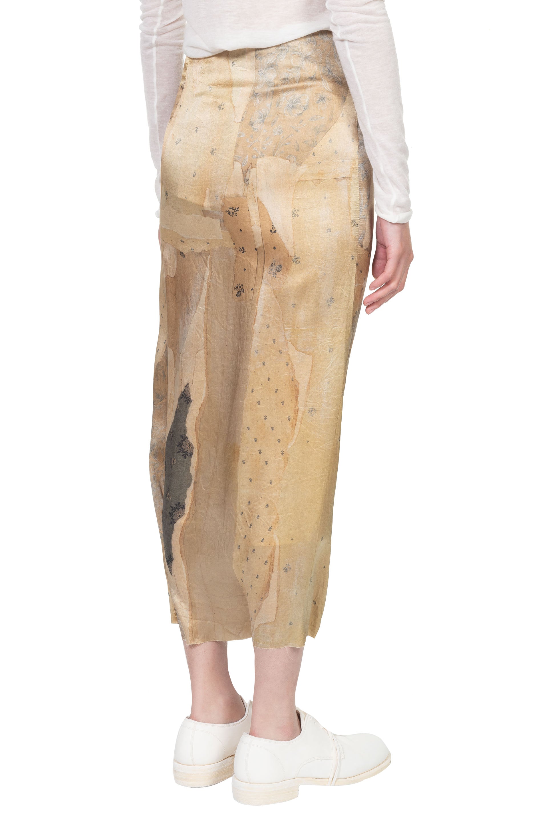 A Tentative Atelier aims to explore artistic handicraft elements and innovative forms and silhouettes on garments combining with neo-vintage effect. The label does not only focus on fashion, it is a platform to encourage and sustain the spirit and tradition in craftsmanship to create new form as seen with the Cornerwall Printed Skirt.