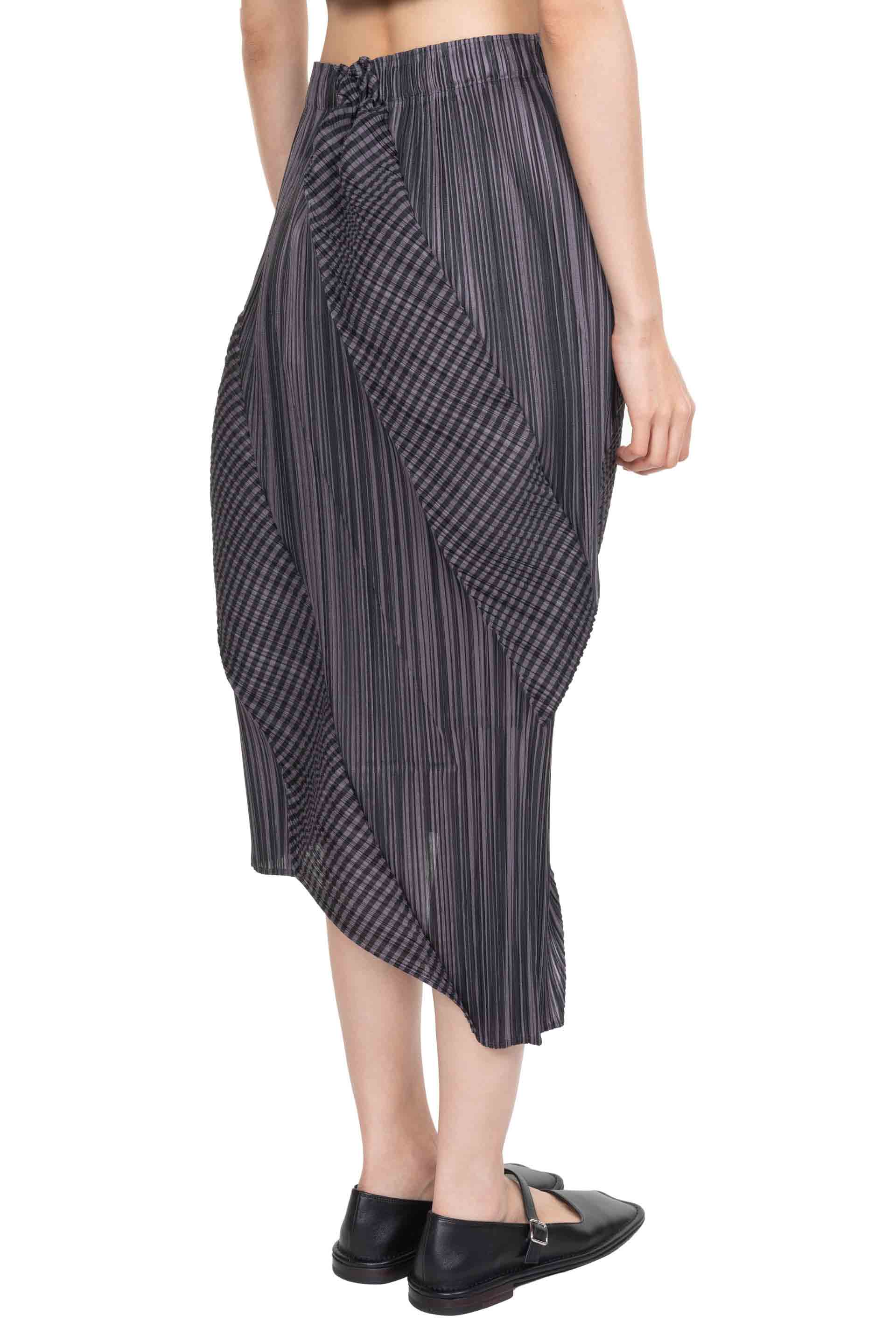 Pleats Please is crafted from a single thread, then creases are added after the clothes have been sewn into shape offering a combination of convenience, comfort and coolness. Pleats Please designs are simple with a strong silhouette as seen with the Cosmic Rays Skirt Grey.