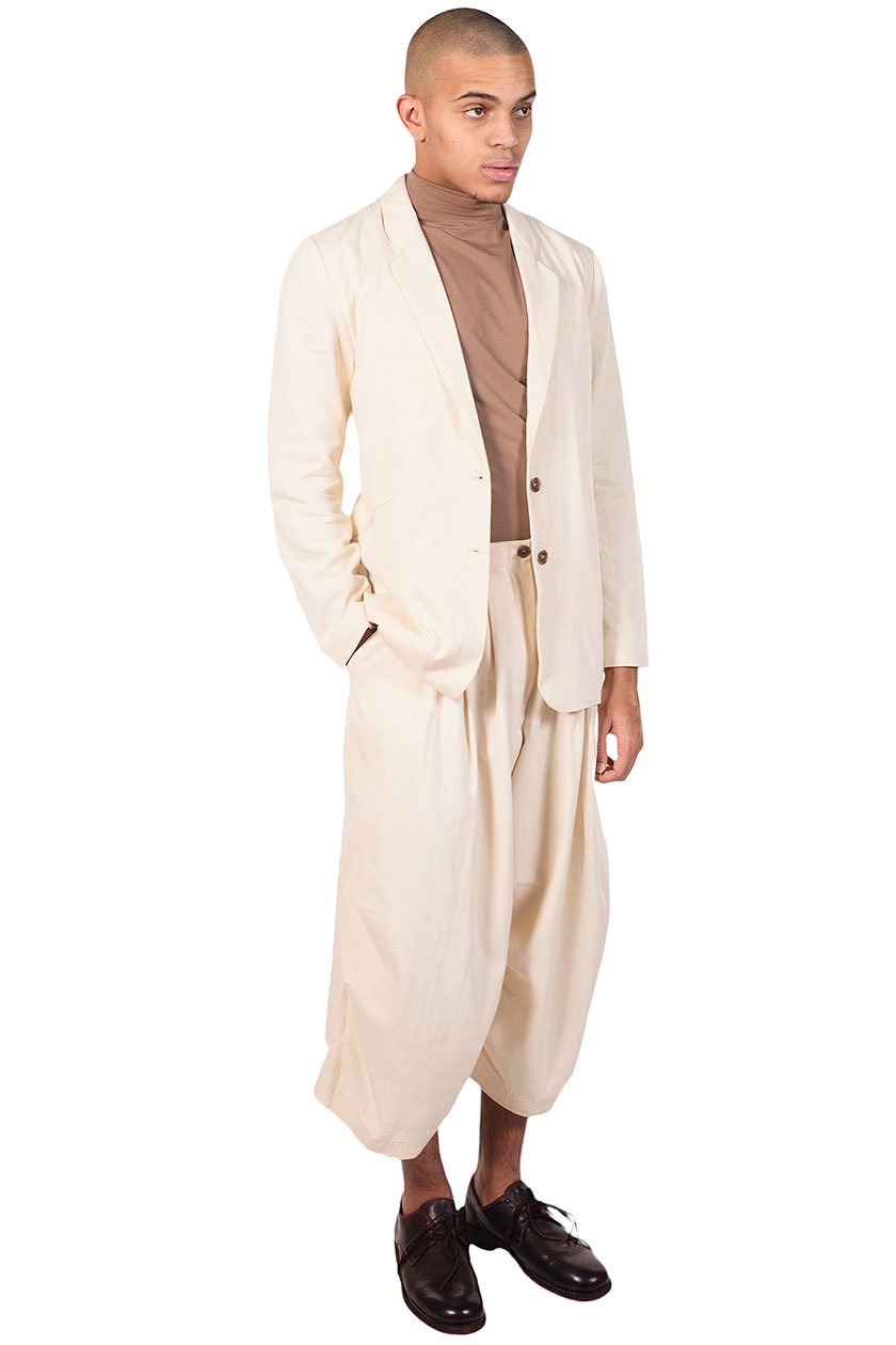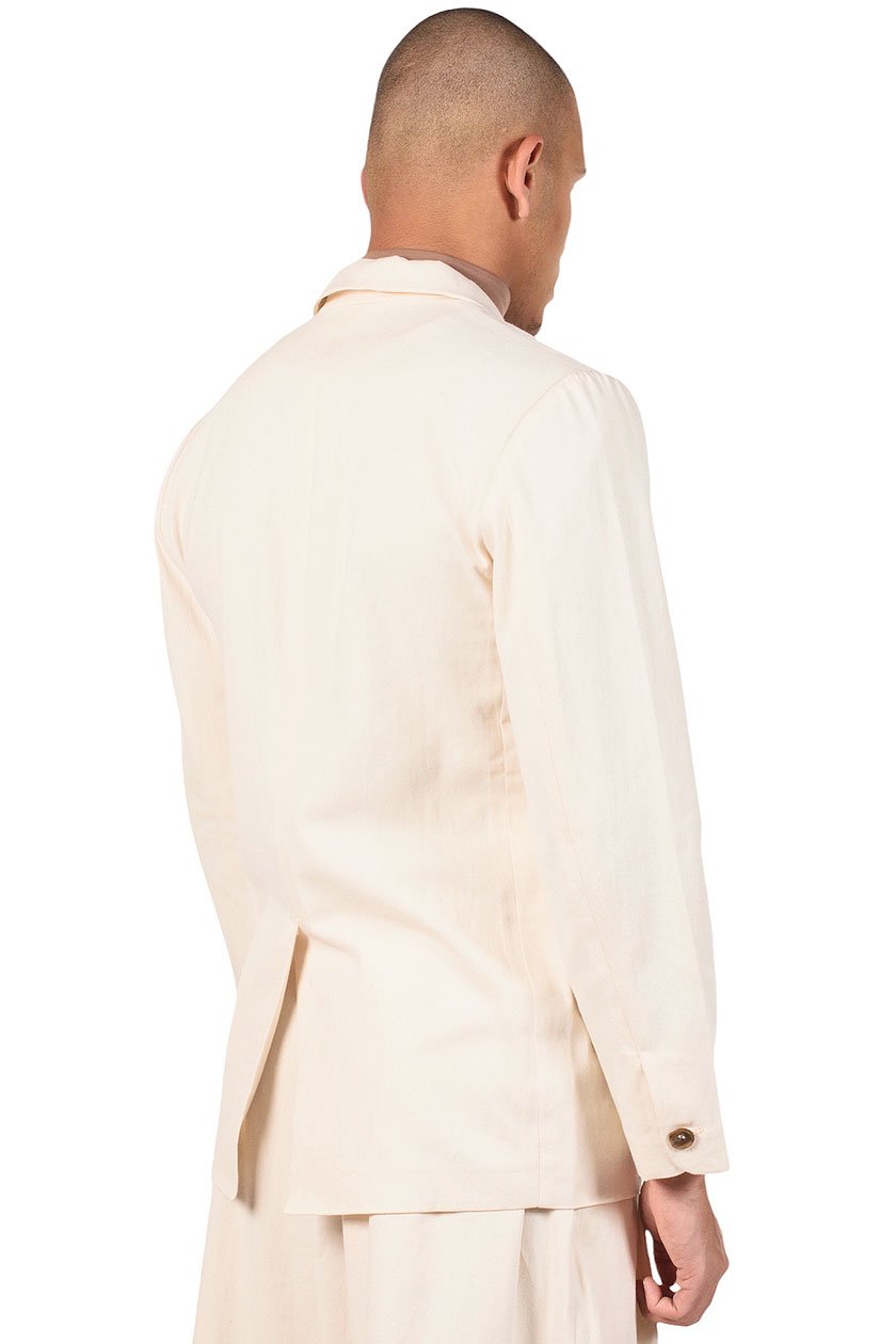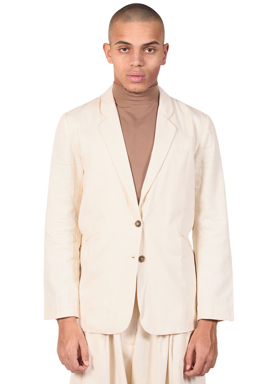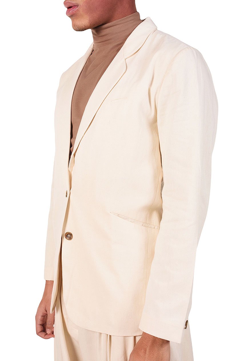 Two buttons blazer. Cotton blazer. Two pockets at front. One pocket at chest.