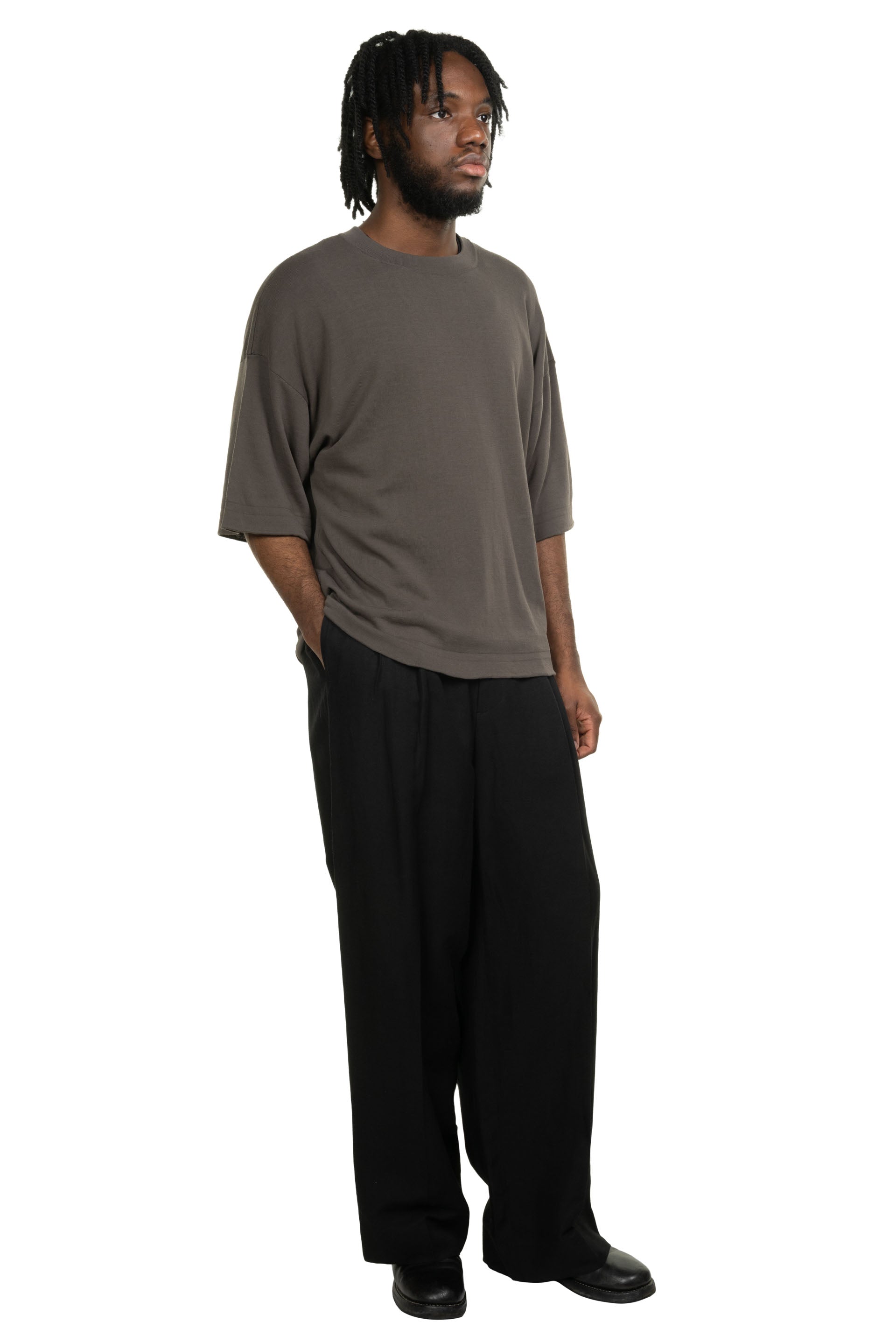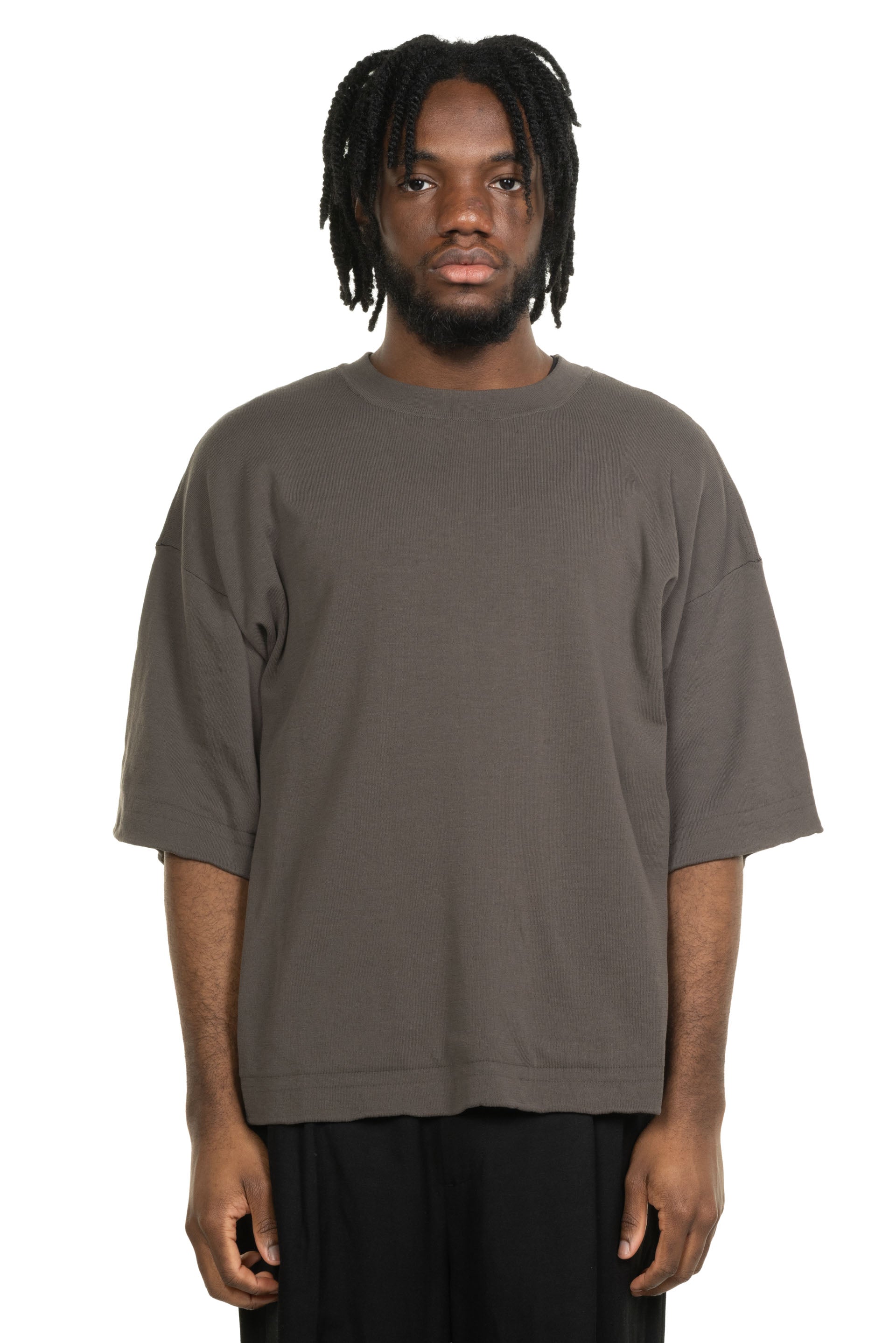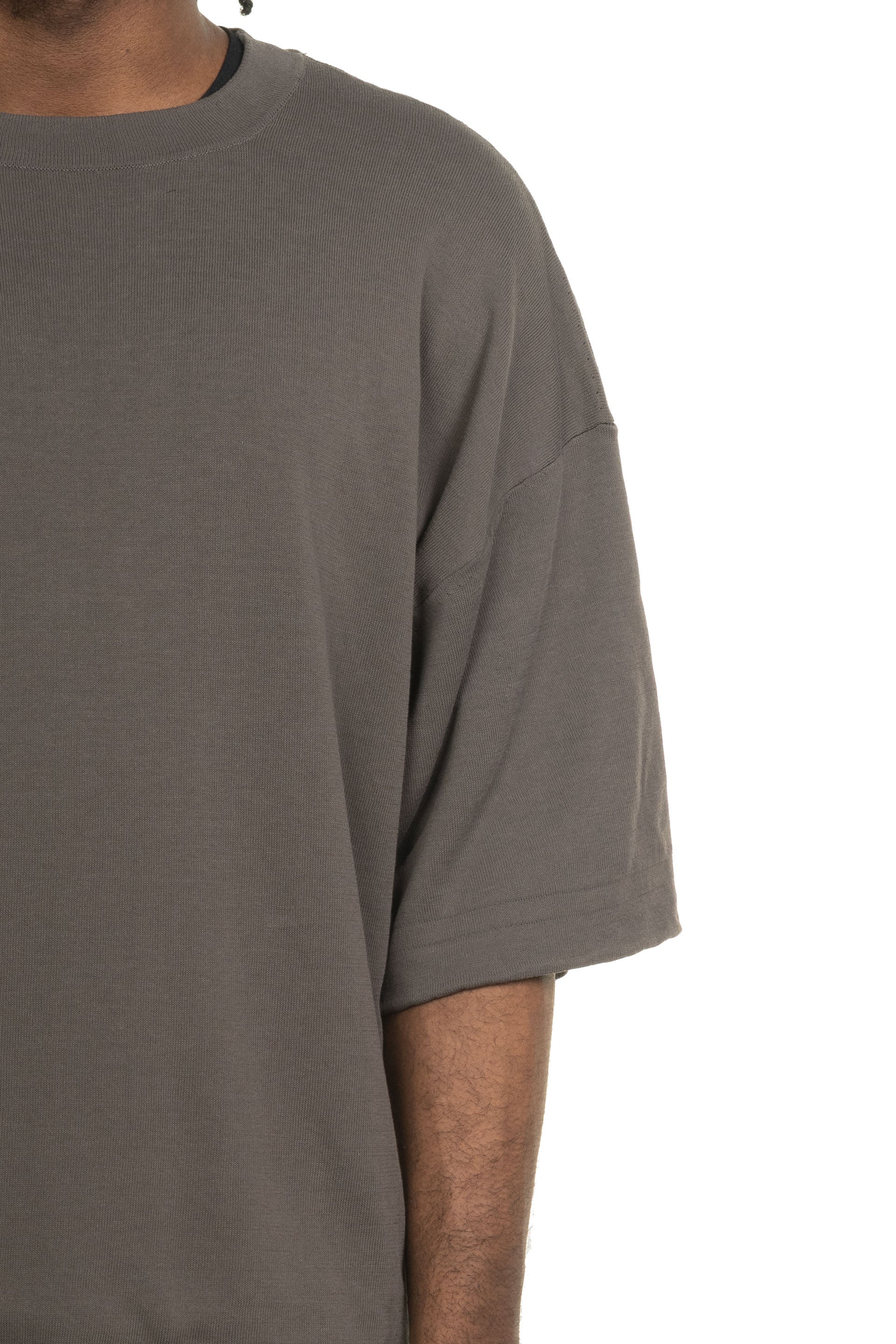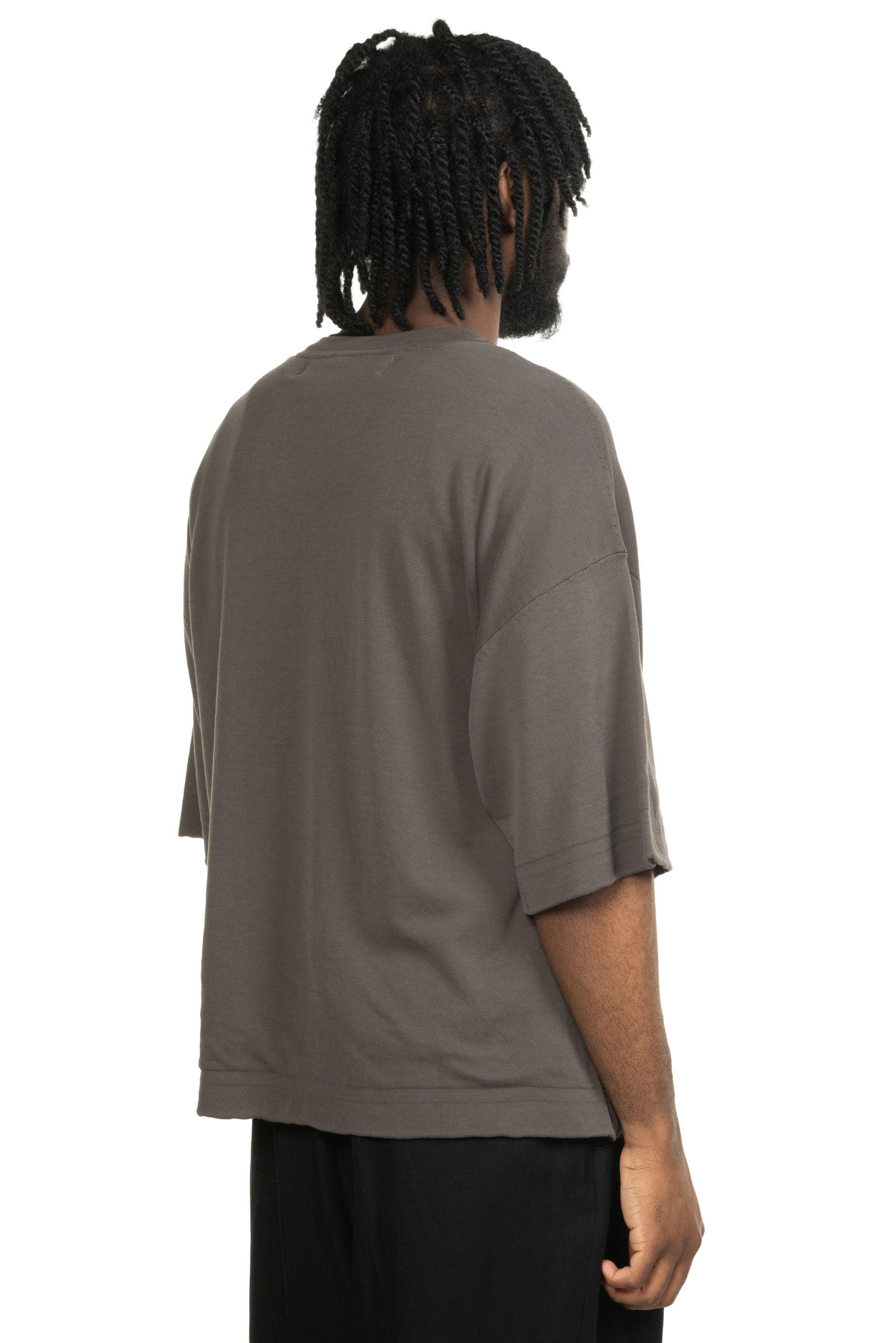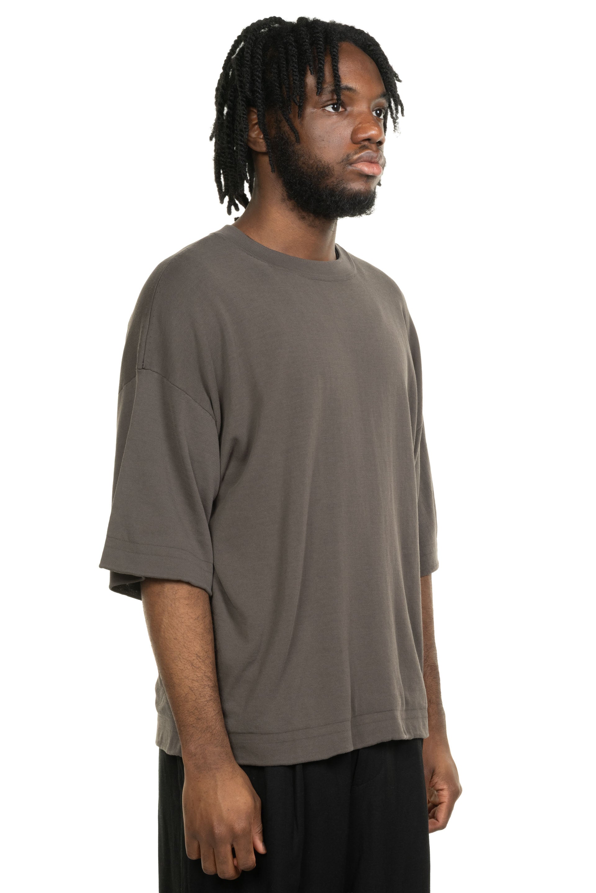 Isabel Benenato Cotton Double-Layered Knit T-shirt in Mud. Short sleeves. Boxy fit. Soft knitted fabric.