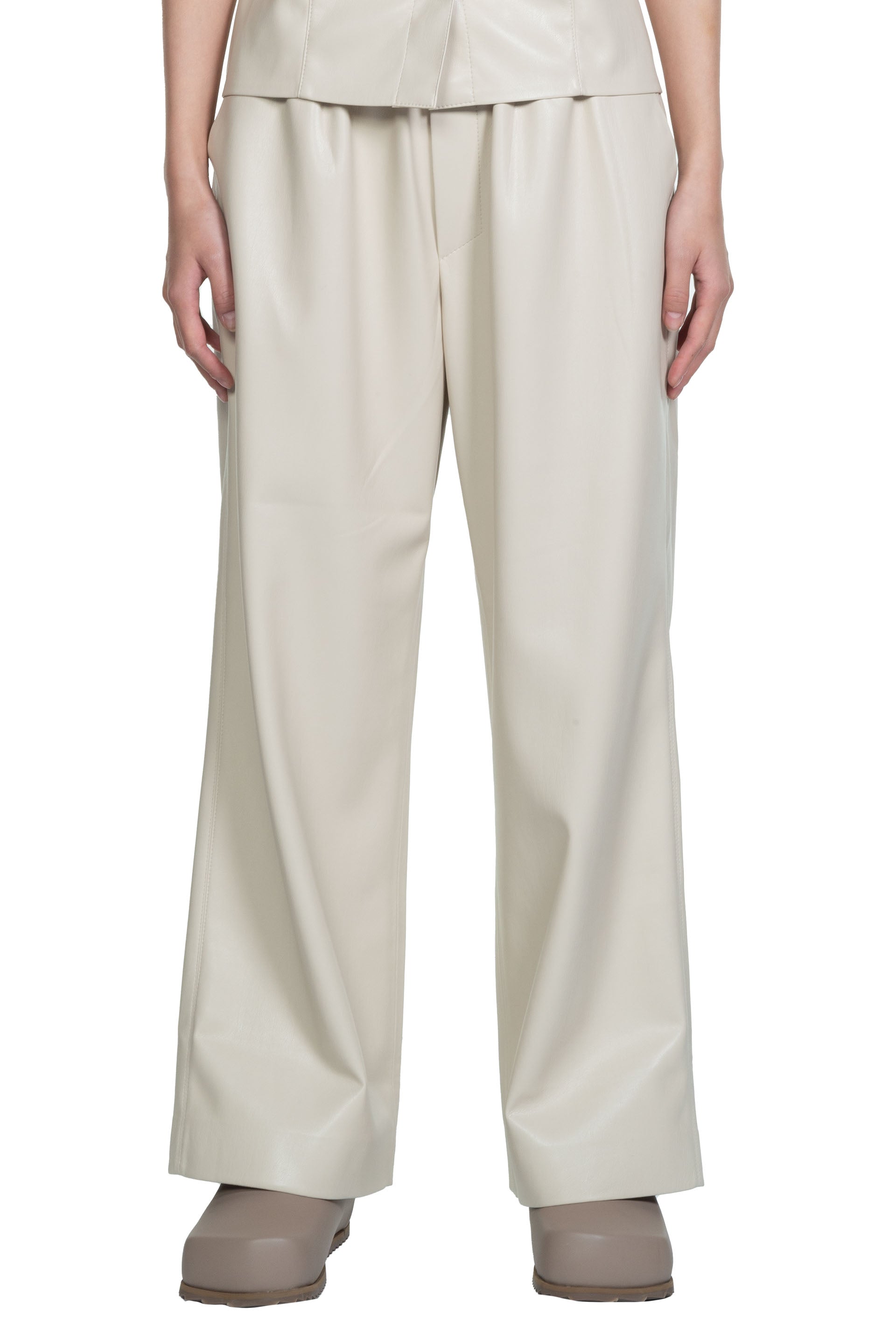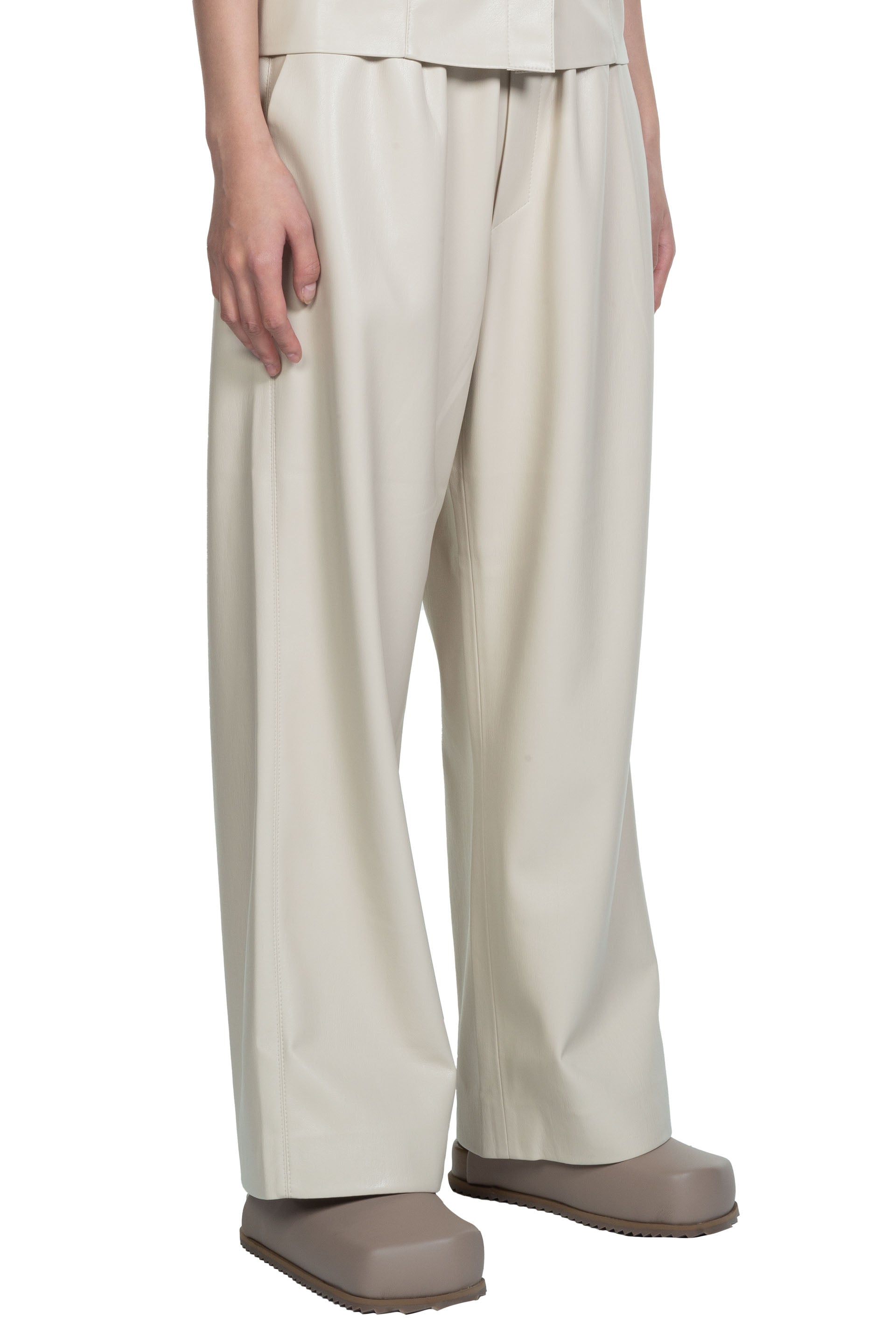 Creme Vegan Leather Odessa Trousers. Relaxed-fit grained faux-leather trousers in black. Mid-rise. Four-pocket styling. Elasticised waistband.