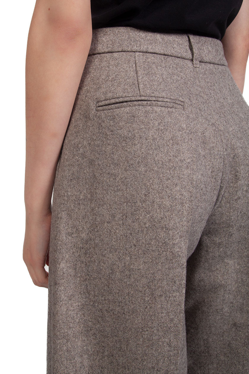 Wool-blend structured cropped wide-leg trousers. Structured silhouette. Bonded wool blend fabric. Wide legs and cropped length. Belt loops. Zip and button fastening.