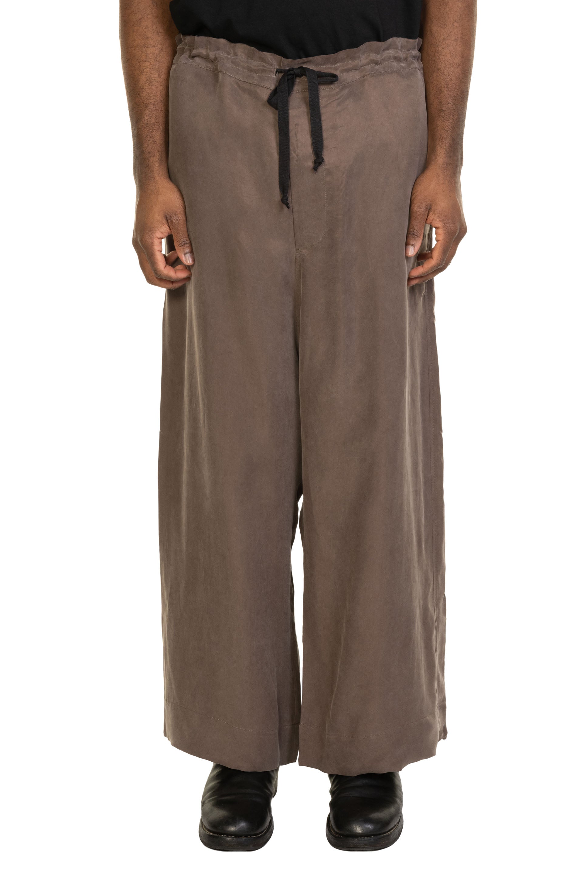 PENG Cupro Trousers Dust Brown combine relaxed tailoring with refined contemporary design. Crafted from soft, fluid cupro fabric, they drape naturally and move comfortably with the body, offering a lightweight and breathable option for everyday wear.