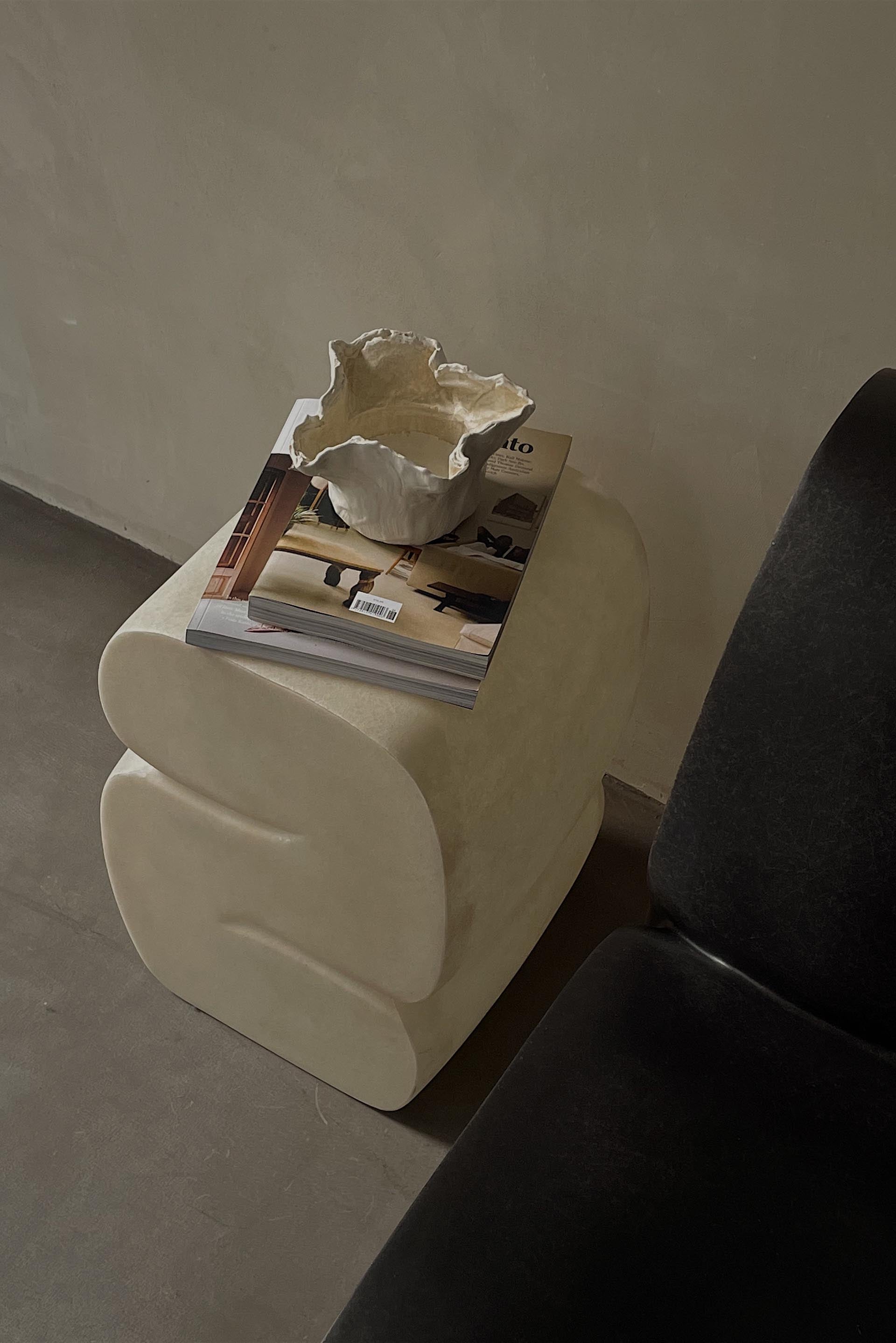 The kar-studio Curl-up Stool is shaped in a curl-up position. Casual meanwhile restrained. The side is designed as a cross section of the furniture to present the