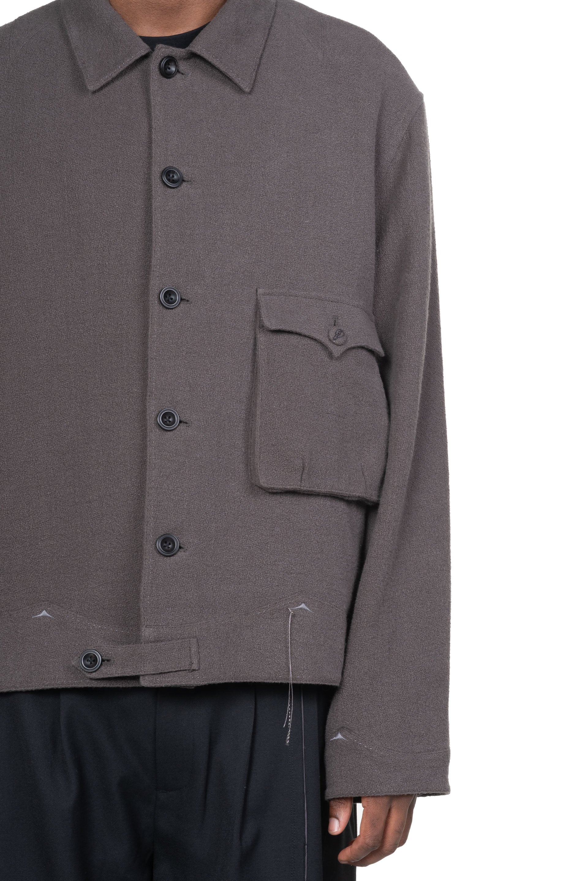Professor. E understands the time of aesthetics from the use of cotton, hemp and wool. Fabric stitching, patching, designs without edge trimming, deconstruction, and reproduction are all Professor. E's signature elements creating classic immortal designs that can be viewed with the Cyclist Jacket Aged Grey