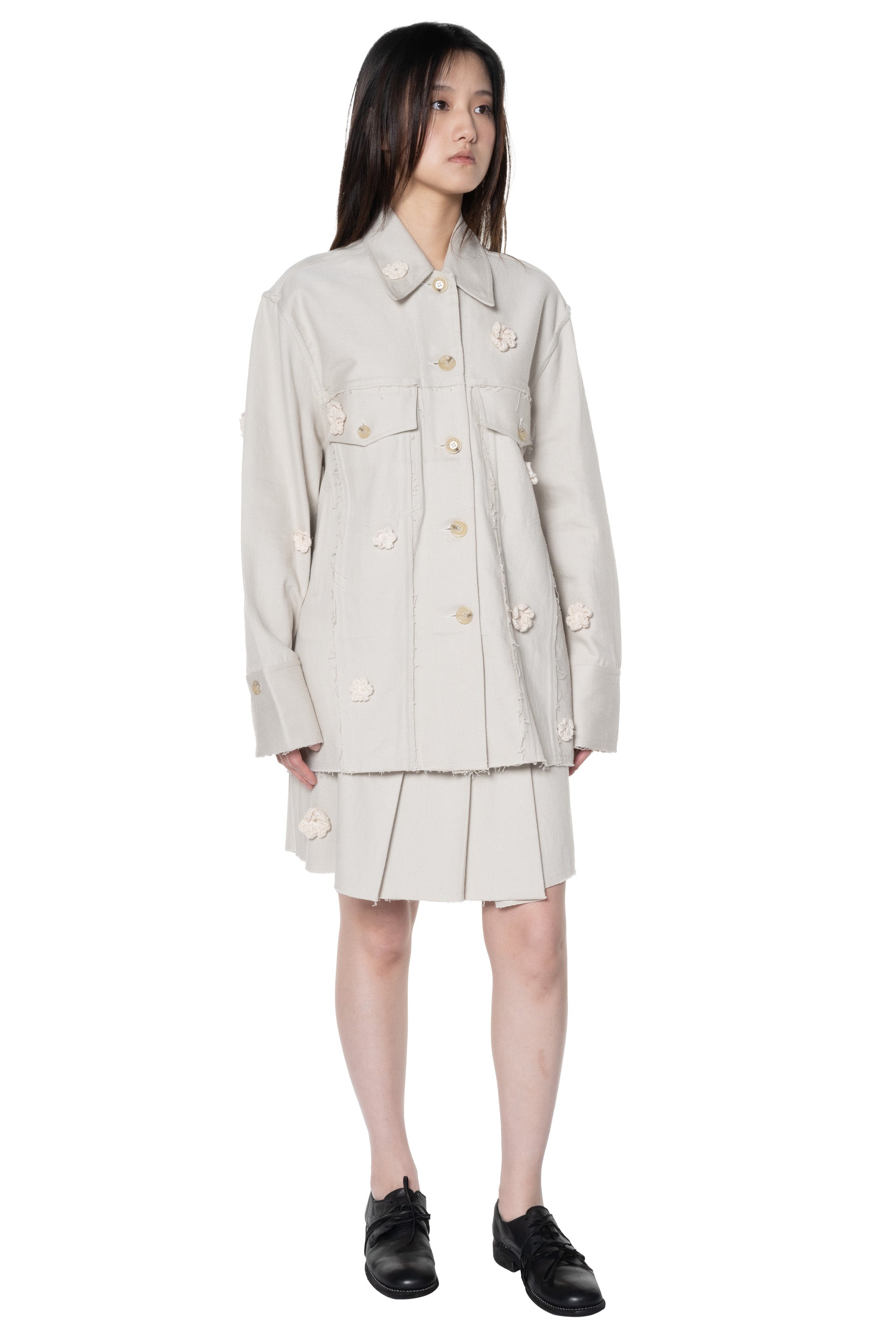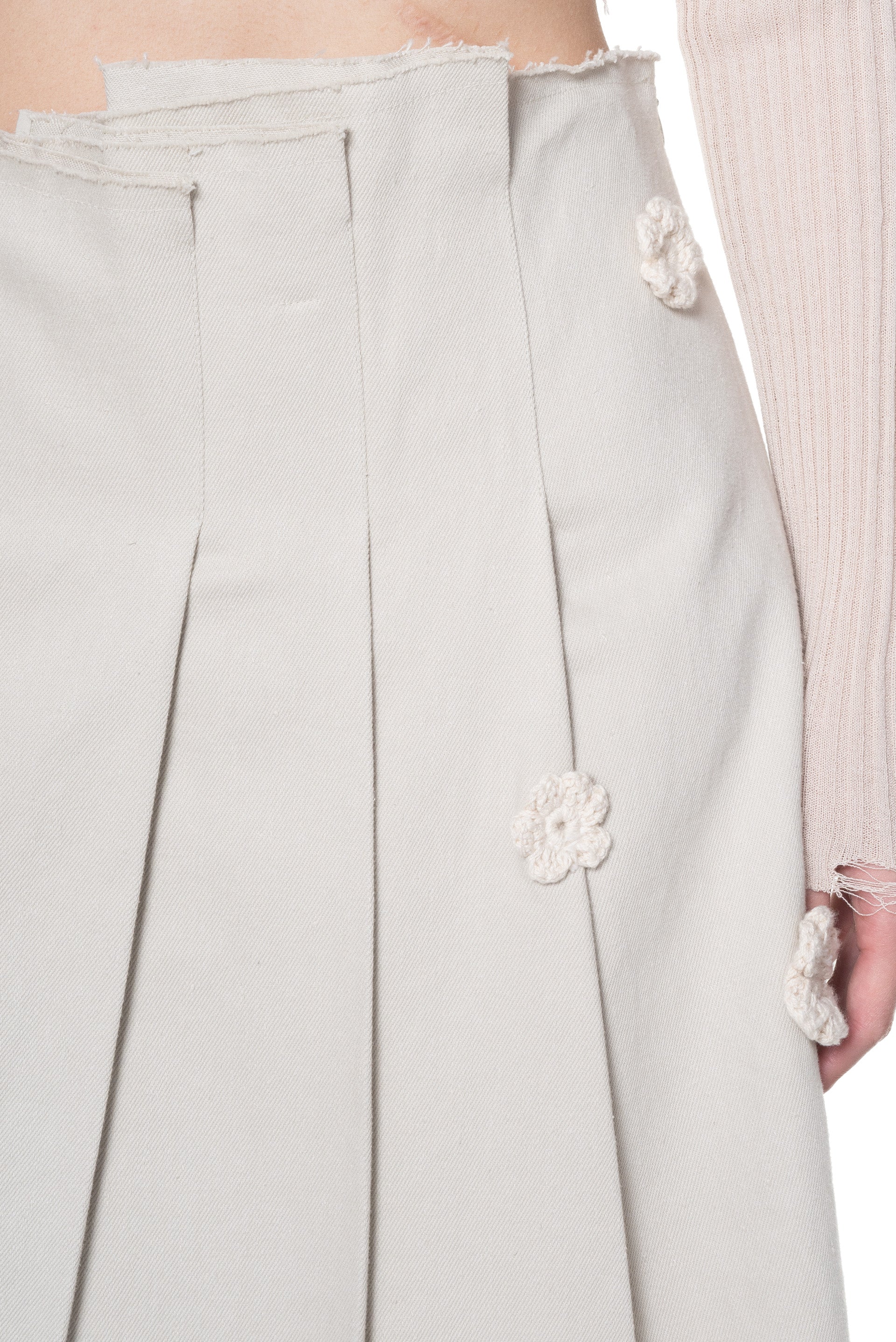 Song for the Mute cotton skirt. Button closure at waist. Raw edges. Pleated. Flower embroidered details throughout.