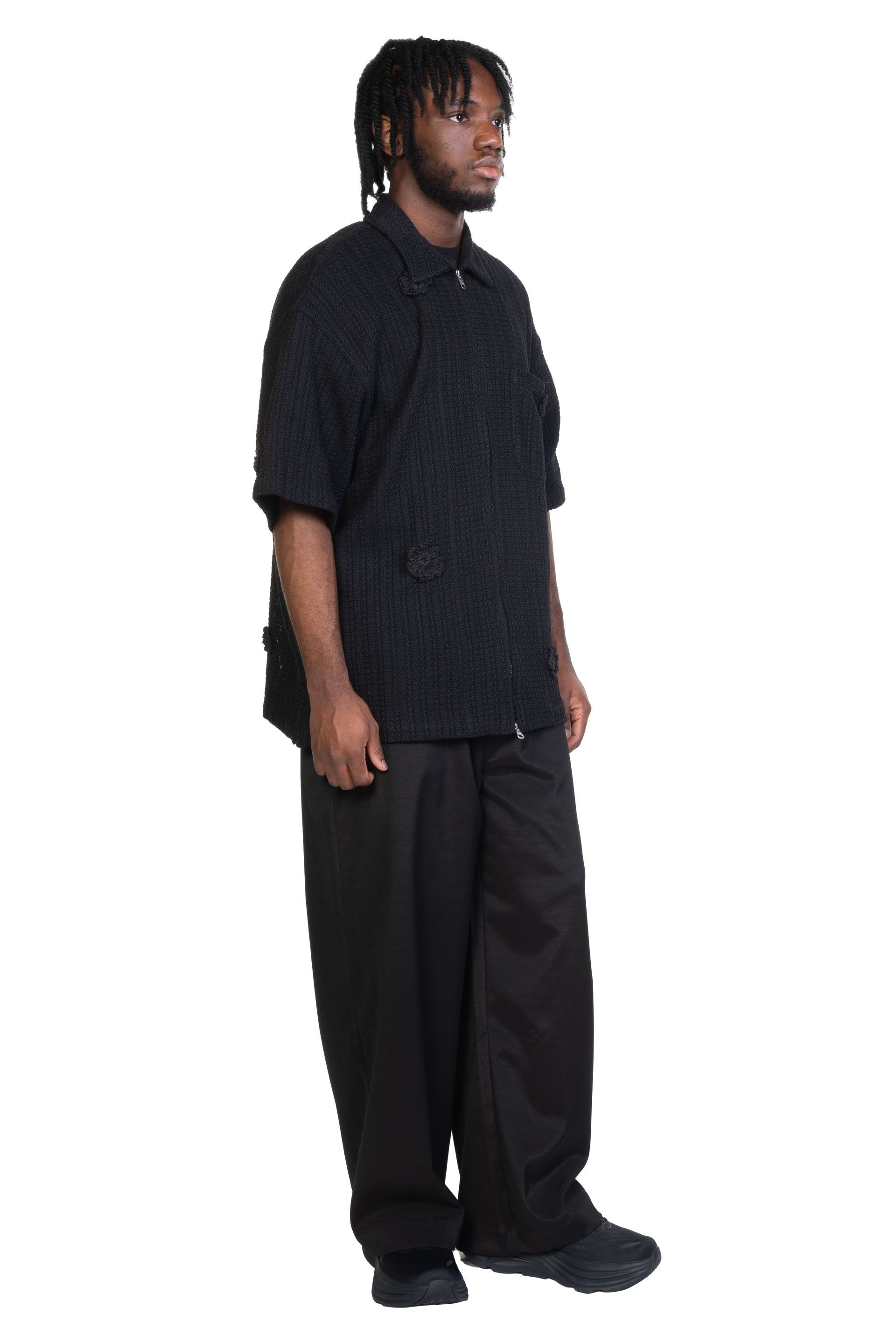 Founded in 2010 by childhood friends Melvin Tanaya and Lyna Ty, Song for the Mute is all about choosing materials carefully. The duo meticulously develops, samples, and selects fabrics in collaboration with artisanal Italian and Japanese mills before patterning their intimate, story-driven collections as seen with the Daisy Zip Up Gym Shirt Black.