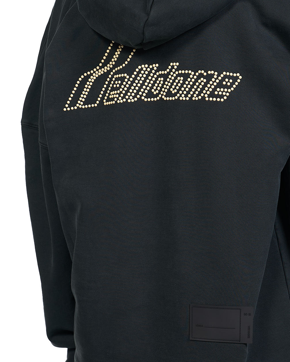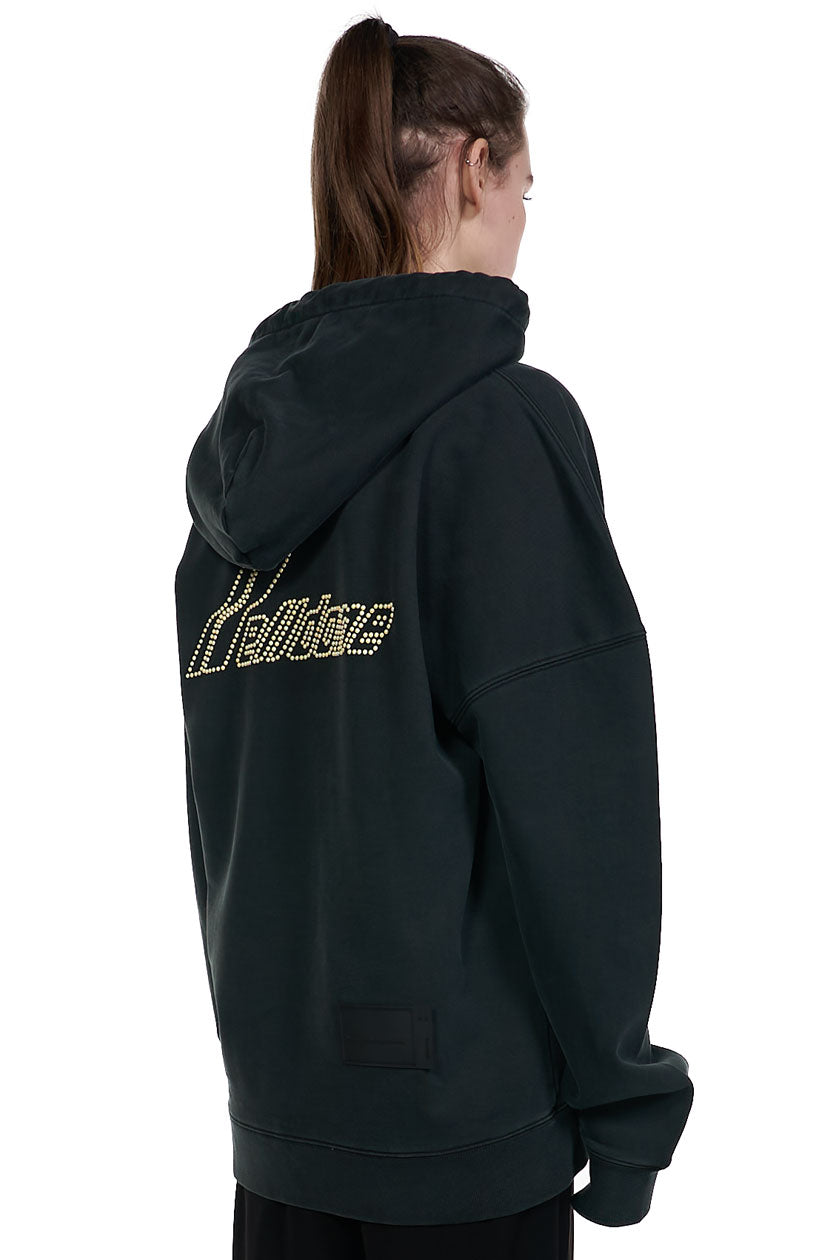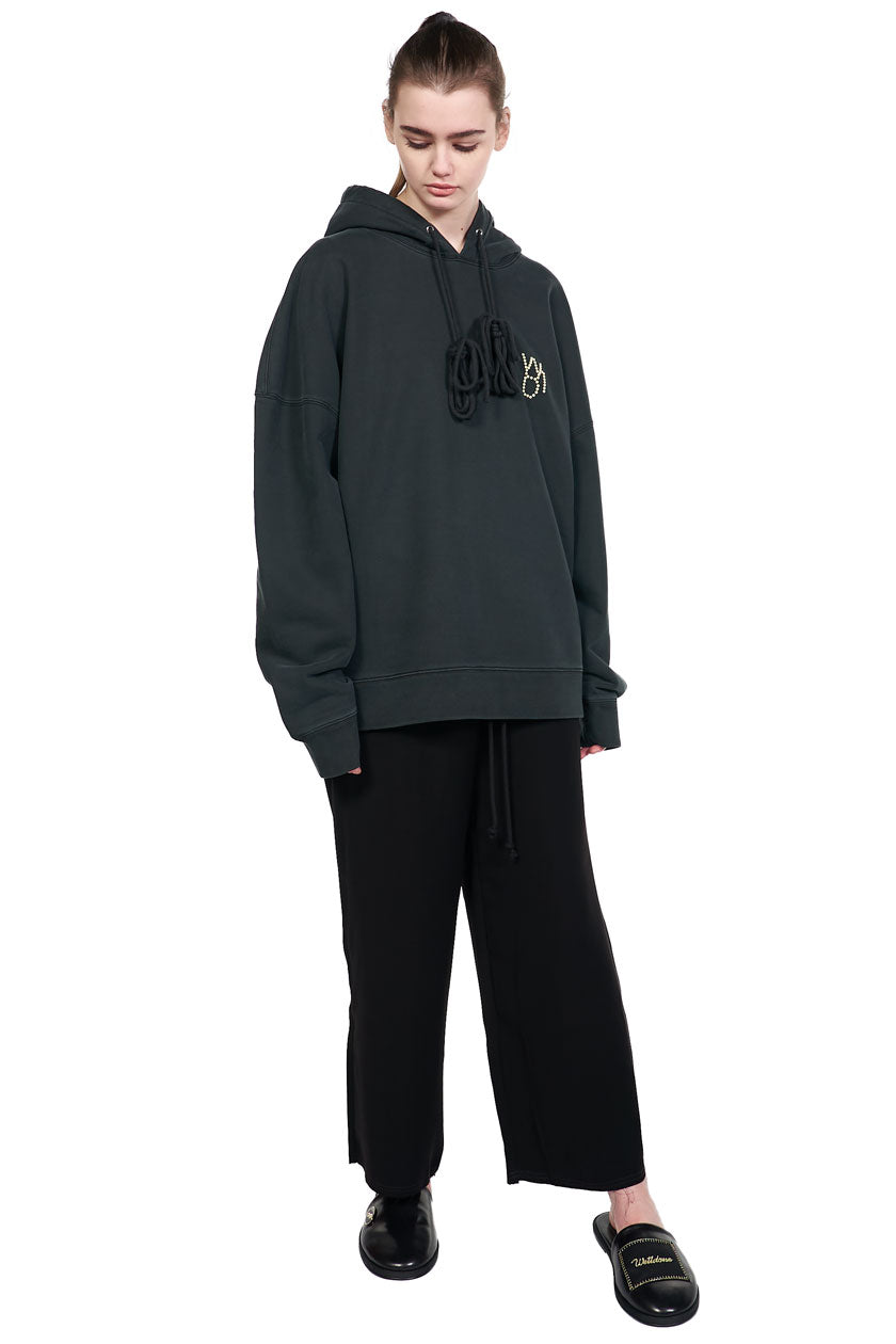 We11done merges late 1990s and early 2000s aesthetics creating a feeling of futurity. Functional, sportive, and sleek, We11done’s versatile designs refine classic elements into contemporary lifestyle pieces as seen with the Green cotton hoodie with elongated drawstrings. Features a panelled construction with dropped shoulders. Pearl logo detailing on the left chest and across the upper back. Finished with rib knit cuffs, hem, and tonal stitching throughout. Oversized Fit