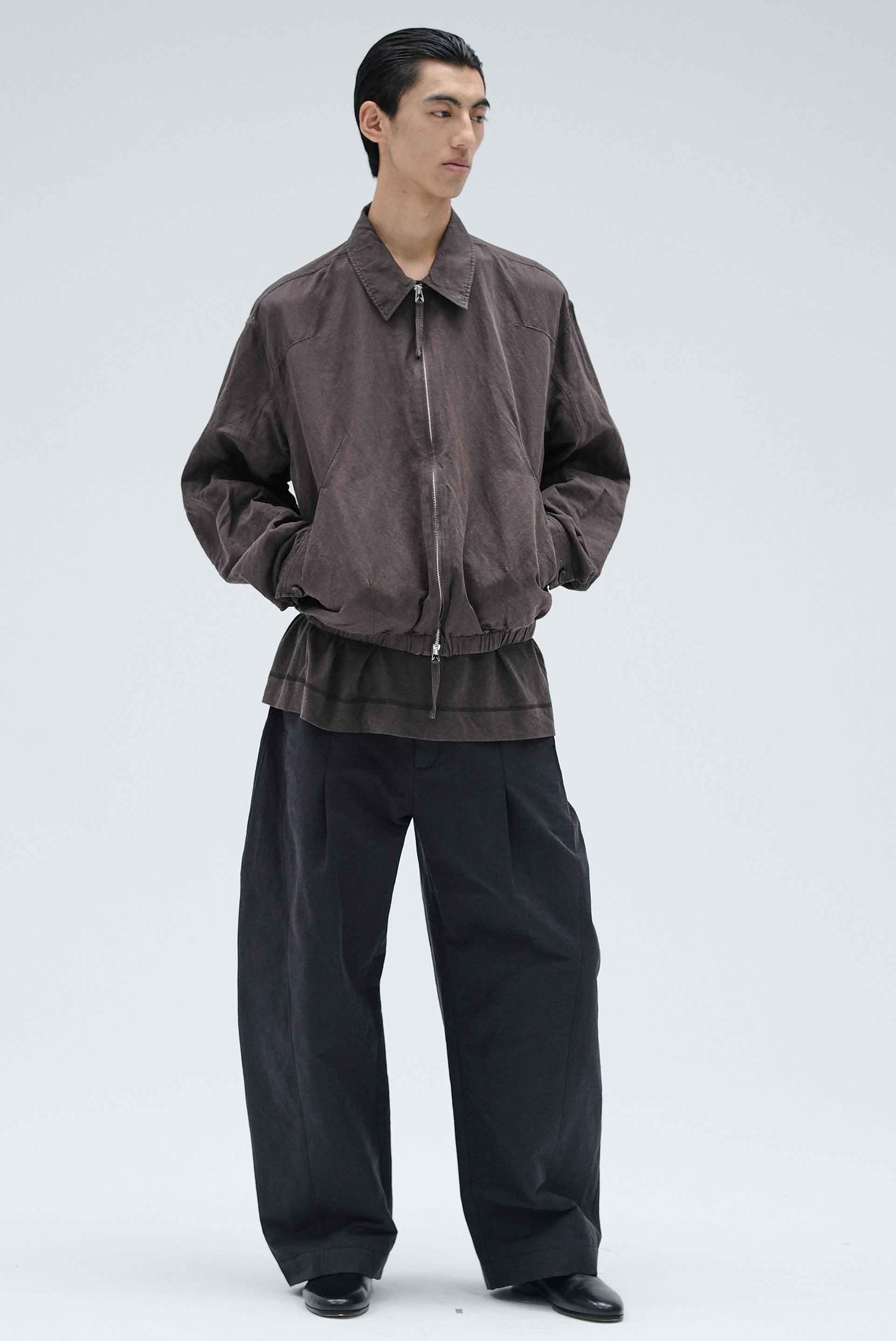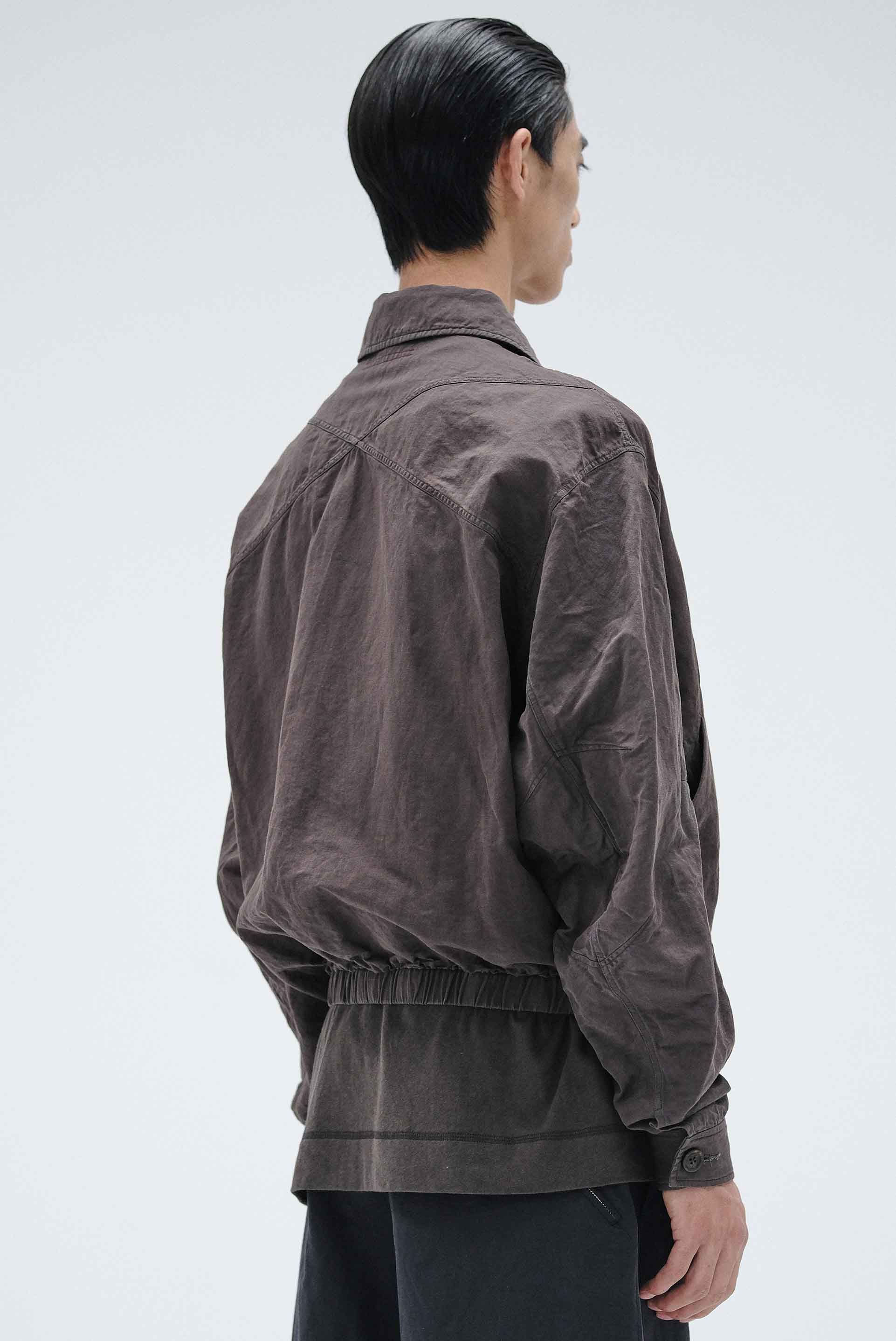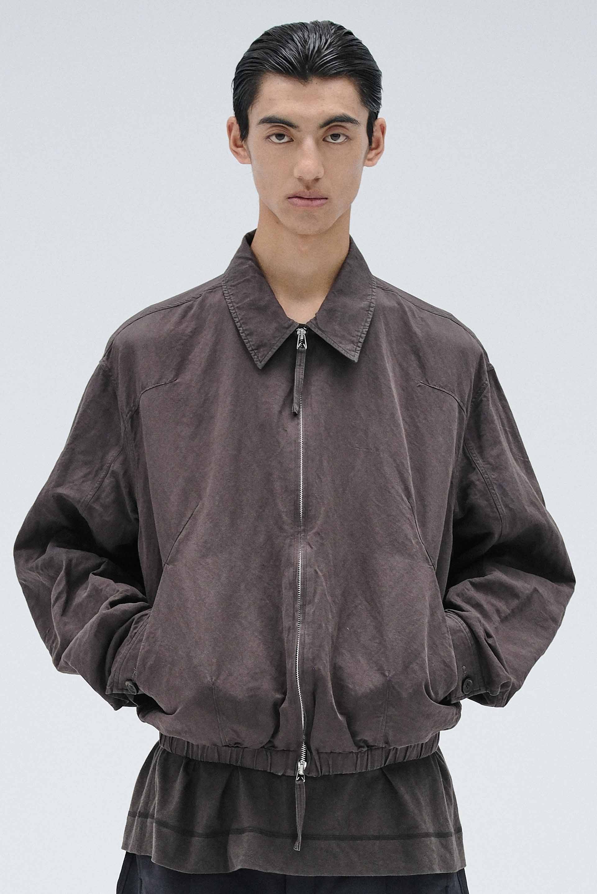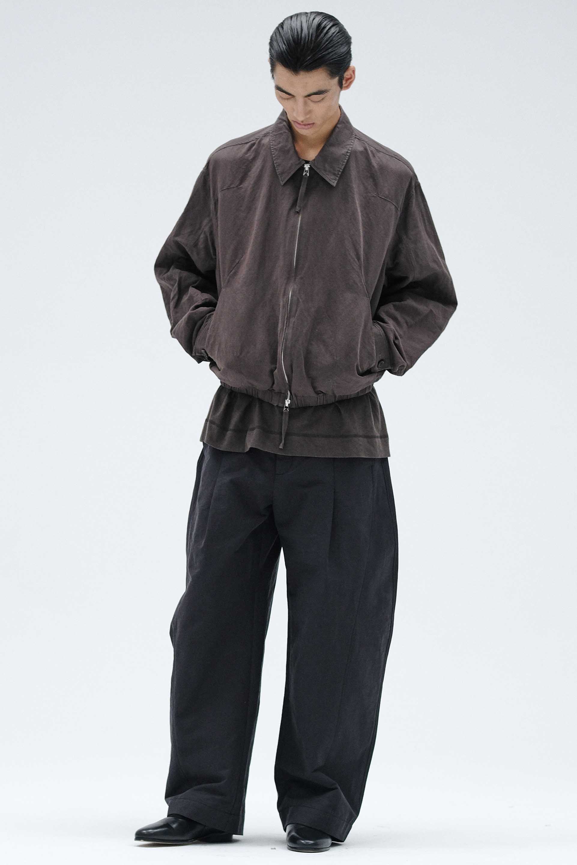 ATTEMPT reconstructs different styles and elements to create a new aesthetic system. By taking a more experimental approach to creation and production, which involves an understanding of the past and the current form of society, Attempt is creating an aesthetic form that is anchored in the present but different from it. It must ultimately be a product that cannot be defined as seen with the Darted Zip Blouson Brown.