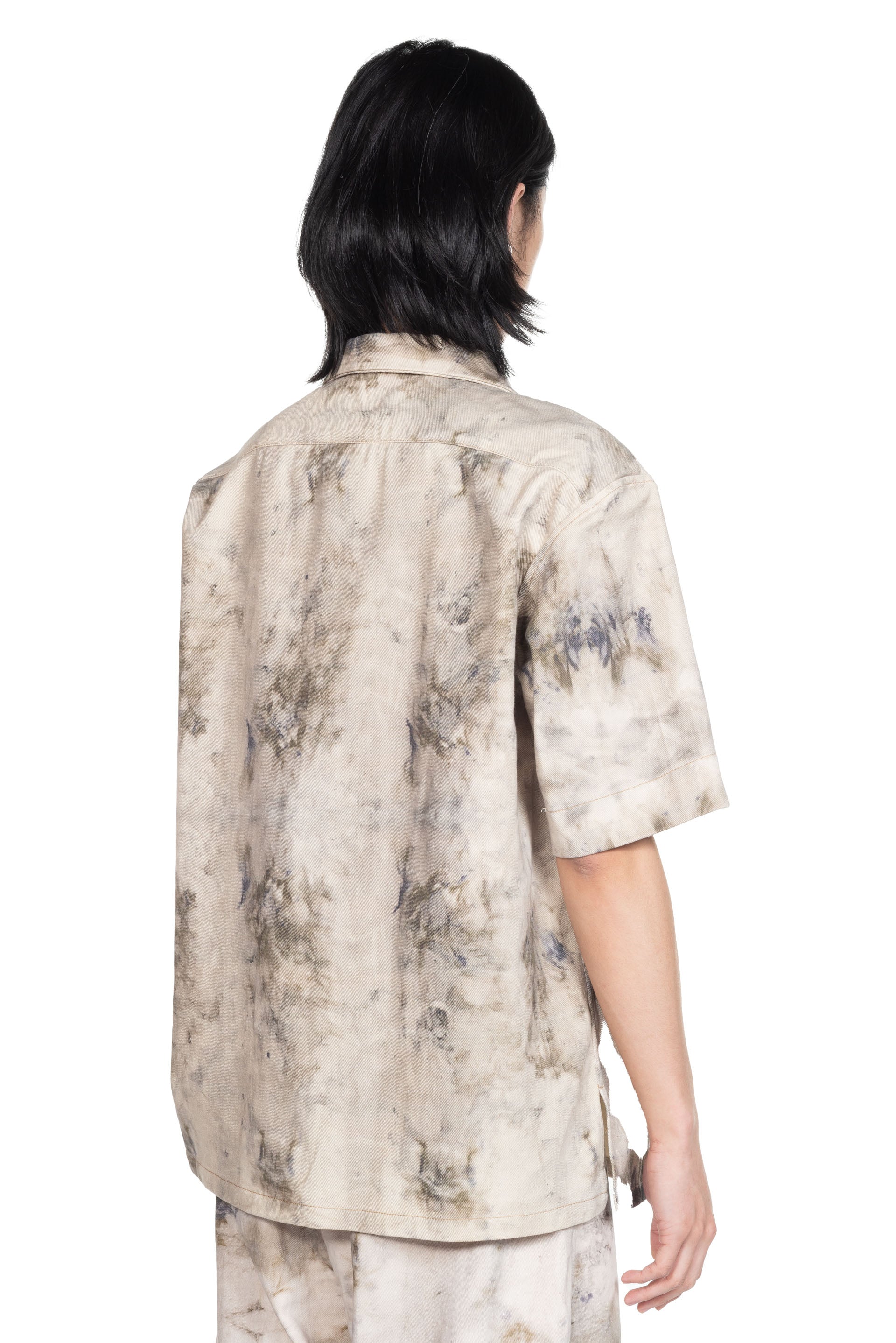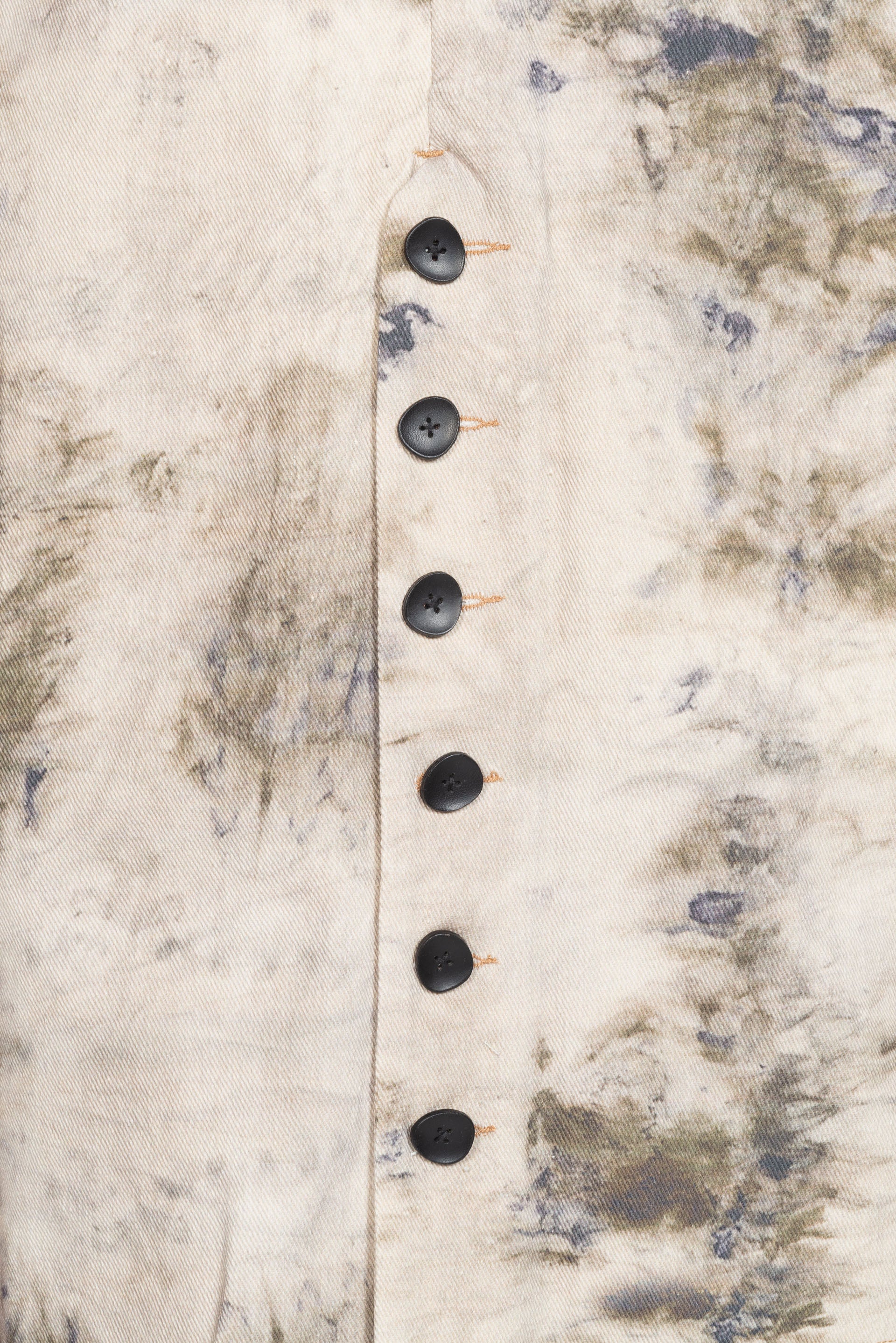 Short sleeves. Button and zip closure at front. Medicinal dye throughout.