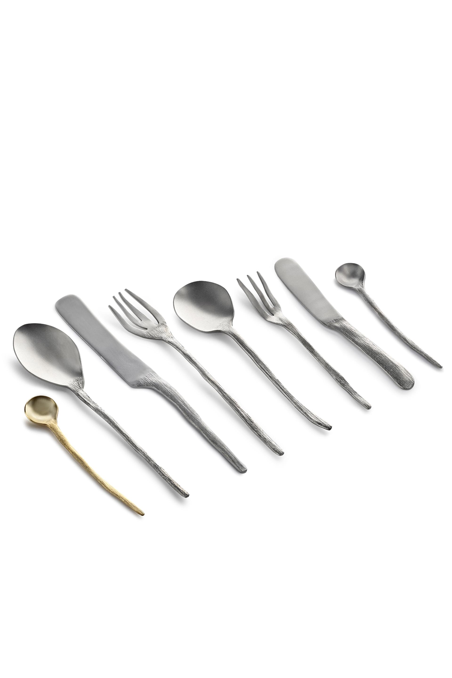 Like all her other creations, Roos Van de Velde’s ultra-light Flora Vulgaris collection for Serax has that unmissable link with Nature. The name alludes to the rather 'wild' and intuitive way in which the cutlery was given shape. Forks like branched twigs, spoons featuring endless leaf shapes and knives looking like shells. The colours, the material, the design, and the interplay of lines are a natural addition to the Perfect Imperfection collection as you can see with the Dessert Spoon Flora Vulgaris.