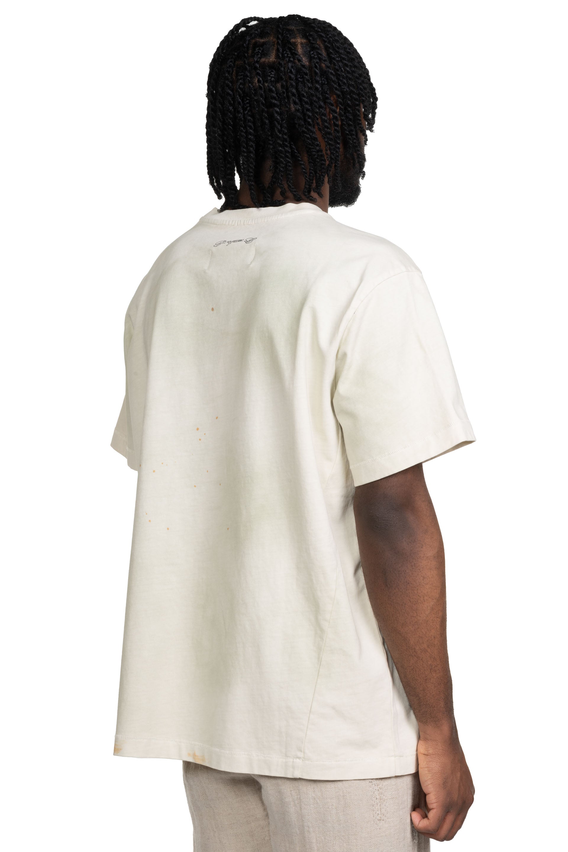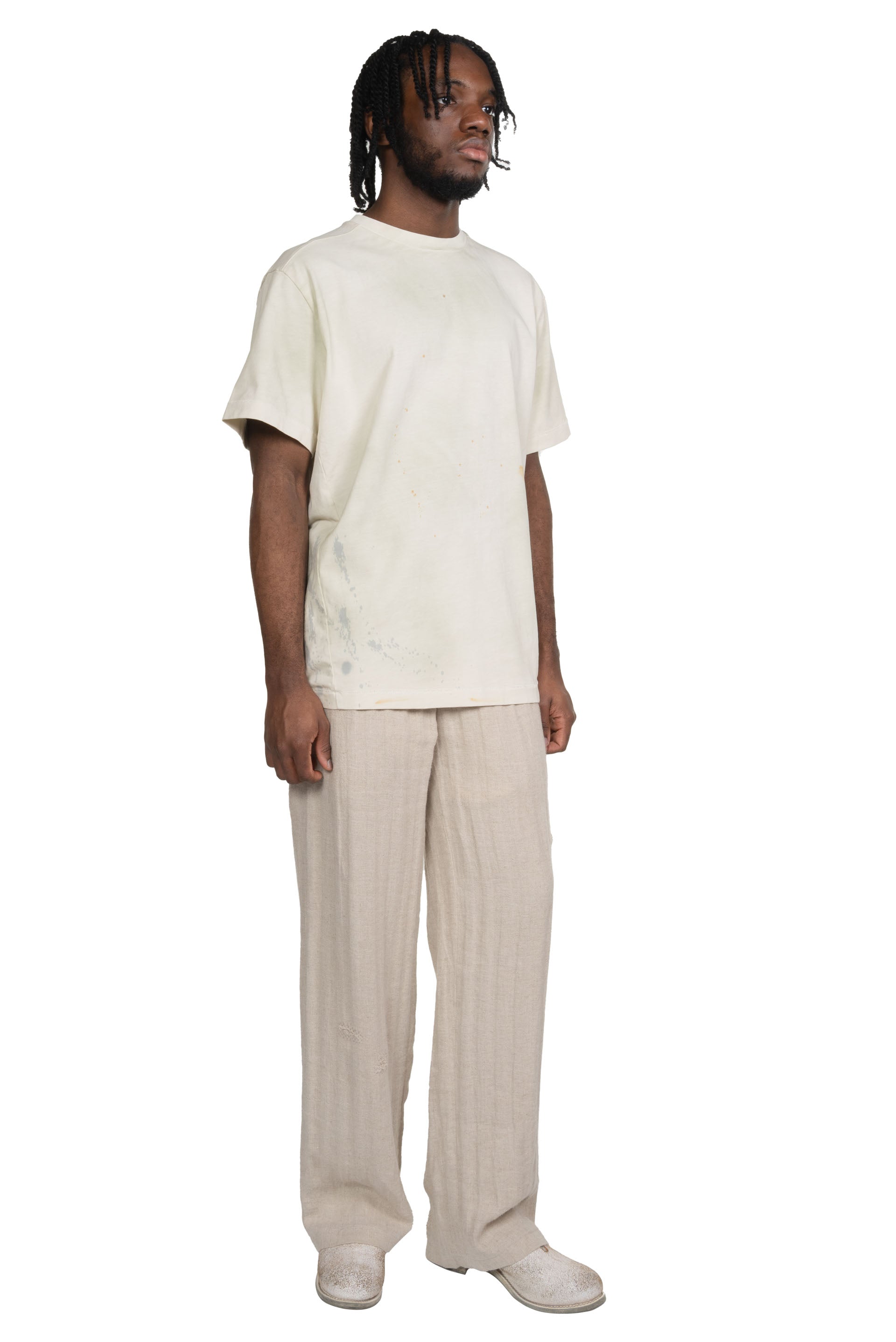 Professor. E understands the time of aesthetics from the use of cotton, hemp and wool. Fabric stitching, patching, designs without edge trimming, deconstruction, and reproduction are all Professor. E's signature elements creating classic immortal designs that can be viewed with the Destroyed Tee Dusty Beige.