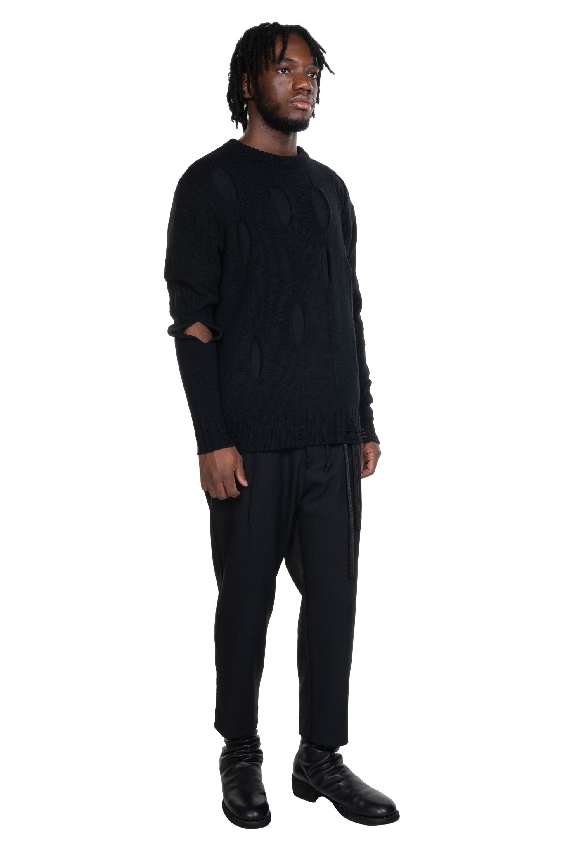 Colour: Black. Composition: Diamond Knit, 70% Fine Wool 30% Acrylic. Fabric sourced from Japan. Made in Japan. Code: 242_UKT015_DMNDBLK