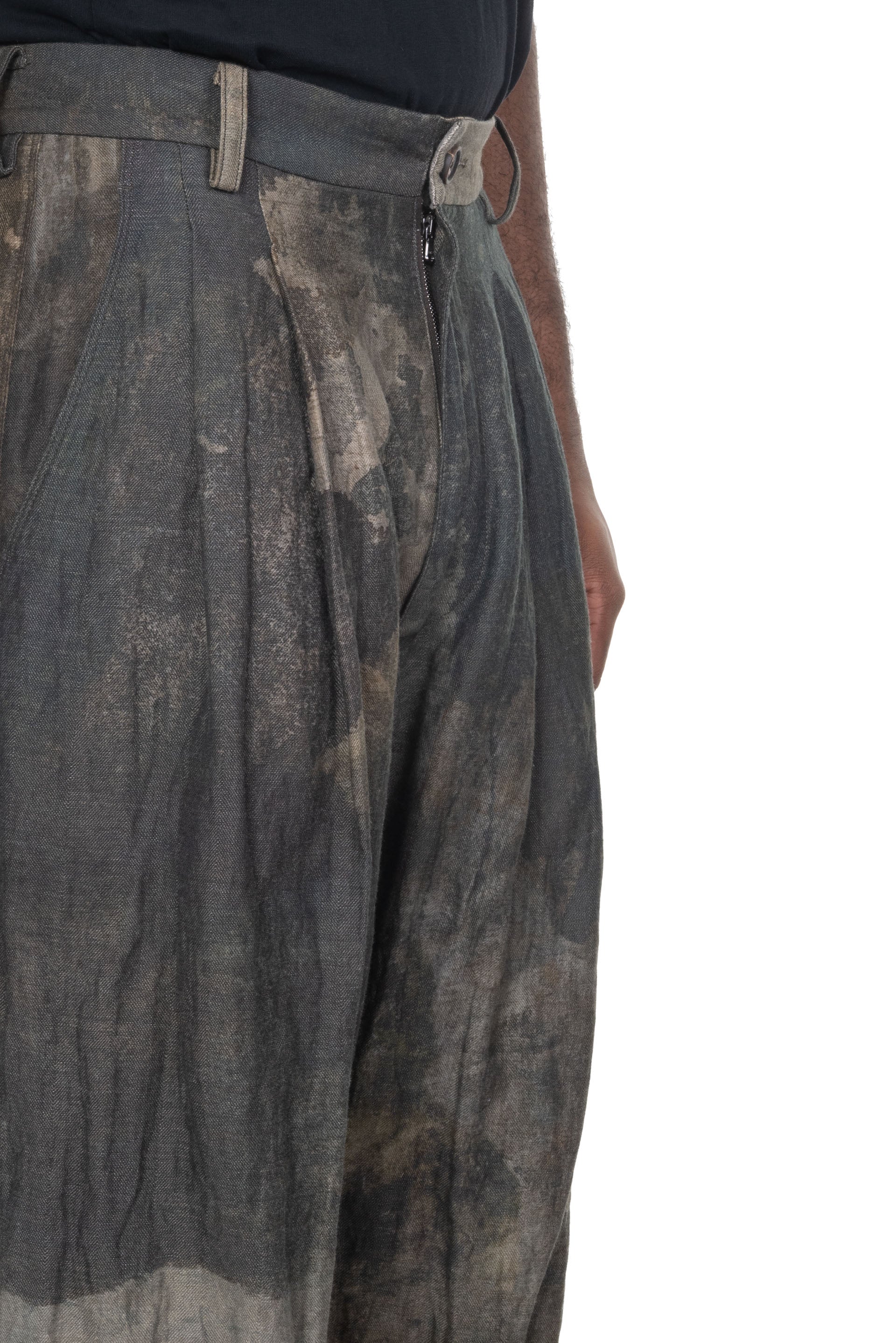 Ziggy Chen digital print straight-leg trousers. Loose fit. Full-length. Partially elastic waistband. Zip fly closure. Front pleats. Two front pockets, two back pockets with flap and button fastening. Seasonal digital print. Fully-lined.