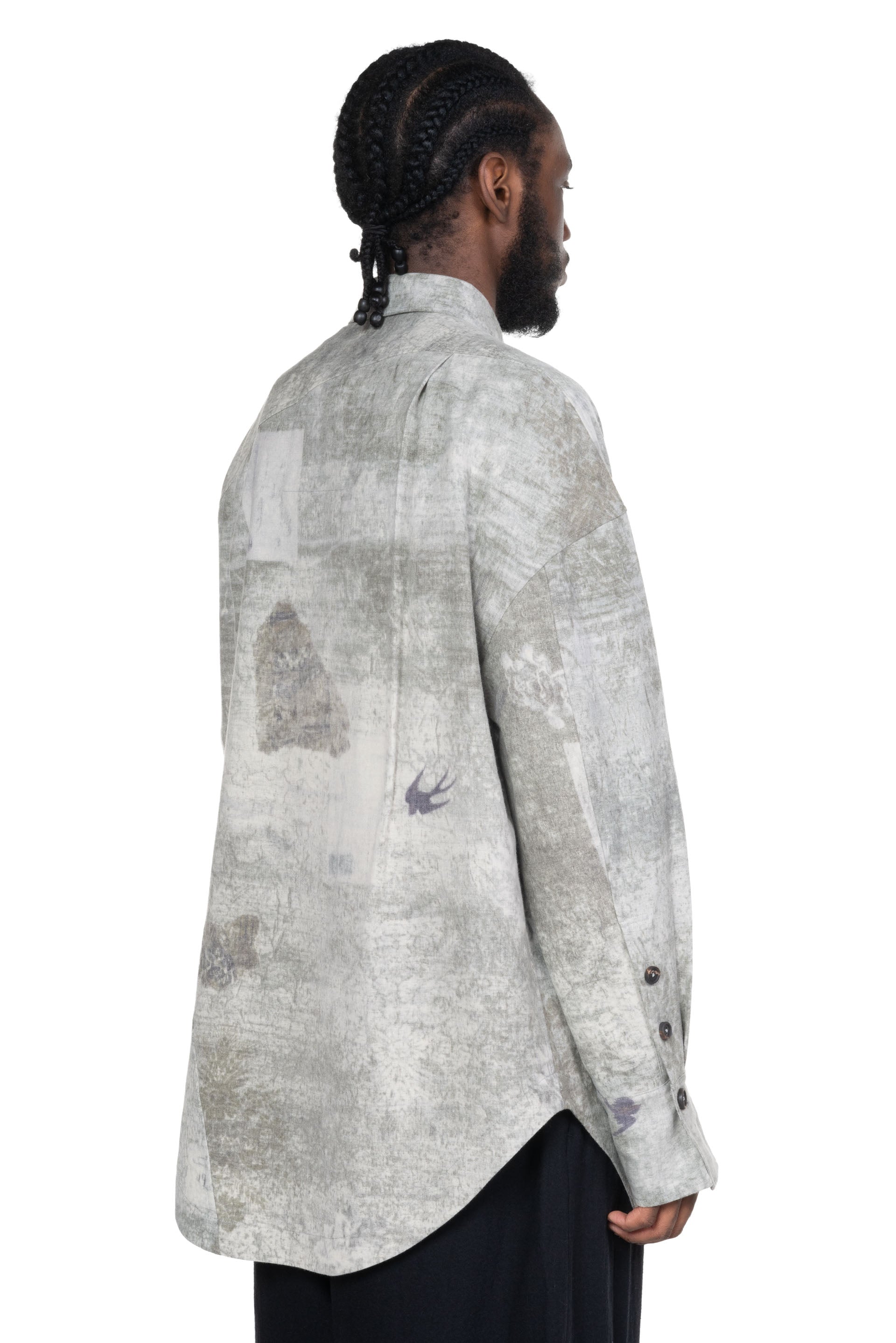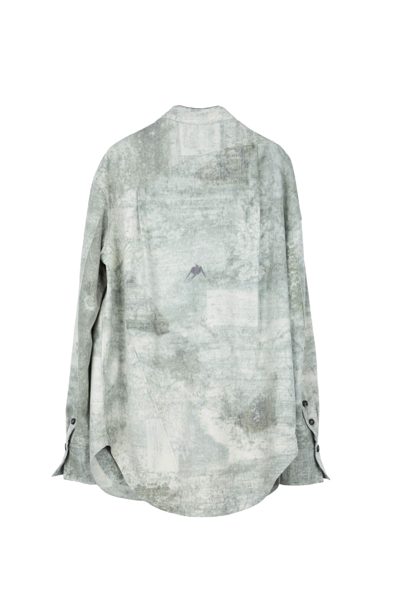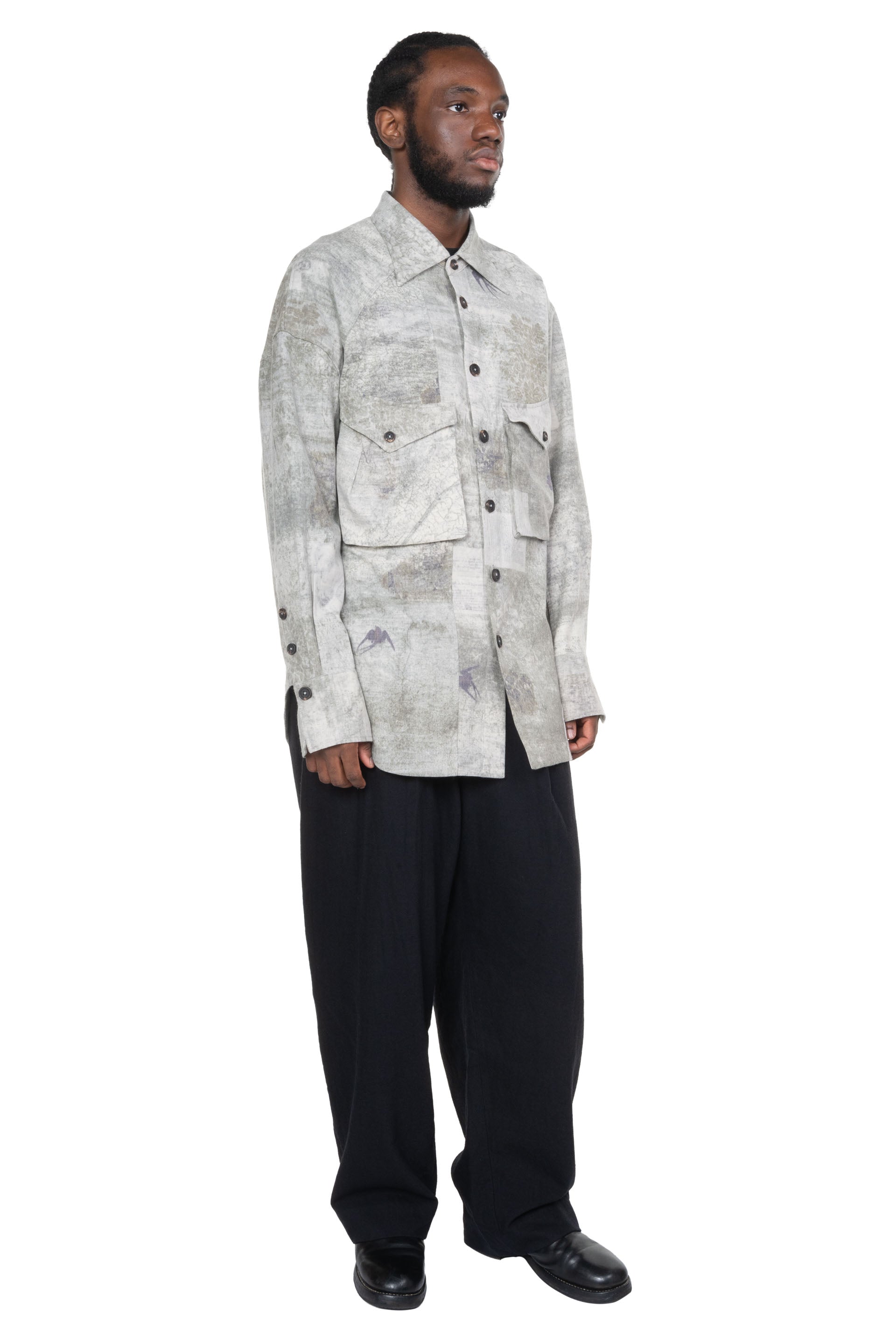 This season silhouette enhances wearability and essential lines. VOLEISURE is not just a collection but a suggestion of a return to a spontaneous way of living. The pieces allow the wearer to move agilely between urban and natural environments, accompanied by a design that distils tranquillity and elegance-a whispered, timeless and refined way of life as seen with the Digital Print Wool Shirt Jacket.