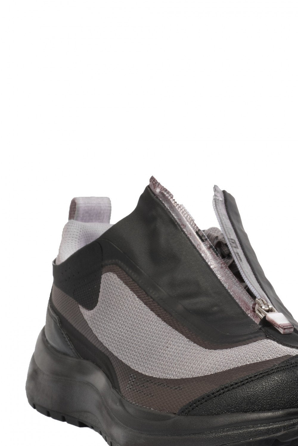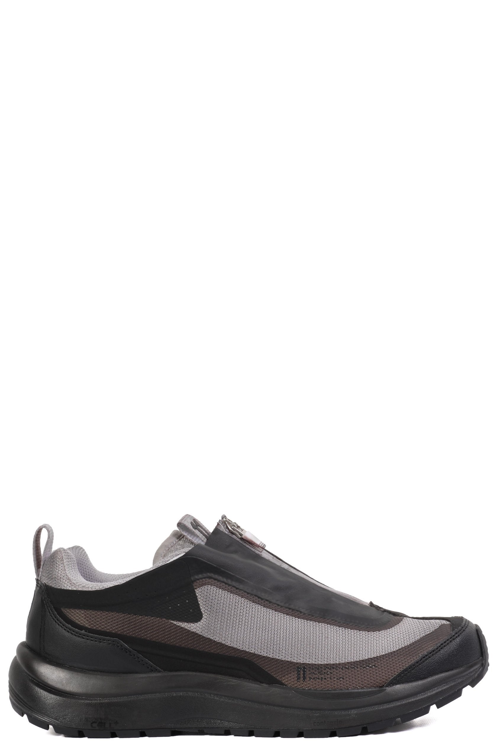 Low-top panelled stretch bonded jersey, mesh, and faux-leather trainers in Dirty Grey. Over-died detailing and smudging throughout. Round toe. Zip closure in black featuring tonal logo printed at vamp. Tonal concealed lace-up closure. Tonal bonded logo at tongue. Webbing pull loop featuring tonal bonded logo at back collar. Tonal bonded logo at heel counter. Logo and text printed in grey at outer sides. Tonal foam rubber midsole. Tonal treaded Contagrip® rubber outsole.