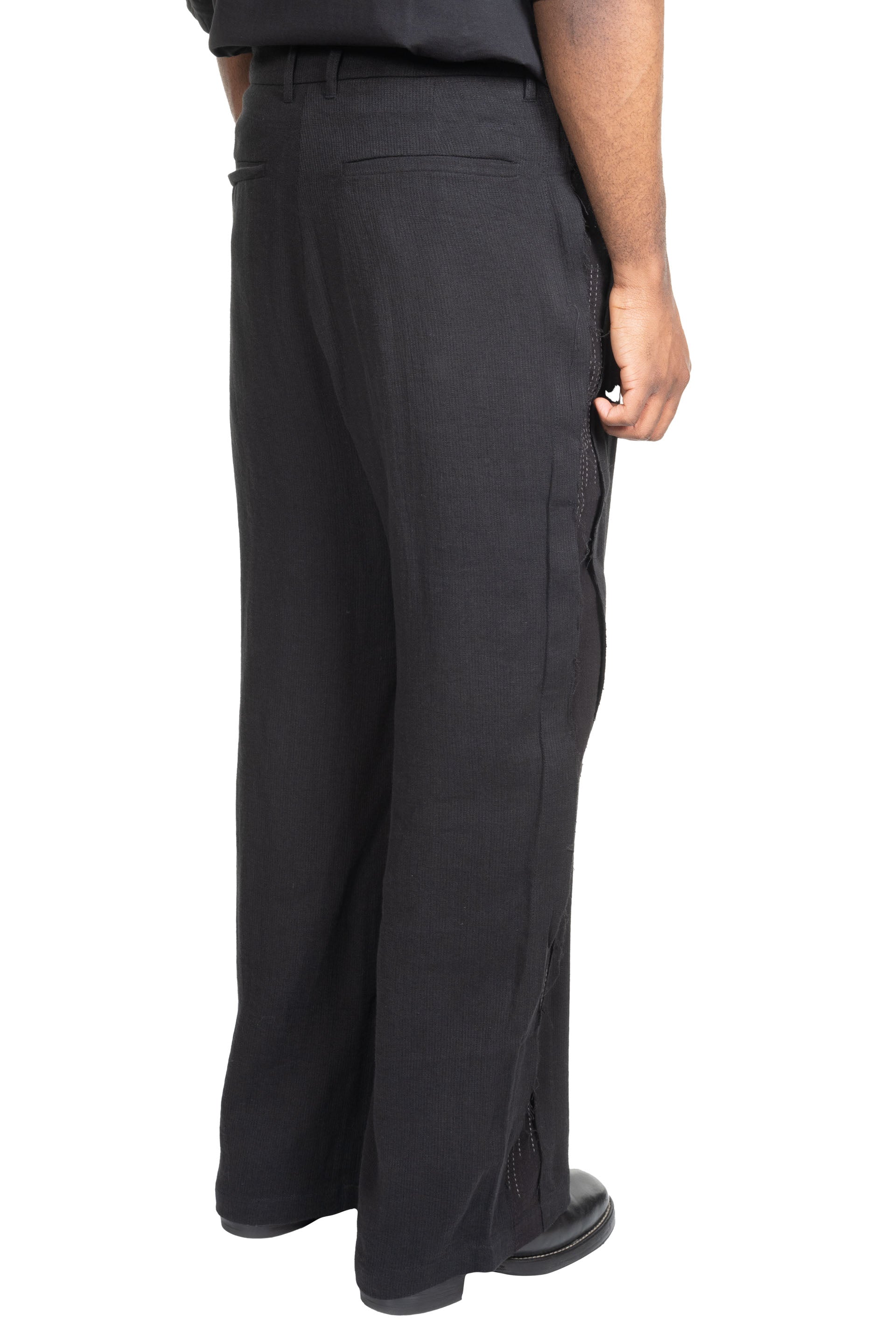 Professor. E understands the time of aesthetics from the use of cotton, hemp and wool. Fabric stitching, patching, designs without edge trimming, deconstruction, and reproduction are all Professor. E's signature elements creating classic immortal designs that can be viewed with the Distressed E Pants Black.