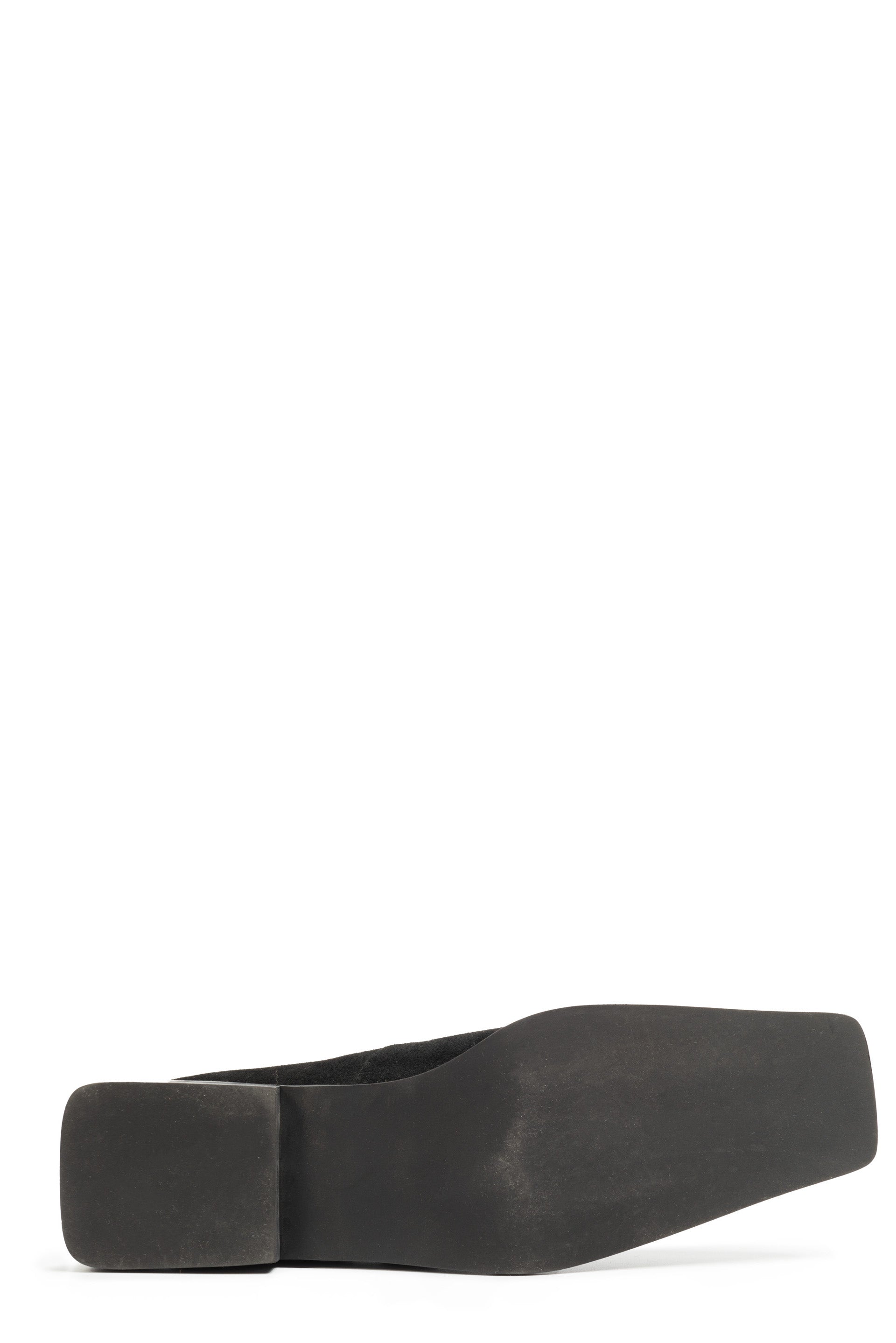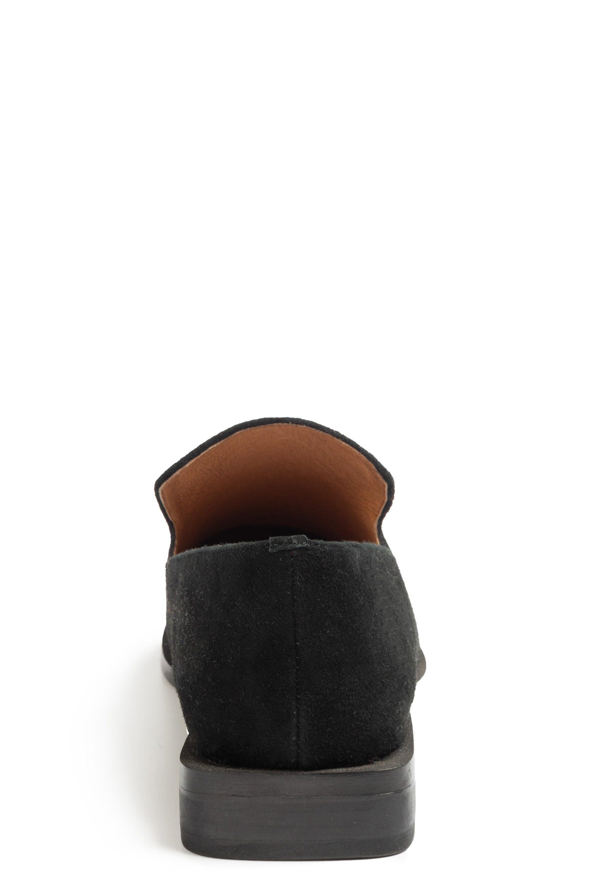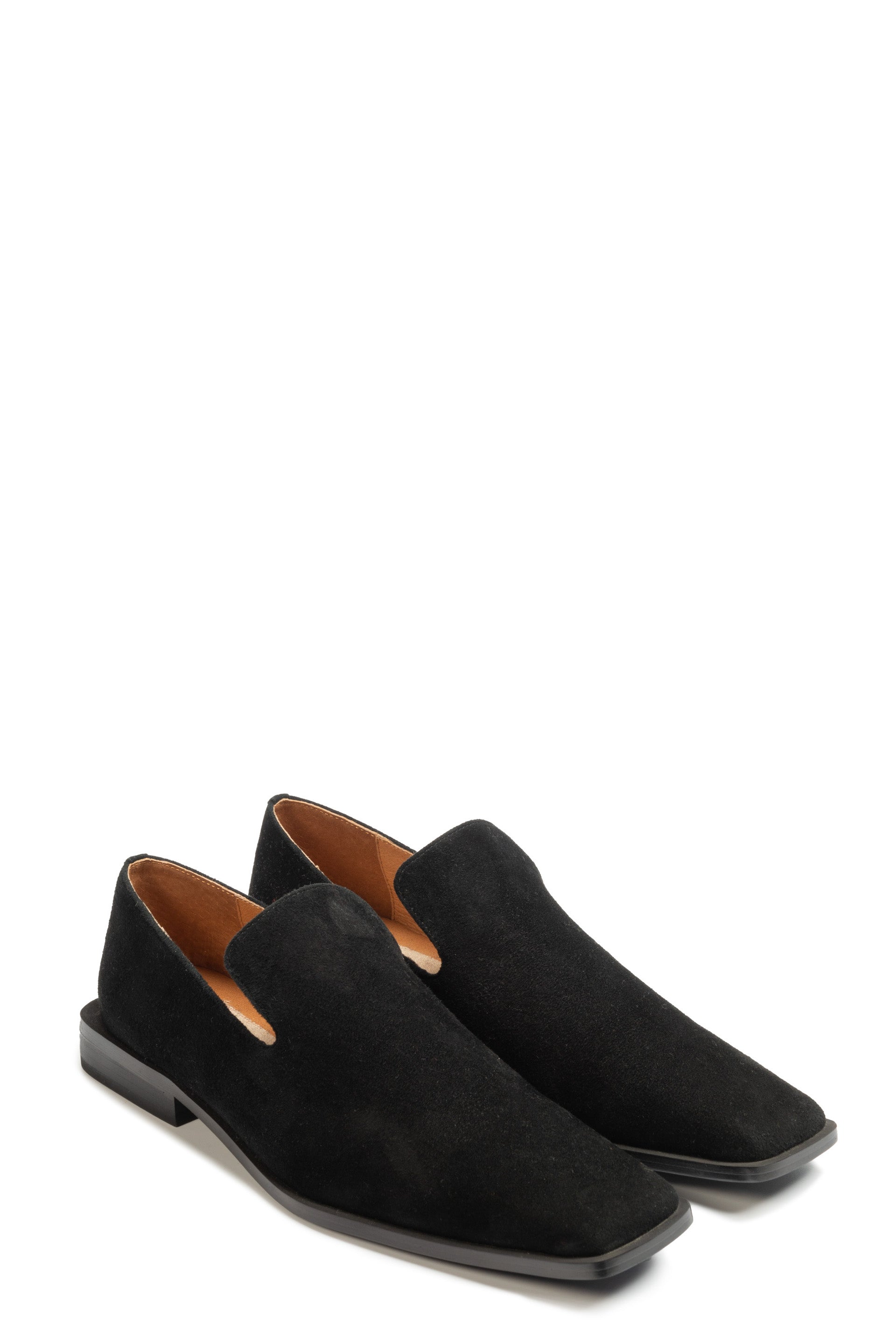 Slip on. Very soft doeskin leather. Rubber sole. Small heel at back.