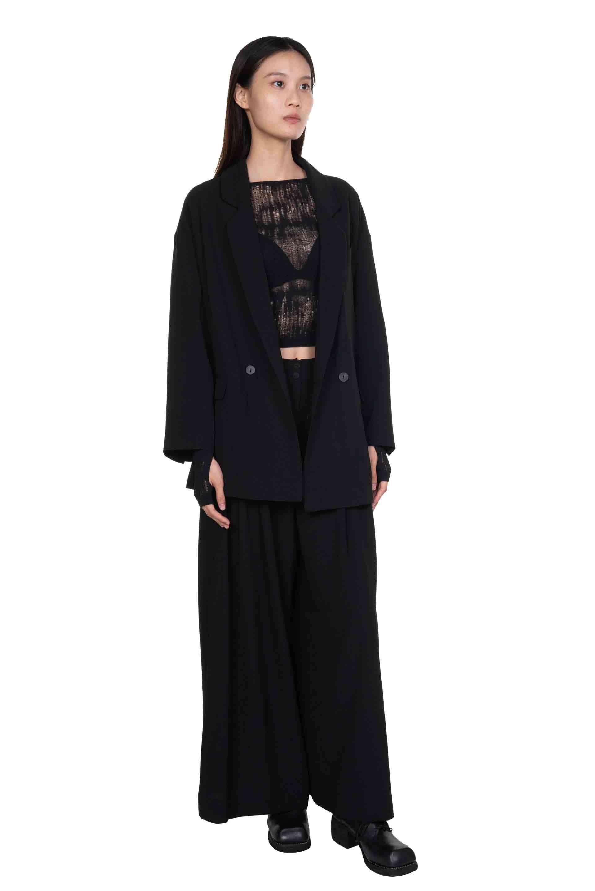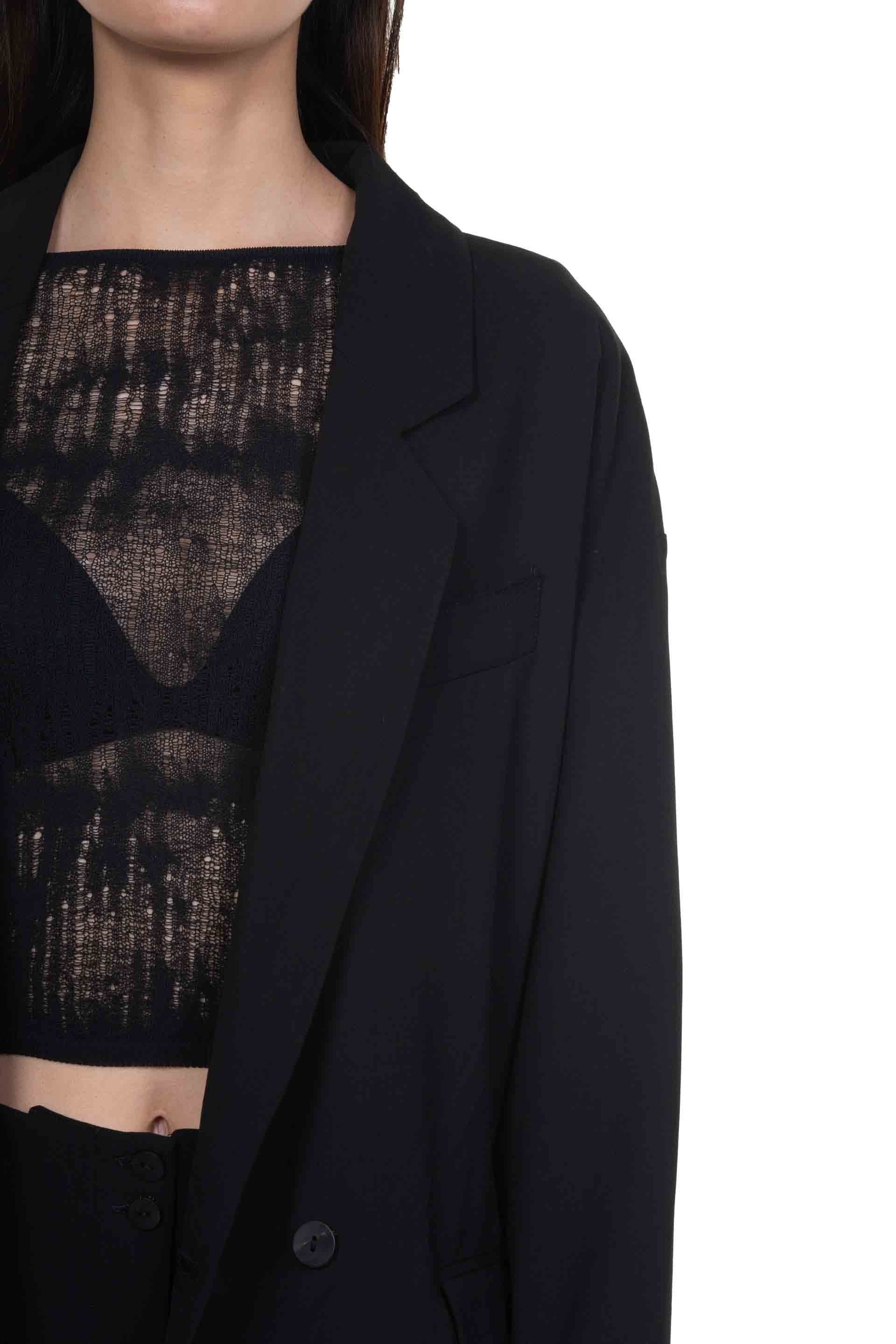 Isabel Benenato is committed to sustainability and makes every effort to minimise its environmental footprint. All of the collection are manufactured in Italy with the intention to save and support her local community. Her design is based on an imperfect perfection that encompasses the human being itself as seen with the Double Breast Jacket.