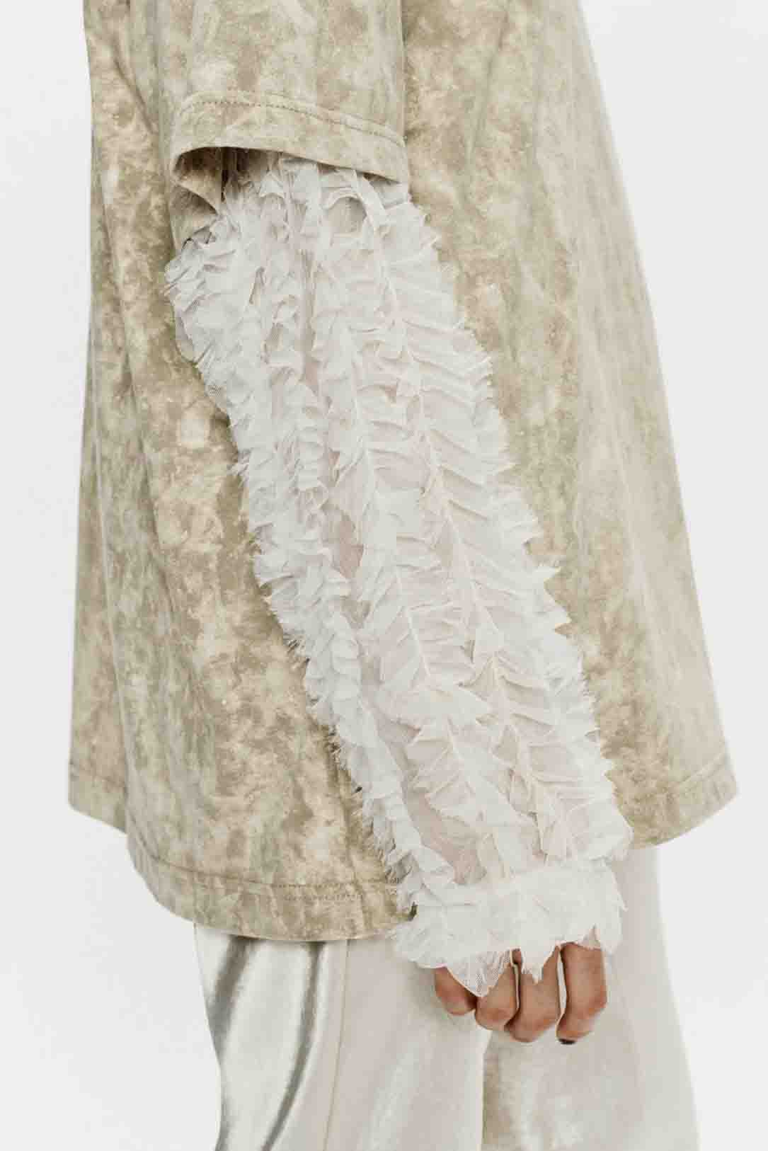 Song for the Mute standard fit tee in a tie-dyed cotton jersey. Featuring double-layer effect nylon chiffon sleeves.