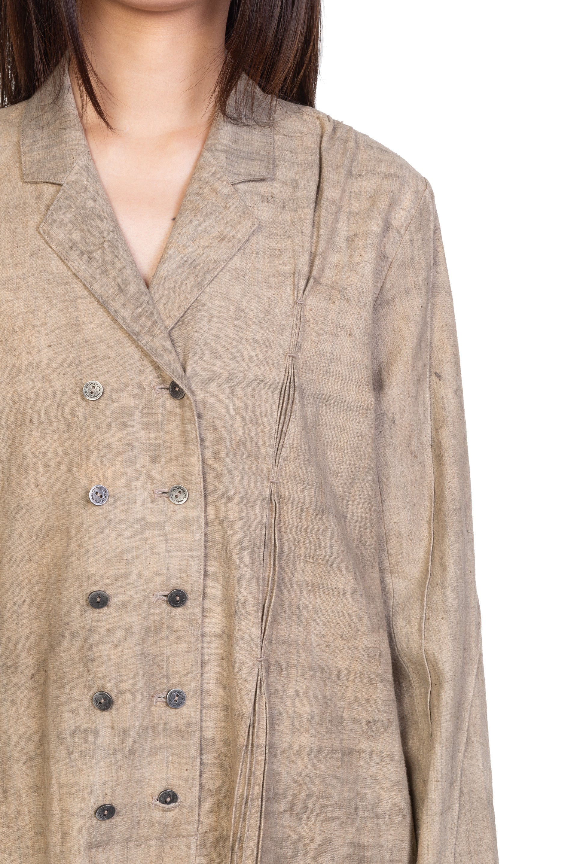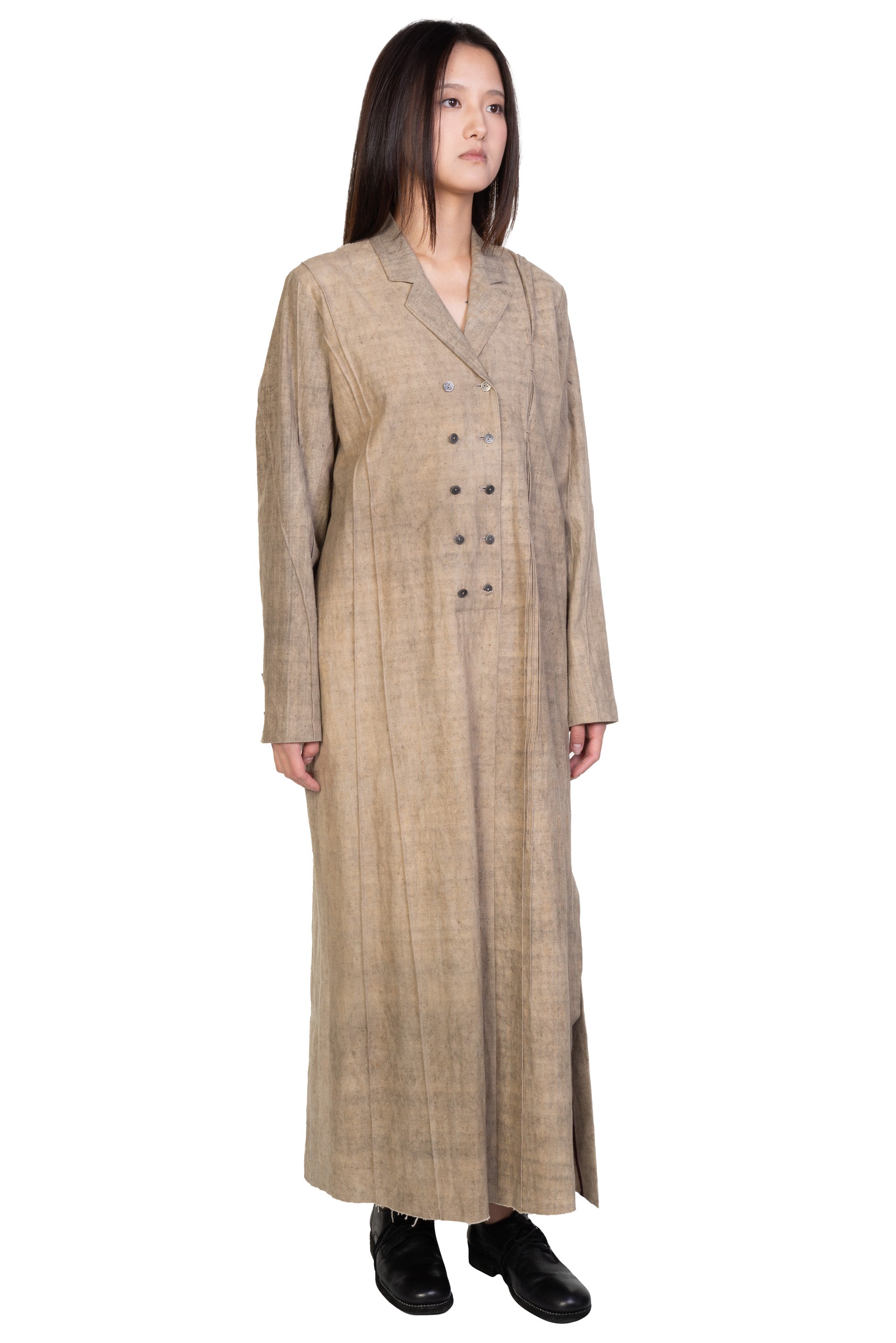 Professor. E understands the time of aesthetics from the use of cotton, hemp and wool. Fabric stitching, patching, designs without edge trimming, deconstruction, and reproduction are all Professor. E's signature elements creating classic immortal designs that can be viewed with the Double Shirt Dress Natural Beige.