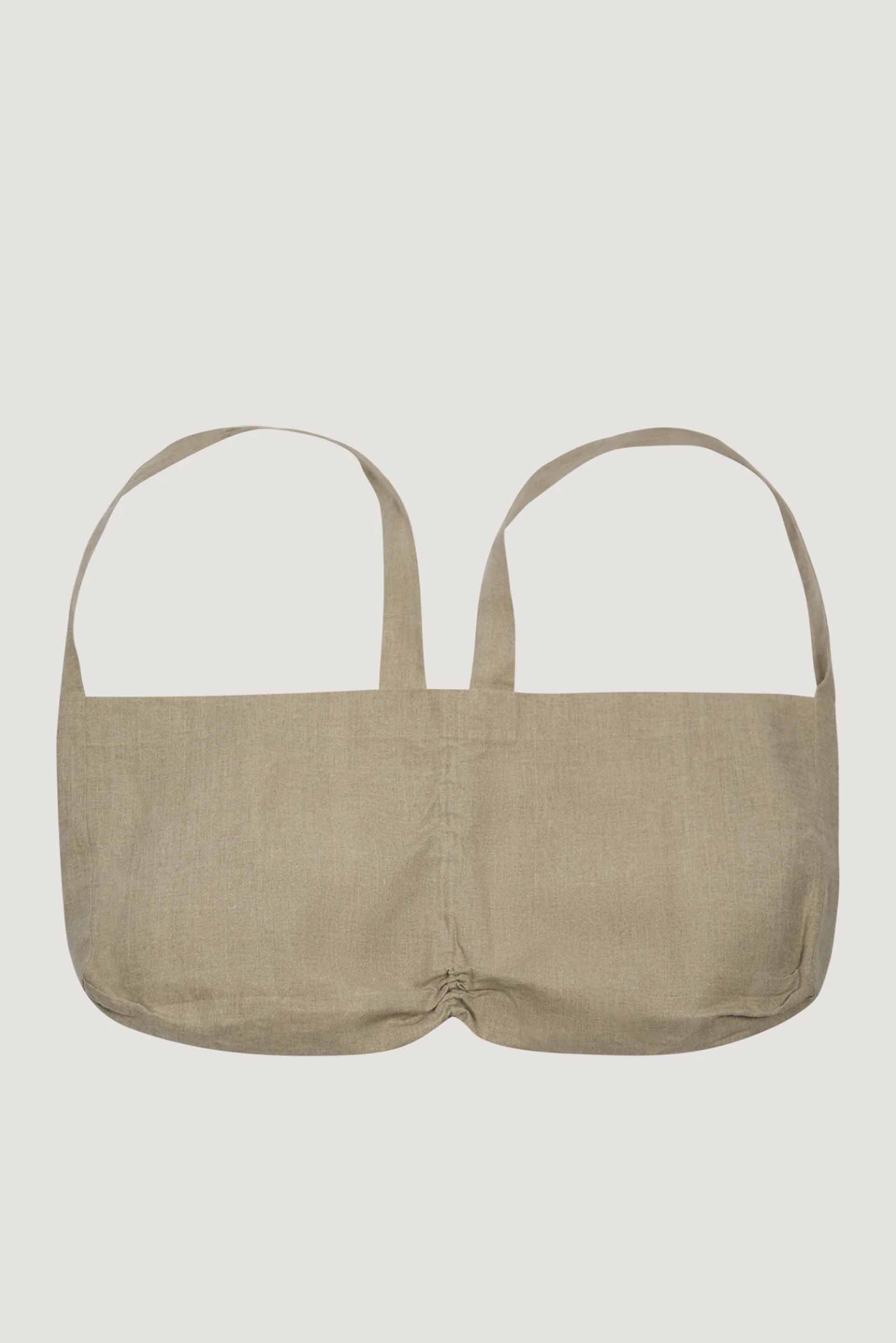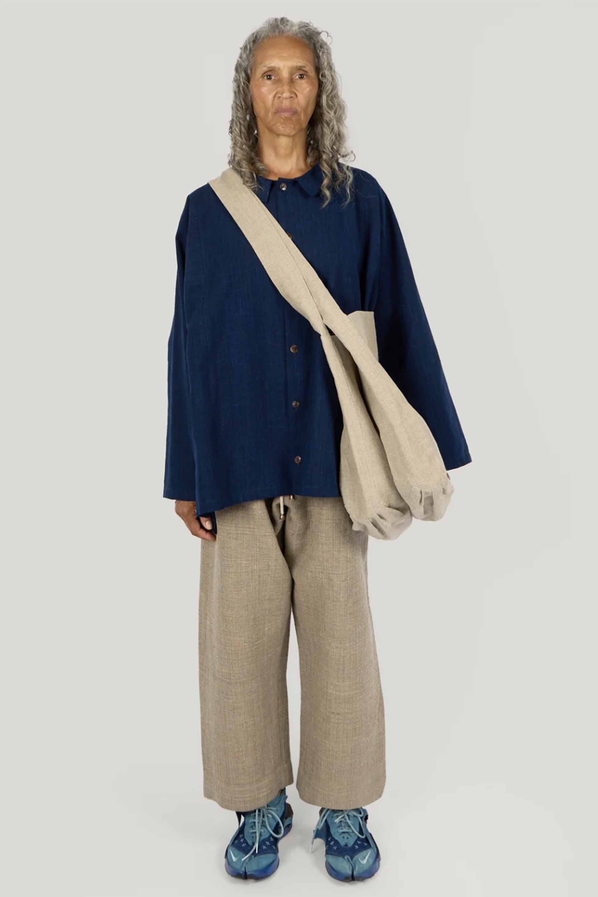 Gathering is dedicated to preserving the art of handmade textiles and tradition. Textiles are sourced across Asia and Africa, woven on traditional looms and antique machinery, grown naturally without pesticides or human intervention, and dyed using elements from the earth, ensuring they are free from any chemicals. Each piece is hand-made featuring meticulous details and natural buttons made from materials like shell and ceramic, making each item unique and rich in character. Gathering is a fresh, timeless and versatile silhouette perfect for layering as seen with the Double Tote Bag Waxed Linen.